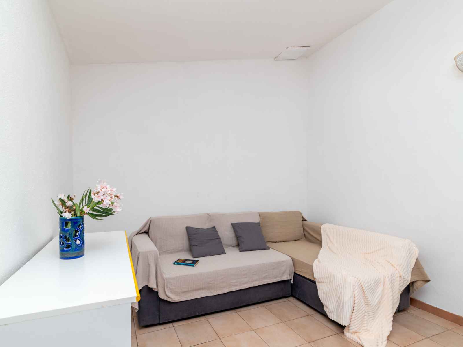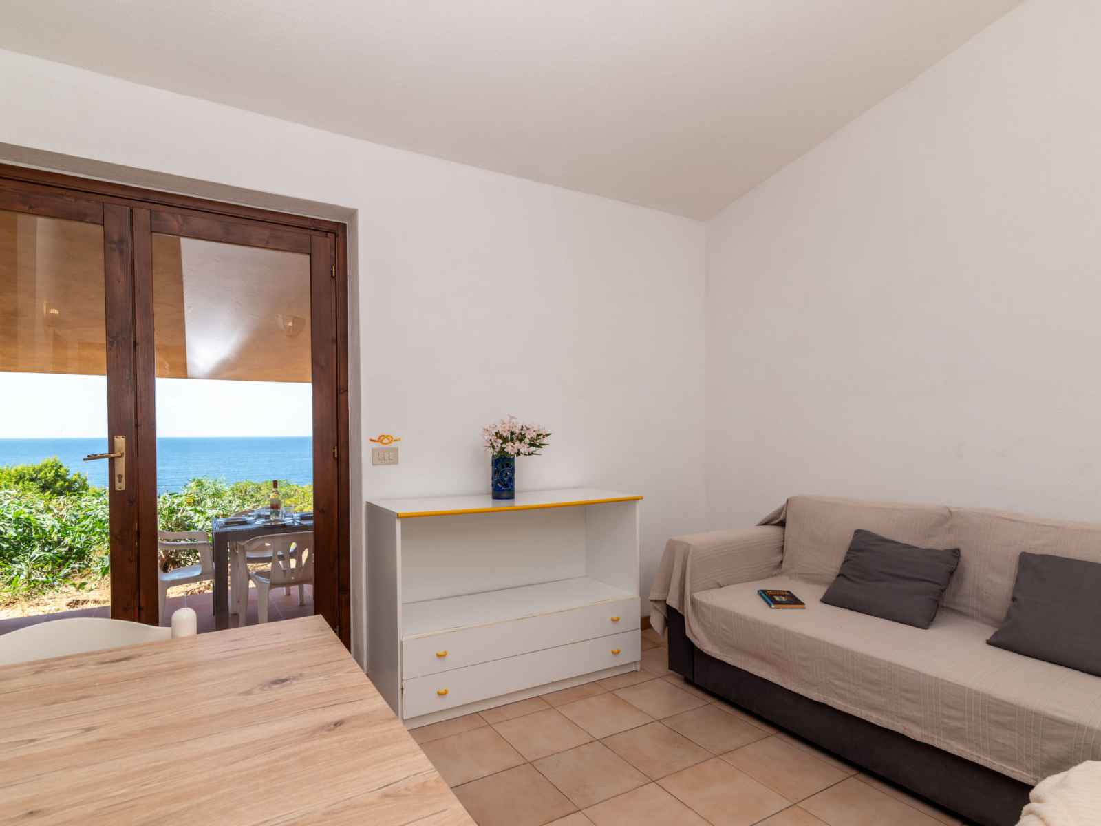 Maison mitoyenne 3 pièces 70 m2, au rez-de-chaussée. aménagement simple: séjour/chambre à coucher avec 1 divan-lit double (1 x 140 cm), tv. 1 chambre double. 1 chambre avec 2 lits. coin cuisine (4 plaques de cuisson, four, congélateur). douche/wc. pas de chauffage. terrasse couverte. meubles de terrasse. vue sur la mer. a disposition: