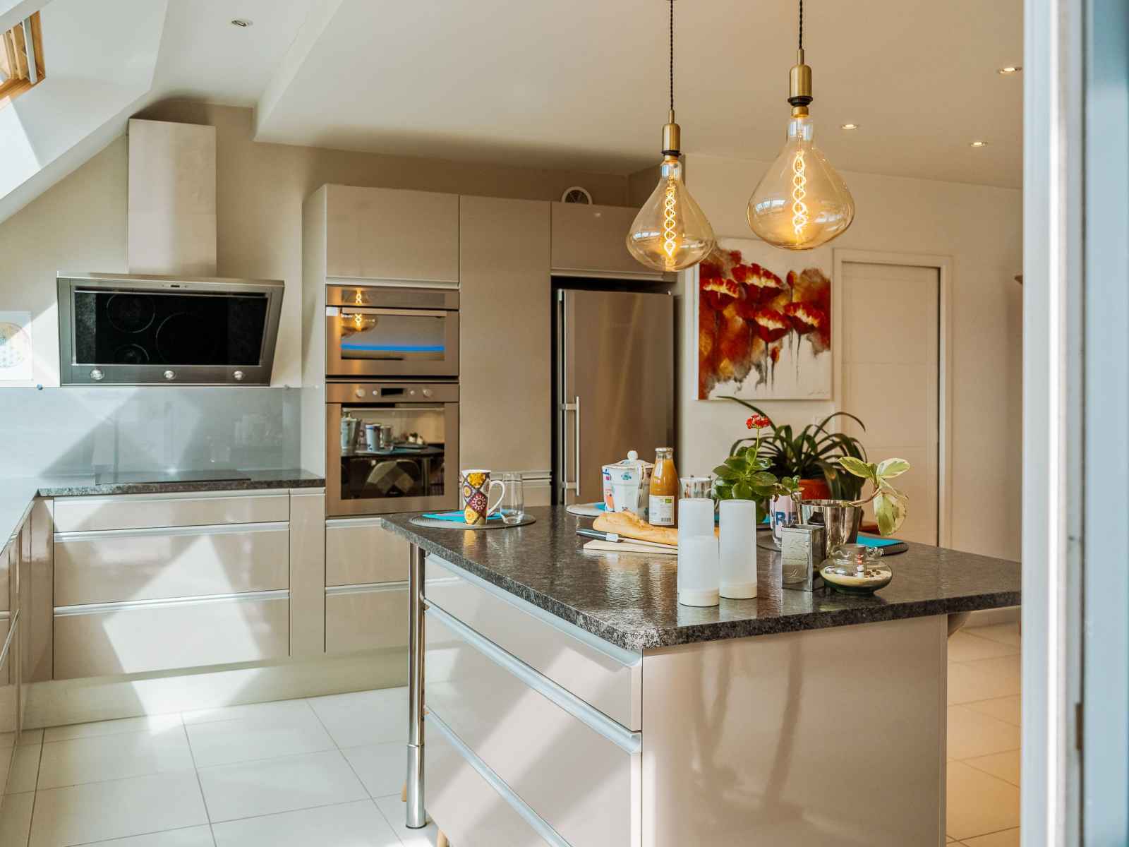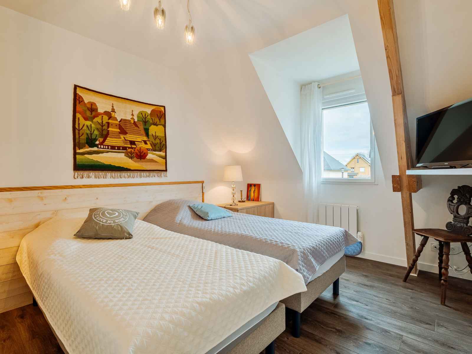 grille-pain, bouilloire électrique, micro-ondes, congélateur, cafetière électrique). WC séparé. Chauffage électrique. À l'étage supérieur: salle de jeux ouverte. 1 chambre double avec 1 grand-lit (1 x 140 cm, longueur 190 cm). 1 chambre avec 2 lits (90 cm, longueur 190 cm). Salle de bains, WC séparé. Terrasse 10 m2. Sur le jardin. A disposition: lave-linge, sèche-linge, fer à repasser, sèche-cheveux. Internet (Connexion WIFI, gratuit). Place de parking (2 Voitures). Veuillez noter: adapté(e) aux familles. Logement non-fumeur. Détecteur de fumée. Oasis de verre de 20 m² au rez de chaussée, donnant sur le jardin. Annonce d'un particulier (art 155, IV du CGI). FR2736.254.1