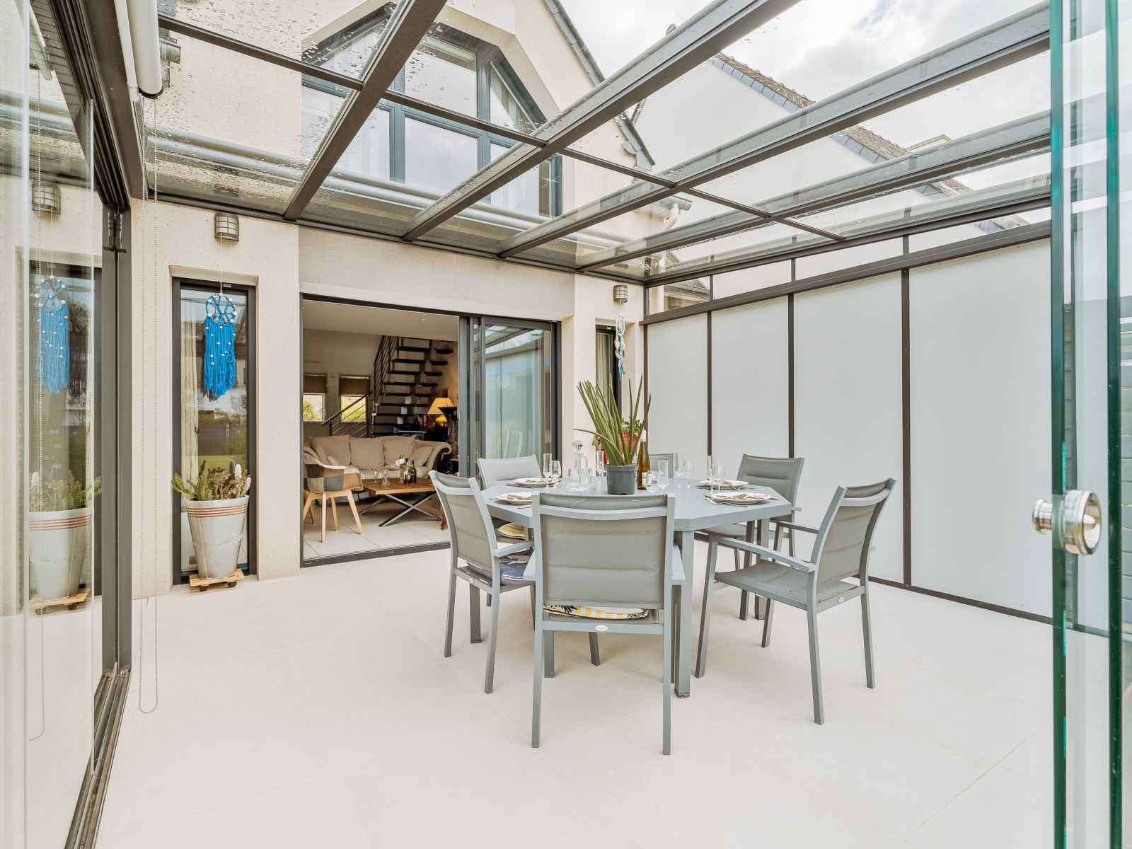 "les jardins du val", maison 6 pièces 150 m2, situation sud. aménagement confortable et moderne: séjour/salle à manger avec tv (écran plat). sortie sur le jardin, sur la terrasse, sur la véranda. 1 chambre double avec 1 grand-lit (1 x 160 cm, longueur 200 cm), douche. grande cuisine ouverte (four, lave-vaisselle, 3 plaques à induction,