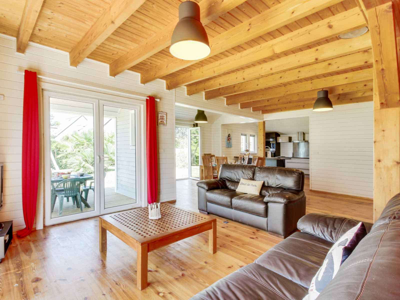 micro-ondes, congélateur, cafetière électrique). WC séparé. À l'étage supérieur: 2 chambres, chaque chambre avec: 1 grand-lit (160 cm, longueur 200 cm). 1 chambre avec 1 grand-lit (140 cm, longueur 190 cm). Douche, WC séparé. Chauffage électrique, chauffe eau. Grande terrasse. Meubles de terrasse, barbecue. A disposition: lave-linge, fer à repasser, sèche-cheveux. Internet (Connexion WIFI, gratuit). Place de parking (1 Voiture). Veuillez noter: adapté(e) aux familles. Logement non-fumeur maison non-fumeur. Maximum 1 animal/ chien autorisé. Détecteur de fumée.