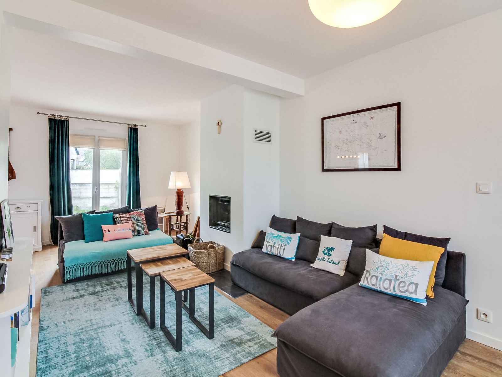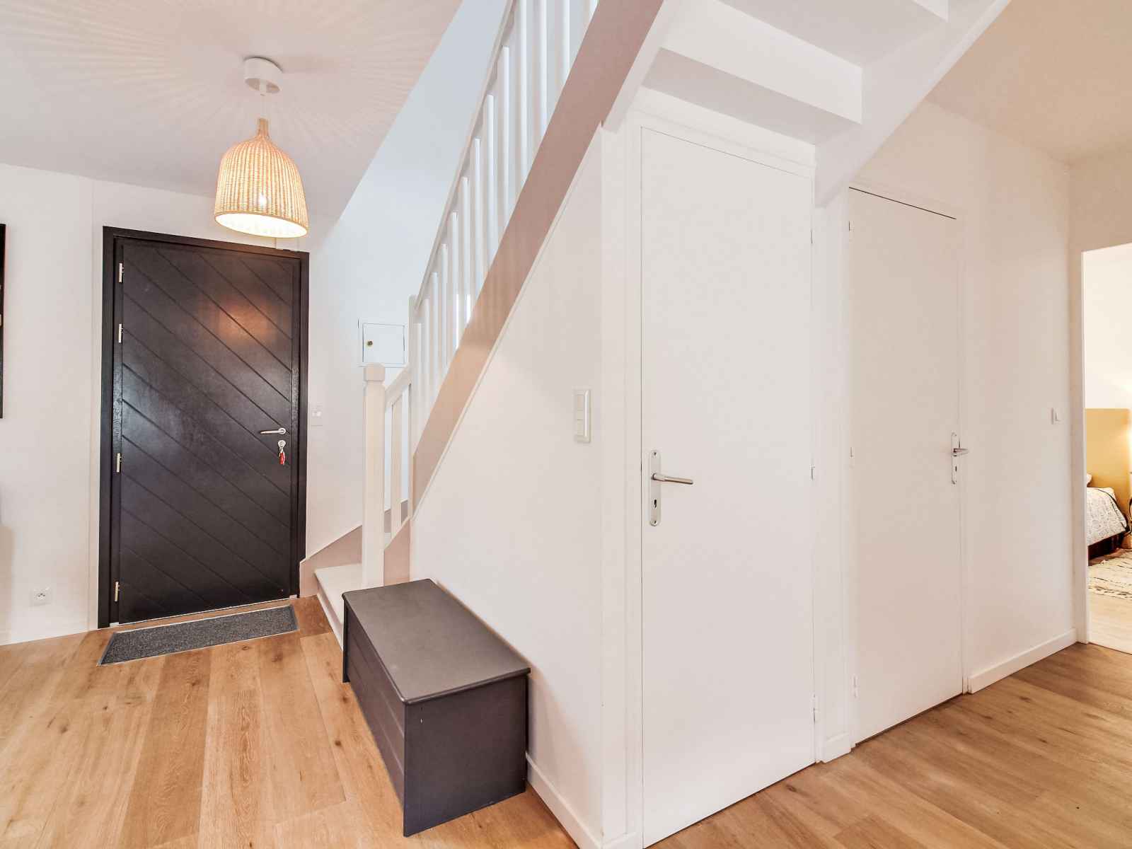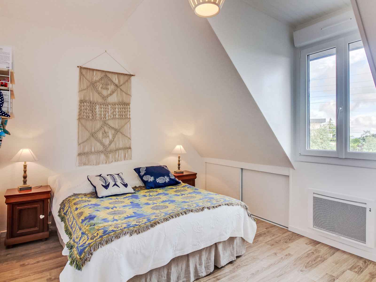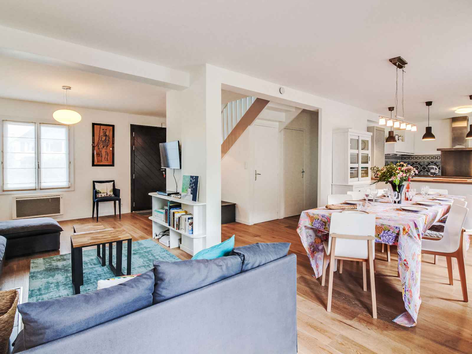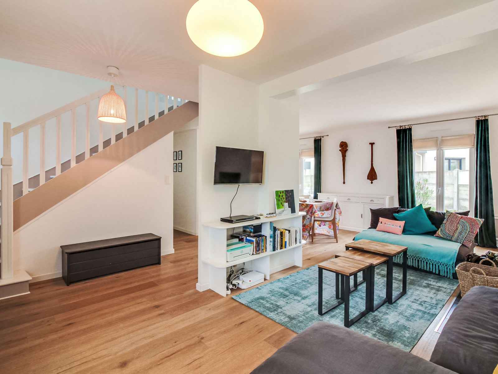 lave-vaisselle, 3 plaques à induction, grille-pain, bouilloire électrique, micro-ondes, cafetière électrique). Sortie sur le jardin. WC séparé. Chauffage électrique. À l'étage supérieur: 1 chambre avec 1 grand-lit (1 x 140 cm, longueur 190 cm). 1 chambre avec 1 lit (90 cm, longueur 190 cm). 1 chambre avec 1 x 2 lits superposés (90 cm, longueur 190 cm), 1 lit gigogne. Bain/WC. A disposition: lave-linge, sèche-linge, sèche-cheveux. Internet (Connexion WIFI). Veuillez noter: adapté(e) aux familles. Maison non-fumeur. Détecteur de fumée.