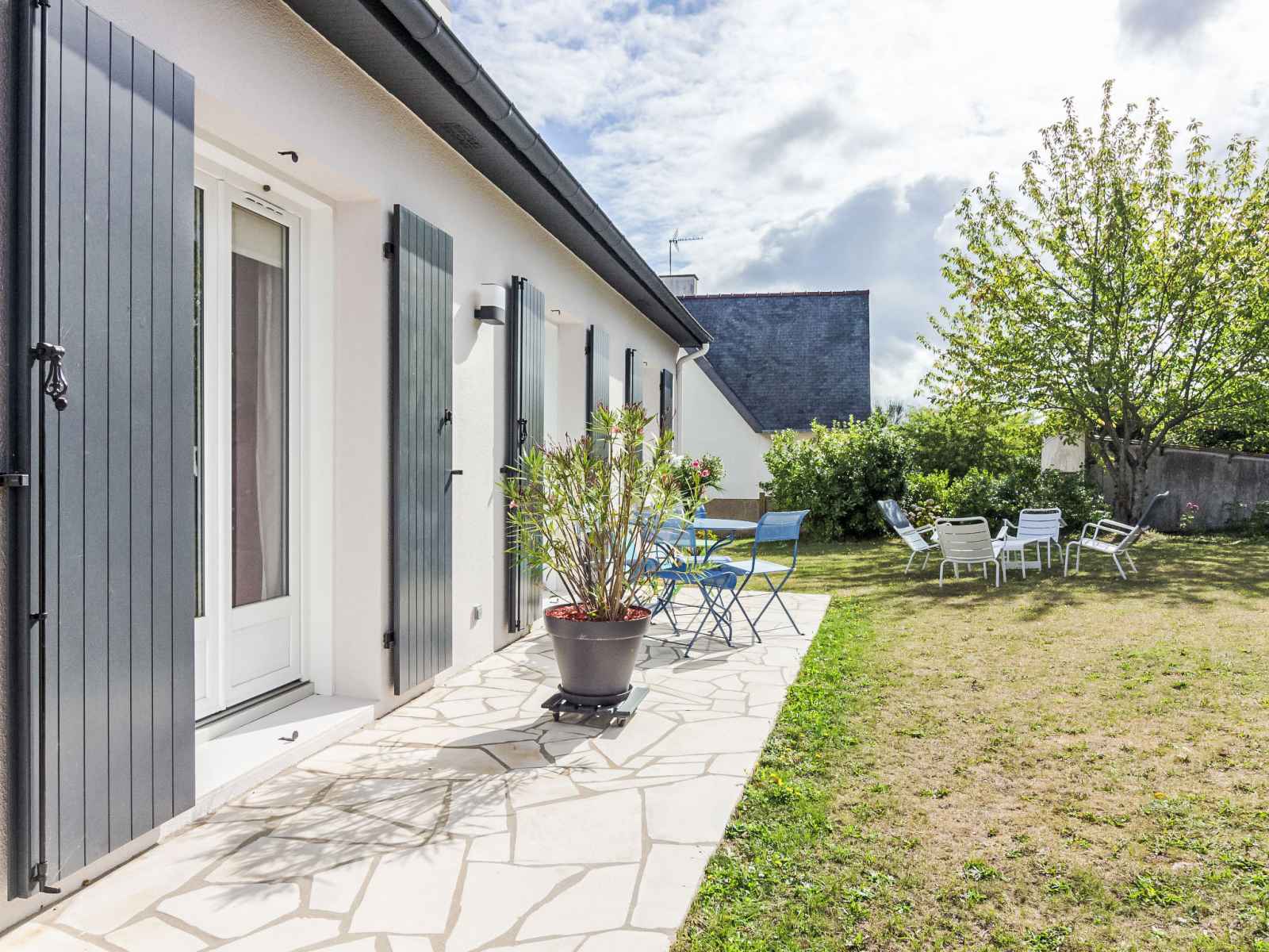 Maison individuelle "pival". dans le quartier de port blanc, dans un quartier résidentiel, à, de la mer, à 650 m de la plage. a usage privé: jardin entretenu 700 m2 avec pelouse. meubles de jardin, place de parking sur le terrain. supermarché 700 m, restaurant 300 m, boulangerie 1.3 km, centre à 20 minutes à pieds, arrêt de bus