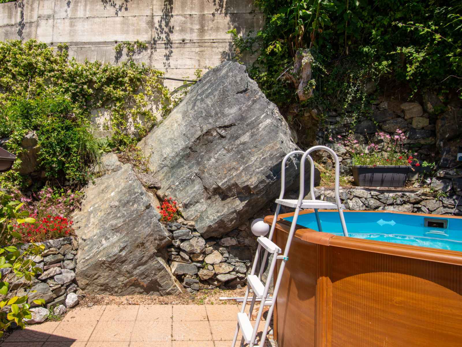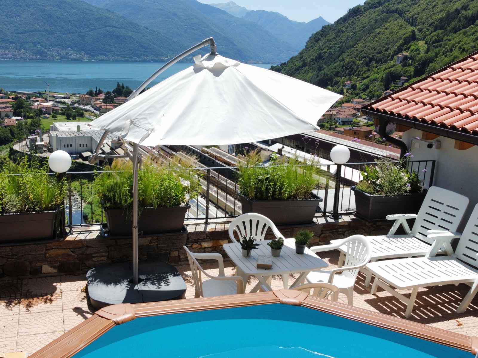 Villa moderne "anna", de 2 étages. dans le haut de la station de dongo, à 2 km du centre de dongo, à 50 km du centre de como, à 43 km du centre de lugano, situation isolée, surélevée sur un versant, à 1.7 km du lac, dans une rue. a usage privé: terrain (clôturé), piscine (hors sol) ronde (2,20 m diamètre, profondeur 130 - 140 cm,