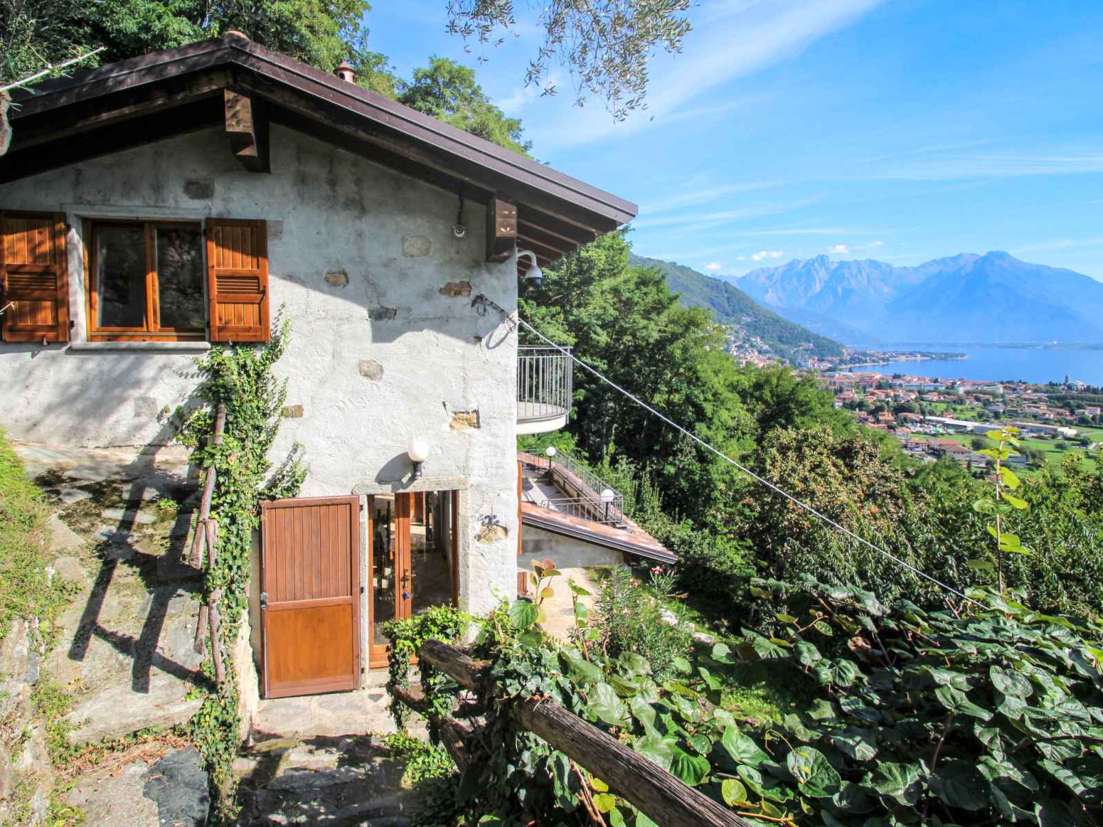 repas. Sortie sur le jardin. À l'étage supérieur: (escalier en colimaçon) 1 chambre double. Sortie sur le balcon. 1 chambre avec 1 lit et 1 lit gigogne. Sortie sur le balcon. Douche/bidet/WC. Chauffage au gaz. Sol en pierres naturelles. 2 petits balcons, terrasse 20 m2. Meubles de terrasse, chaises longues (4). Belle vue panoramique sur le lac et les montagnes. A disposition: lave-linge, chaise haute pour enfant, lit bébé jusqu'à 2 ans, sèche-cheveux. Internet (Connexion WIFI, gratuit). Veuillez noter: maison non-fumeur. Maximum 2 animaux/ chiens autorisés. IT013090C2ZT9EC7SU