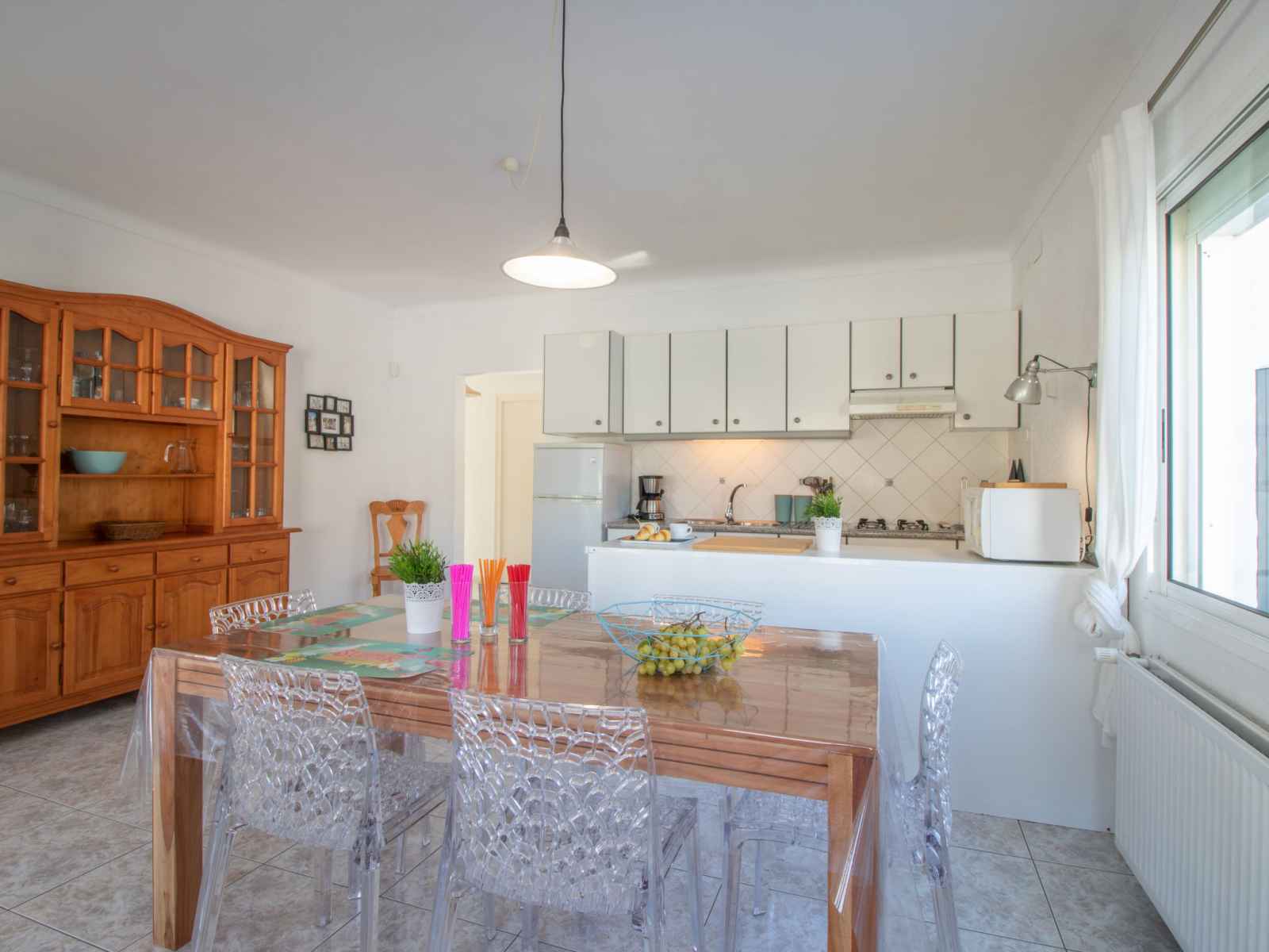 Maison accueillante, confortable "montgri". dans le quartier de montgri, à 800 m du centre d'empuriabrava, situation tranquille, ensoleillée quartier résidentiel, zone avec peu de trafic, à 1 km de la mer, à 1 km de la plage, à 220 m de la rivière, dans une impasse. a usage privé: terrain (clôturé), beau jardin entretenu avec pelouse et