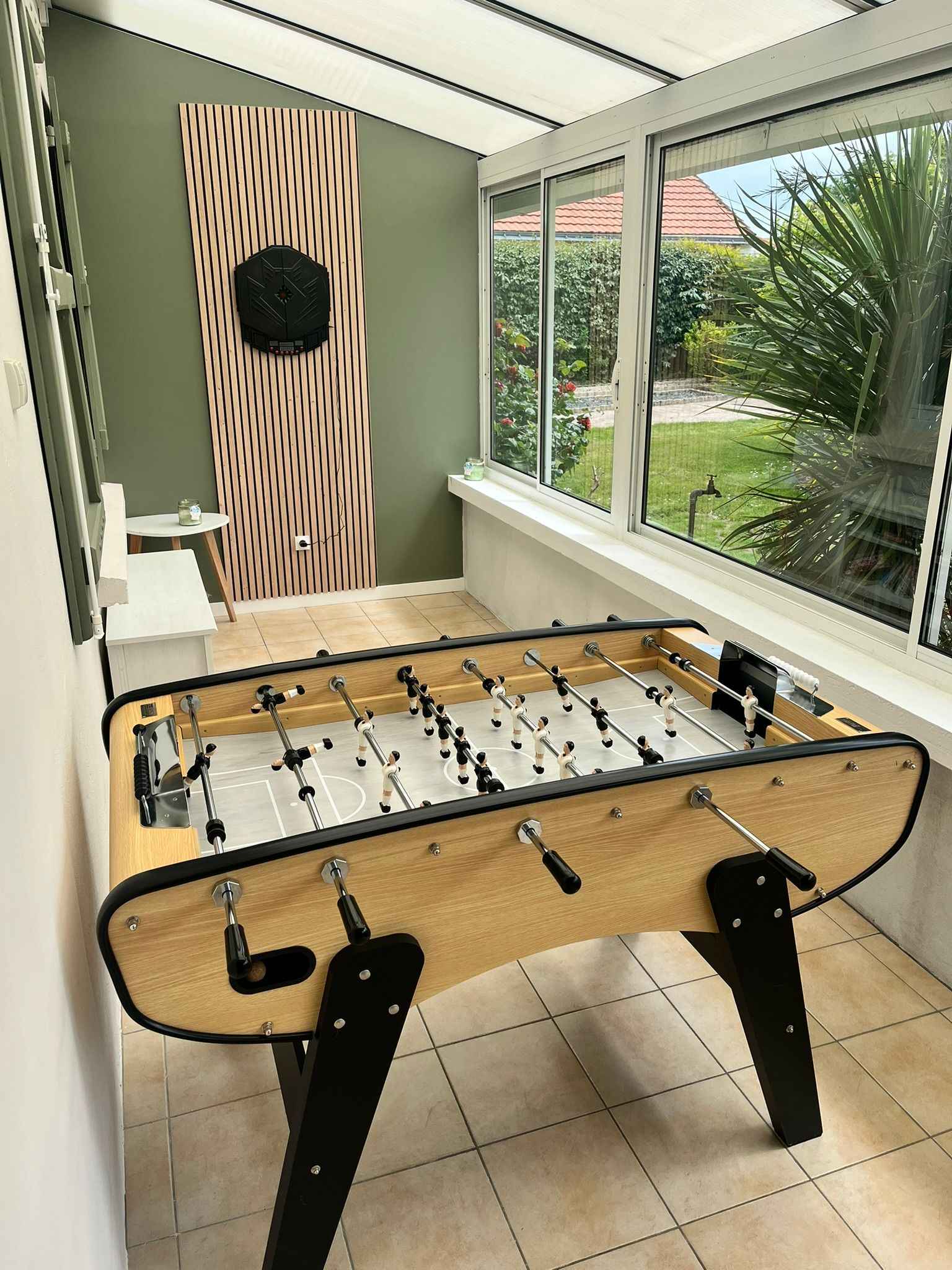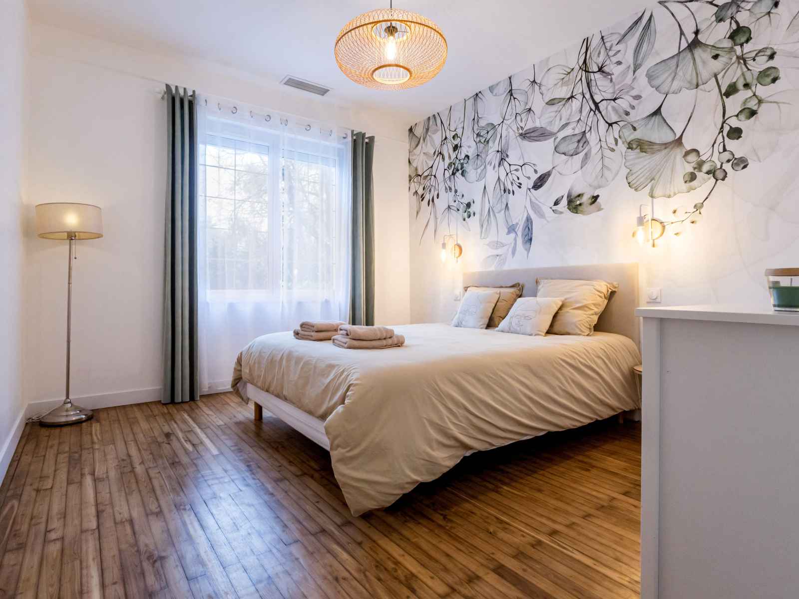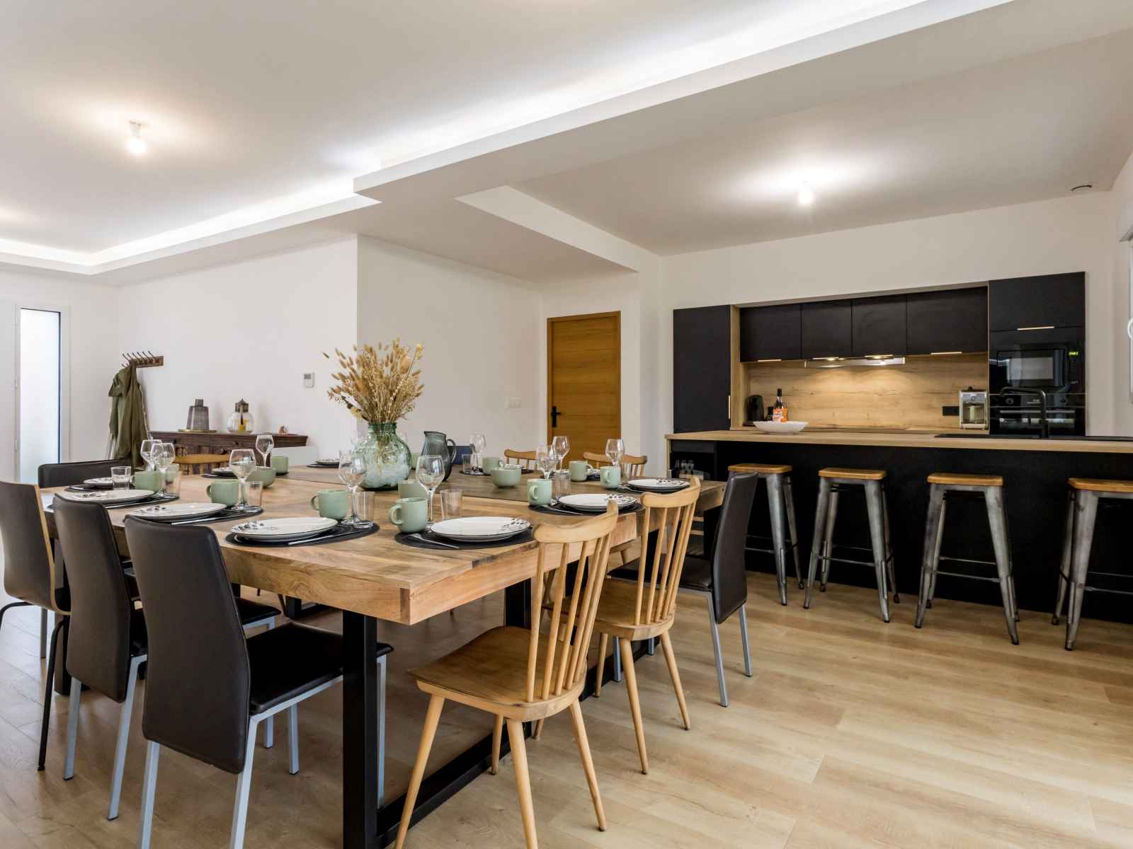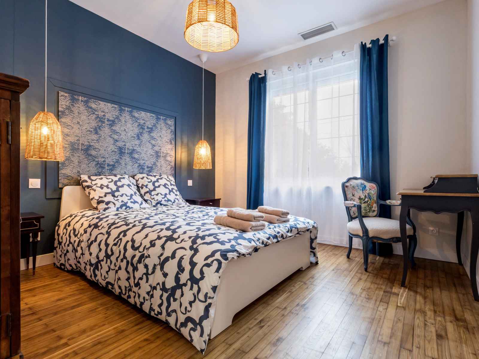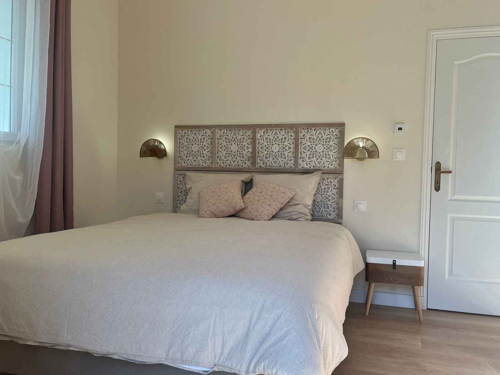 un bâtiment annexe, piscine intérieure privative chauffée, ouverte toute l'année (4x10 m). Plain pied: cuisine aménagée ouverte sur séjour, grand salon, véranda/coin détente (non chauffée), 5 chambres (1 et 2: lit 160x200, 3 : lit 140x190, 4: lit 160x200, 5: 4 lits 90x190), 2 salles d'eau, 2 WC indépendants et buanderie. Equipements inclus: wifi, sèche-linge, congélateur, lit/chaise bébé, climatisation, baby-foot & jeu de fléchettes. Tout compris: électricité, chauffage électrique, draps (lits faits à l'arrivée), linge de toilette et ménage fin de séjour. Serviettes de piscine non comprises.