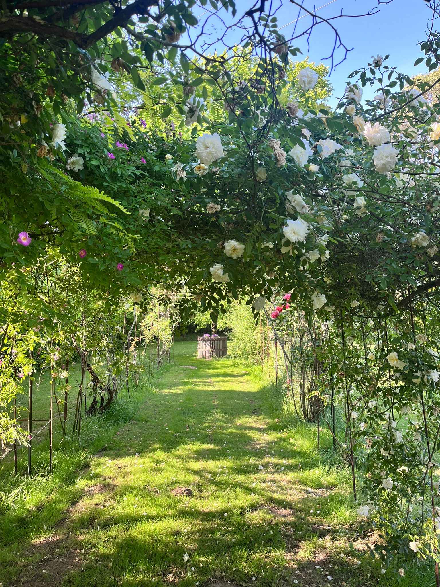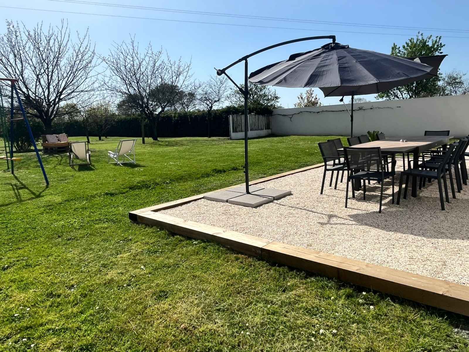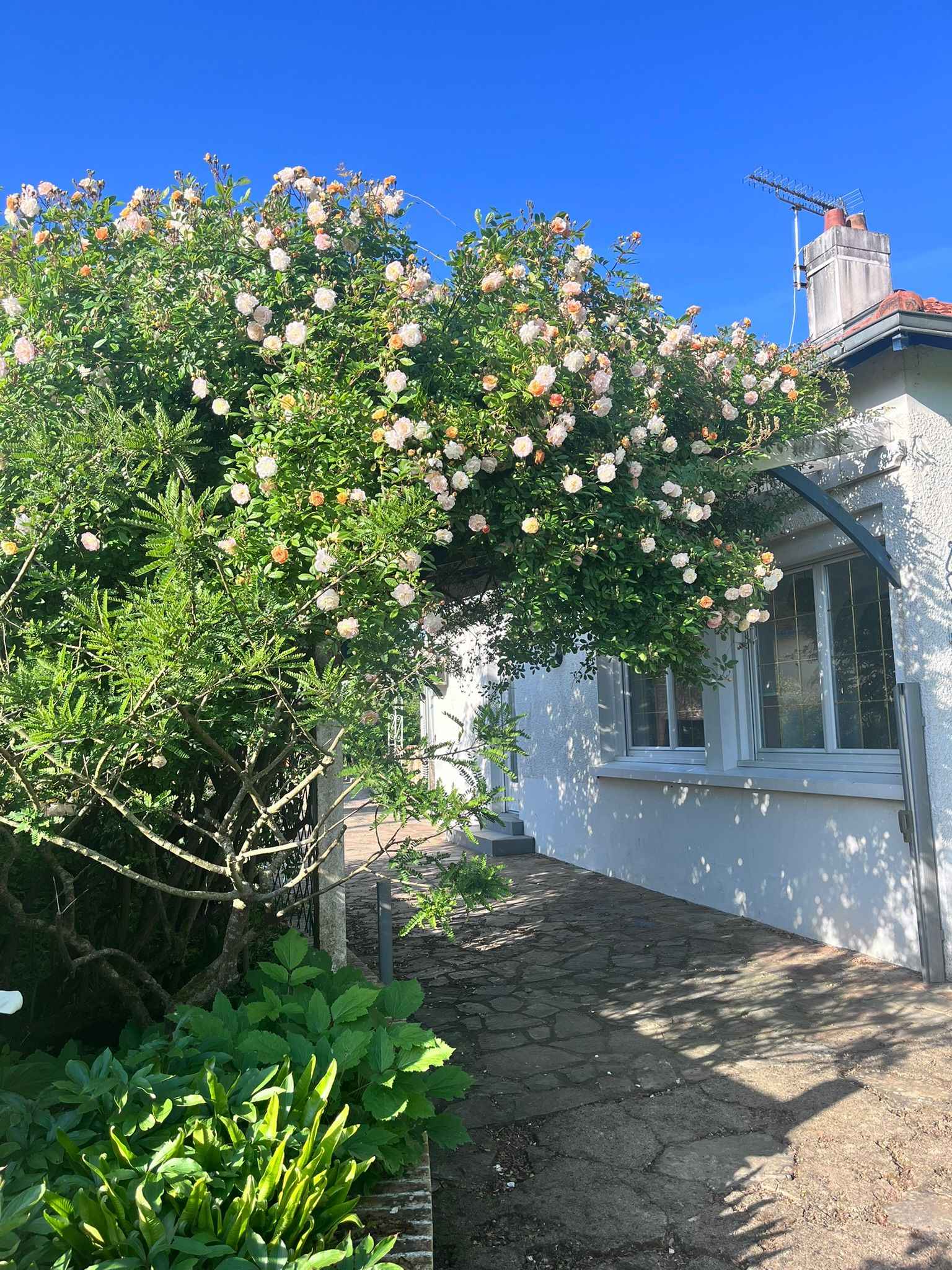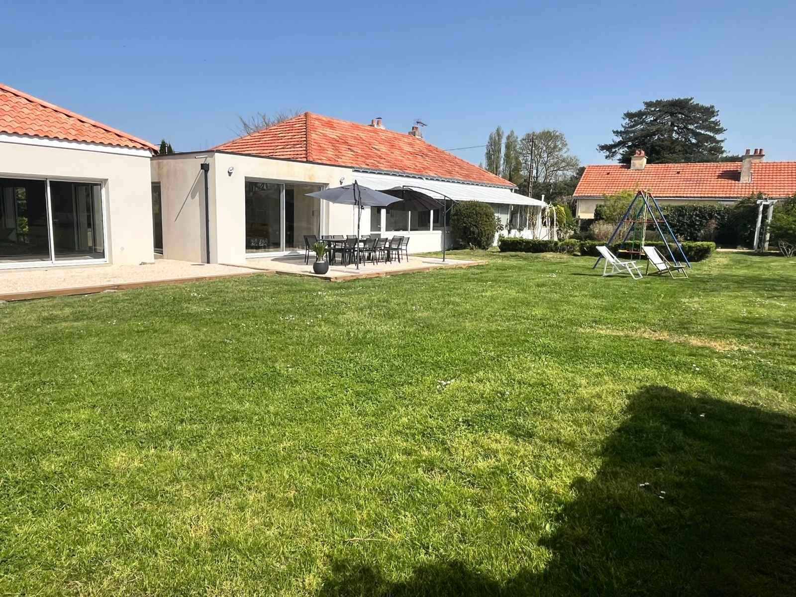 jardin arboré clos de 5000 m² avec terrasse (orientée sud) et portique.