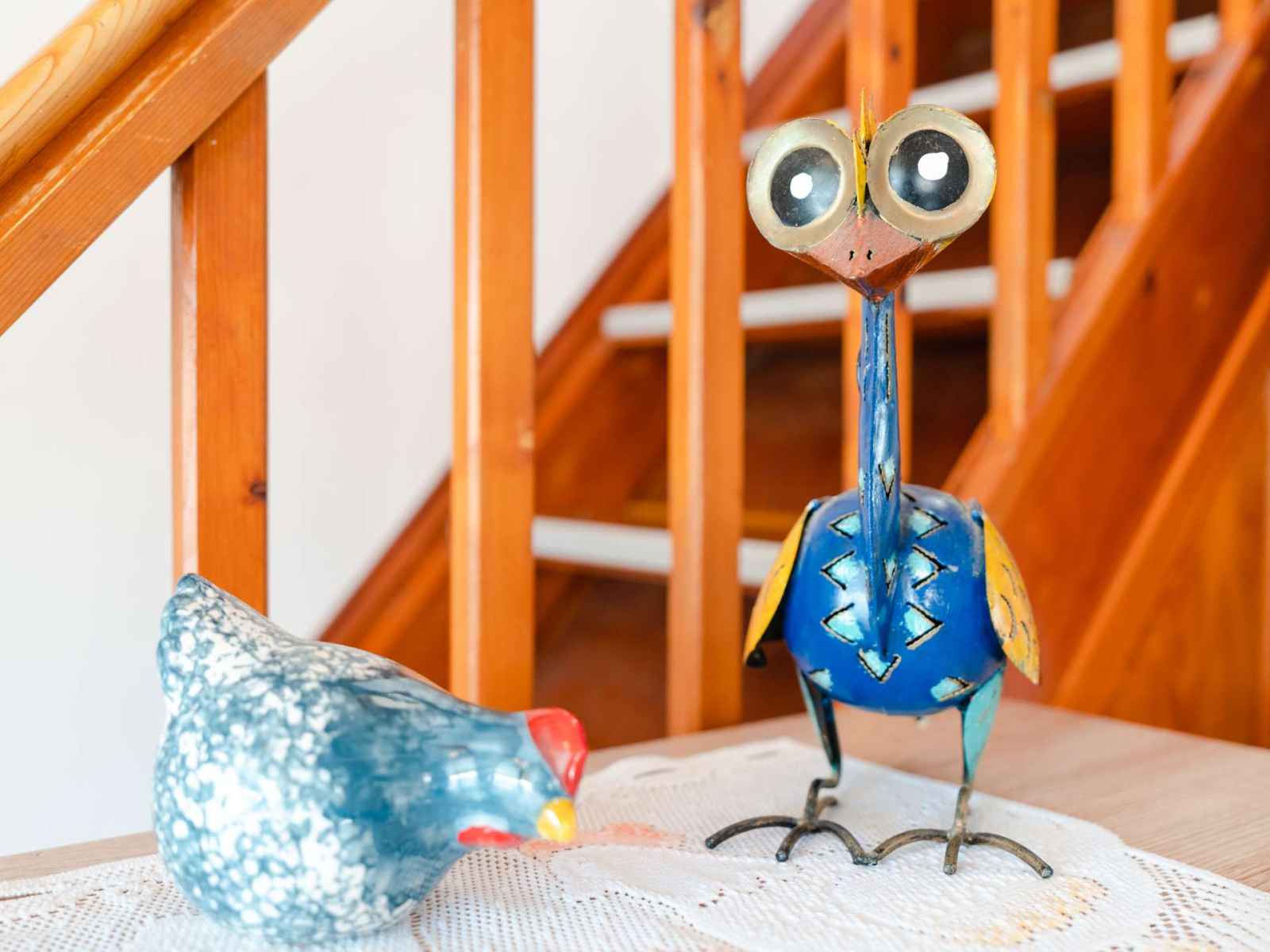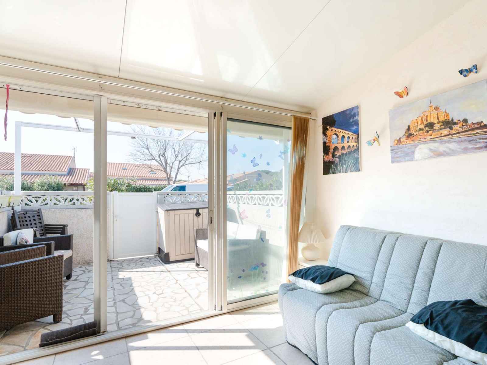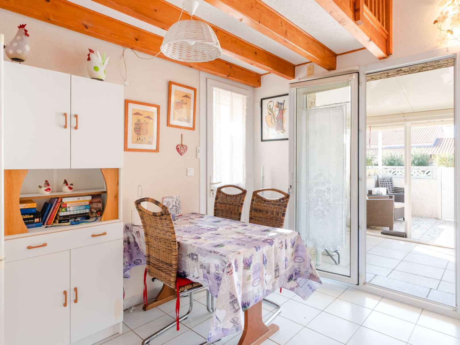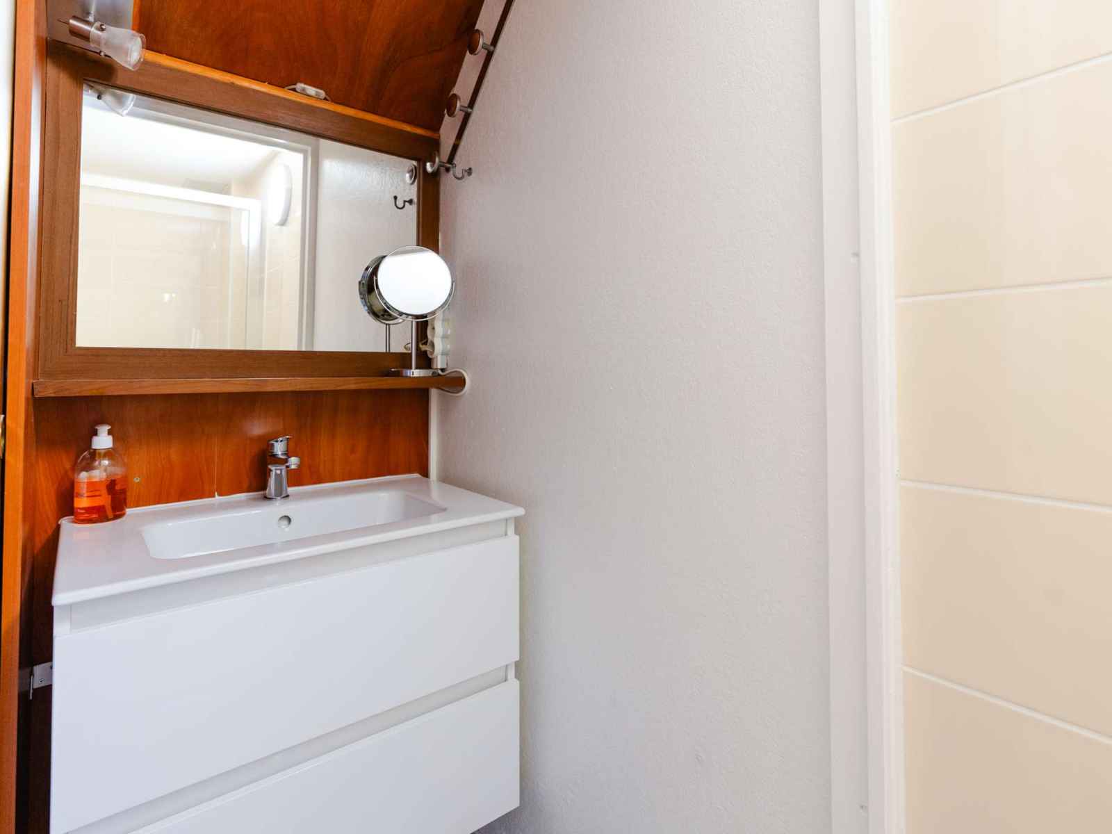 la véranda est équipée d'un canapé clic-clac (couchage 140x190), d'une TV (chaines allemandes et françaises). L'espace cuisine-repas dispose d'une table avec chaises, une commode, et une cuisine équipée (plaque de cuisson 4 feux vitro-céramique, hotte aspirante, cafetière Senseo, grille-pain, bouilloire, réfrigérateur avec compartiment congélateur, four, micro-ondes, lave-linge et lave-vaisselle). La salle d'eau avec douche et WC se situe au rez-de-chaussée.