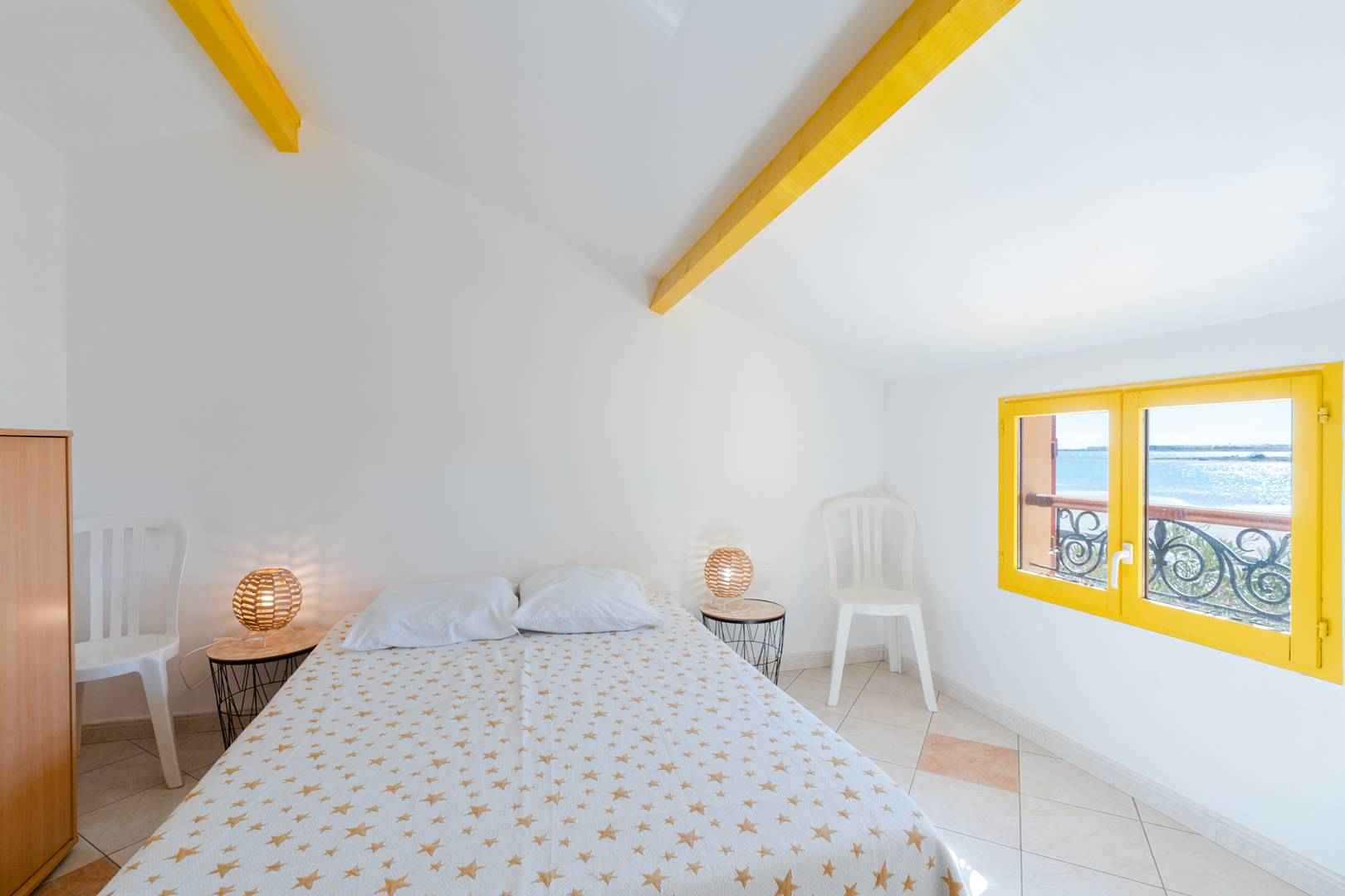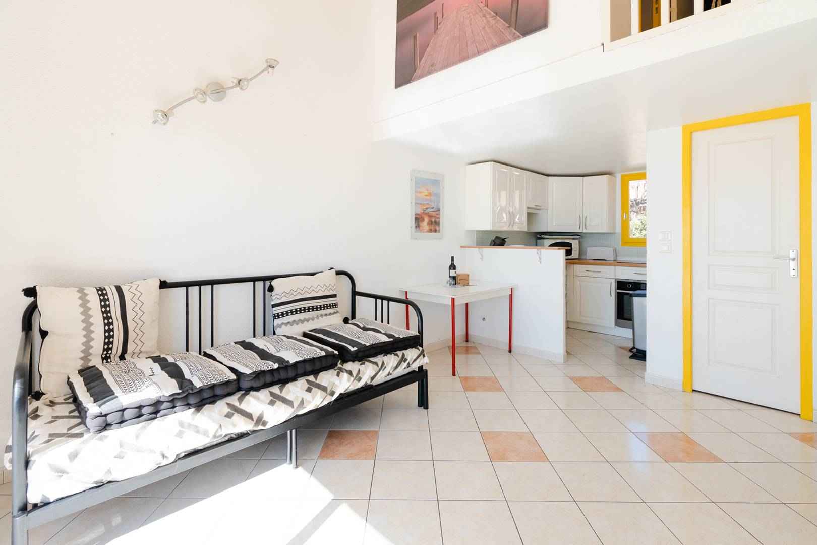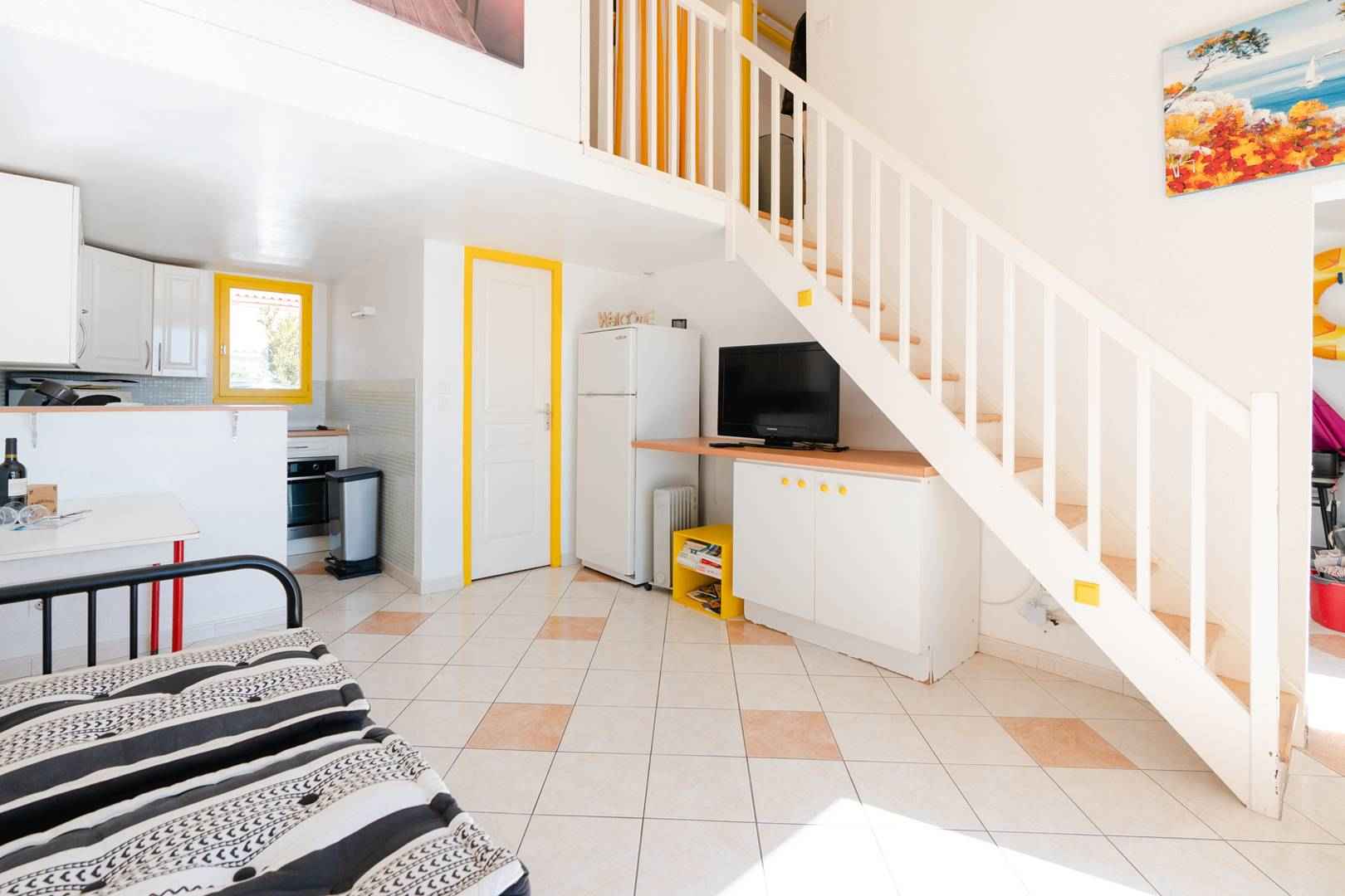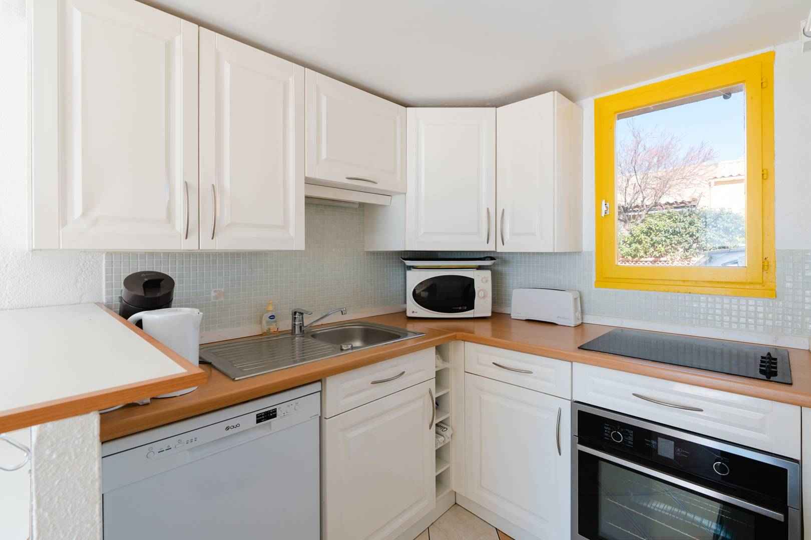 congélateur, four, lave vaisselle, cafetière classique),une salle d'eau avec douche, WC et un accès à la terrasse donnant directement sur la Plage du Grazel avec salon de jardin, barbecue.