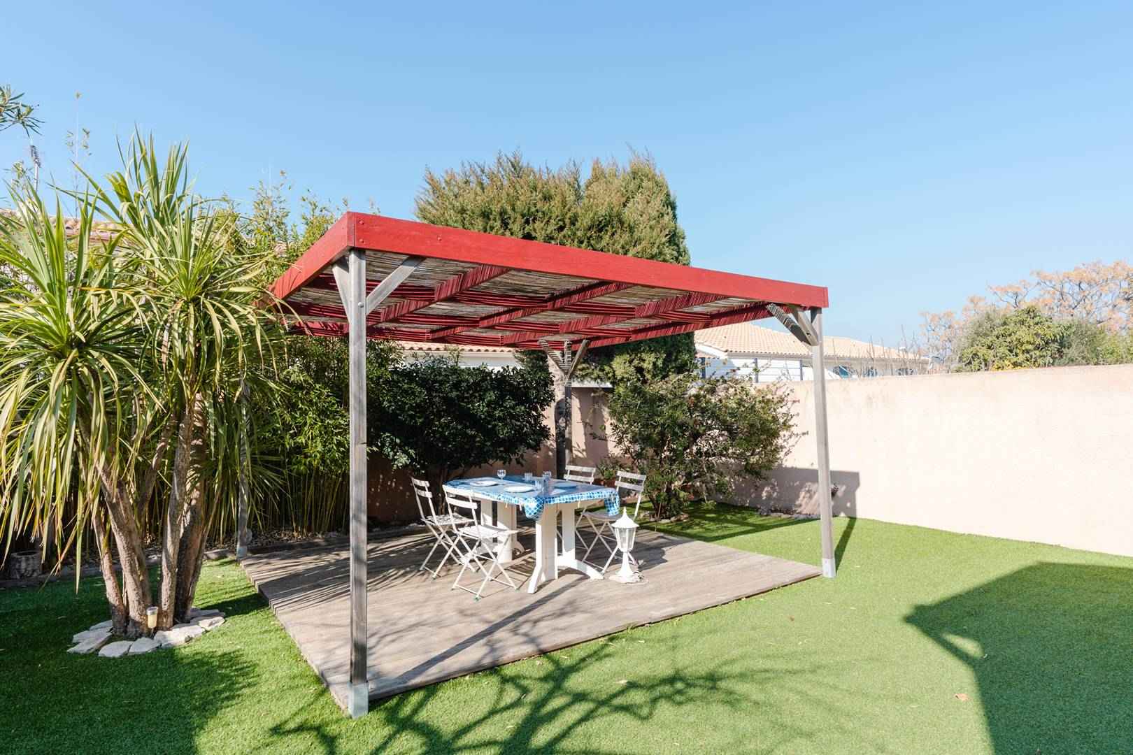 idéalement placée à gruissan pour passer des vacances en famille ou entre amis, cette spacieuse villa sur deux niveaux dispose au