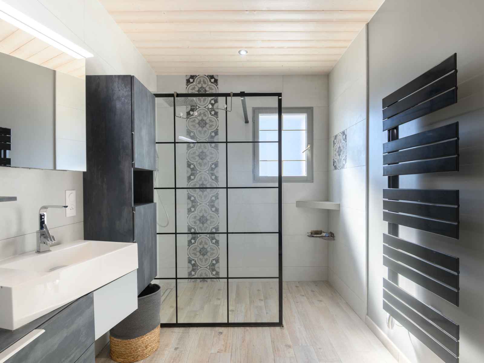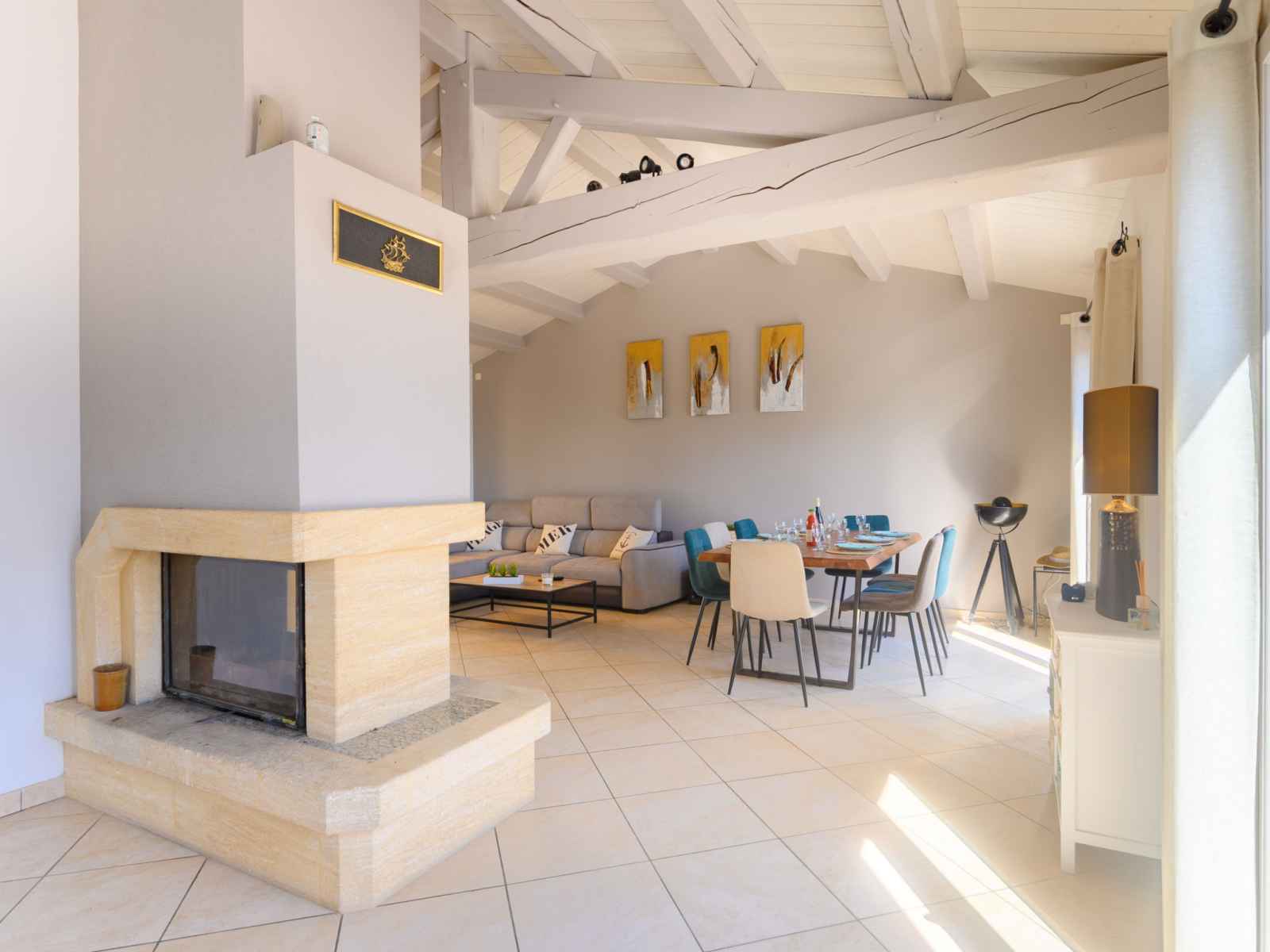 Maison 6 pièces 196 m2. aménagement confortable et agréable: séjour/salle à manger avec cheminée et home cinéma. sortie sur la terrasse. 1 chambre avec dressing avec 1 grand-lit (160 cm, longueur 200 cm), douche, double vasque et tv (écran plat). 1 chambre avec 1 lit double (160 cm, longueur 200 cm), douche/wc et tv (écran plat). 1