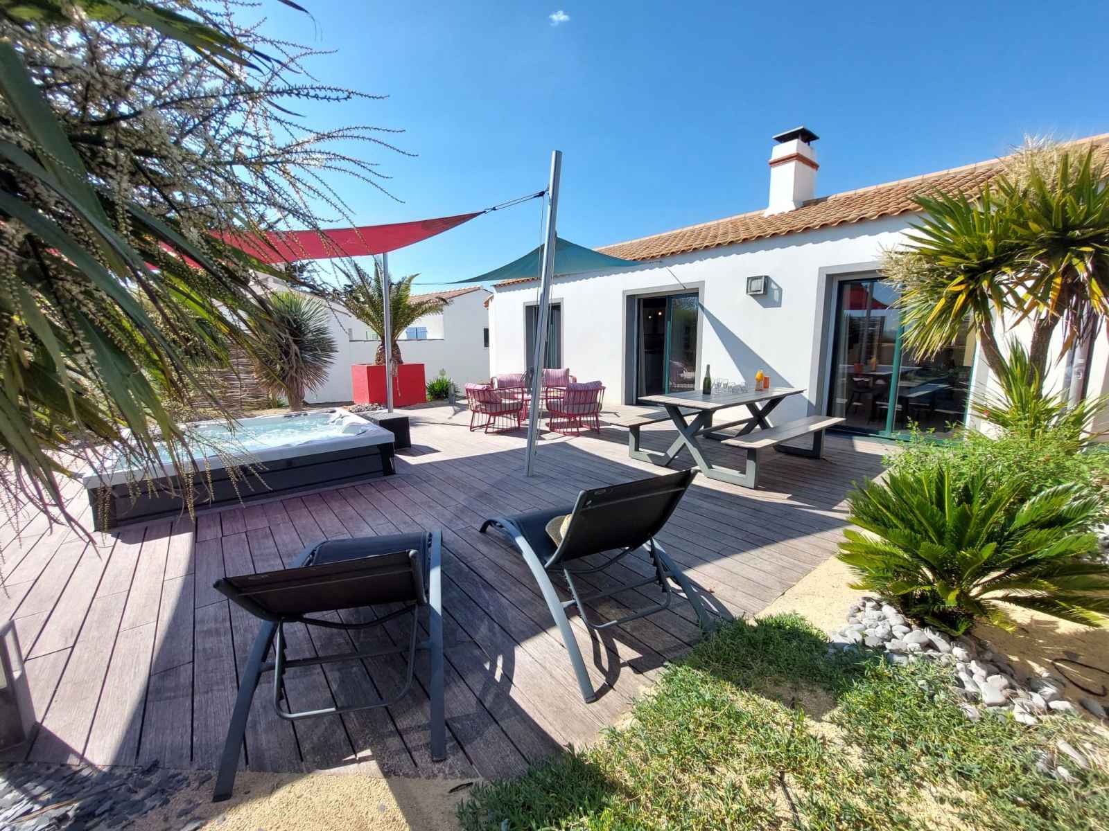 Grande maison moderne "confort et relax ile de noirmoutier". À 200 m du centre de la guérinière, à 5 km du centre de noirmoutier-en-l'ile, à 30 m de la mer, à 10 m de la plage, dans une impasse. a usage privé: terrain 660 m2 (clôturé). douche extérieure, bain à remous , patio verdoyant place de parking (pour 4 voitures). borne de
