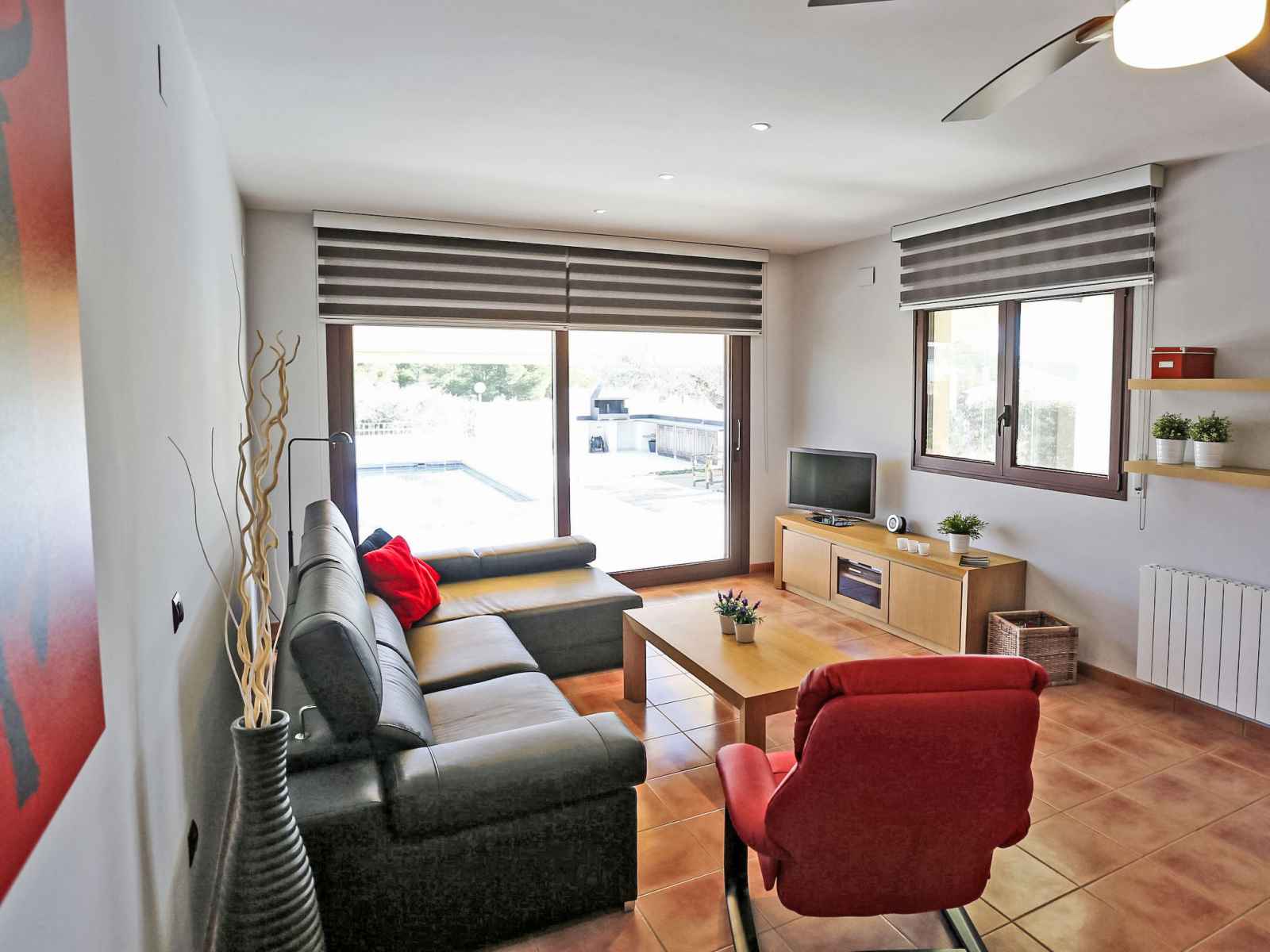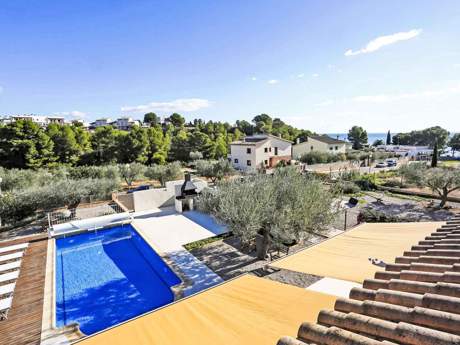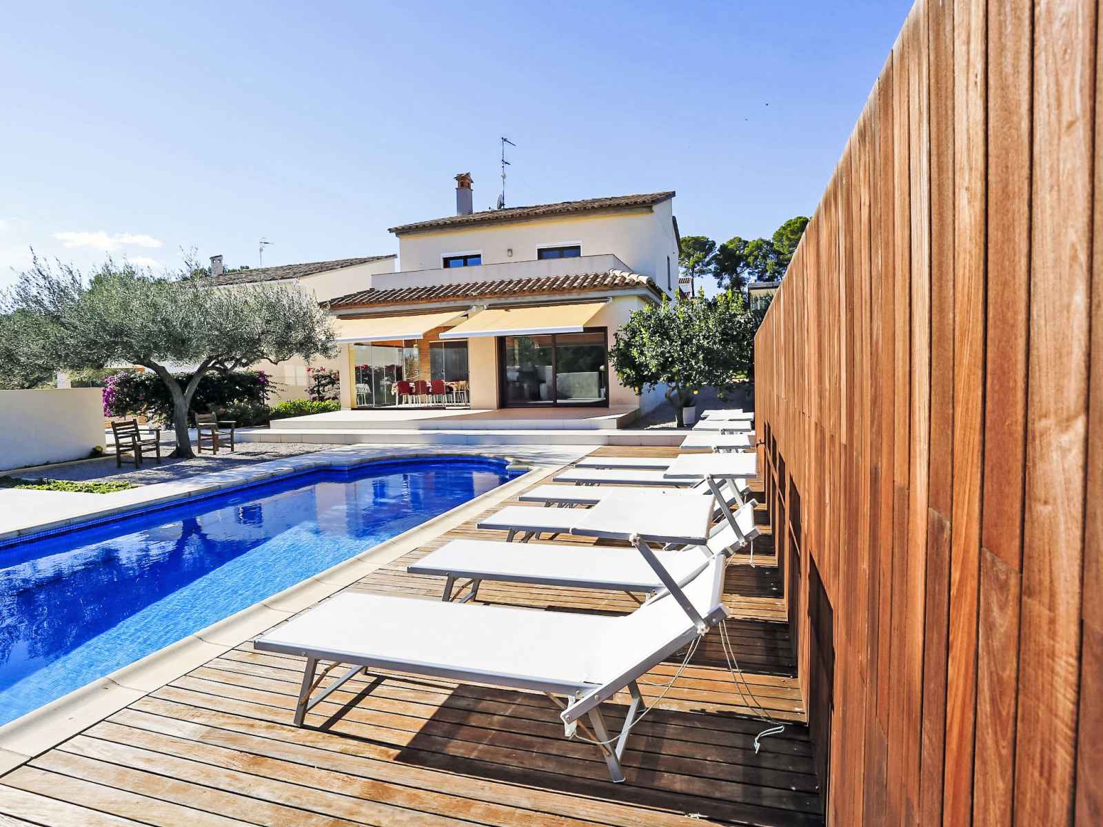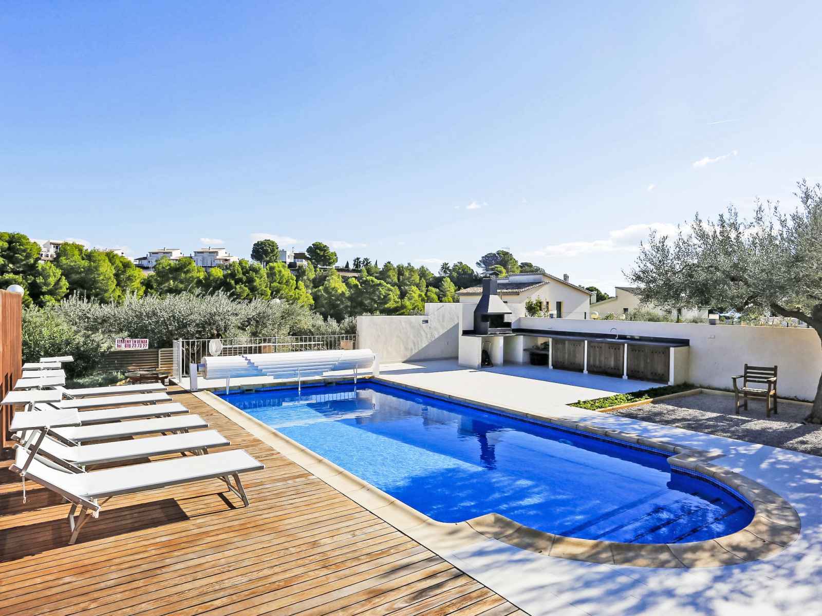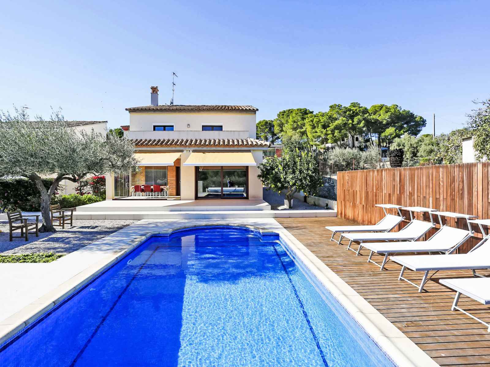 Urb à 3 km de cap roig: grande villa moderne, luxueuse "perales", année de construction 2008. À 100 m de la mer, à 100 m de la plage. a usage privé: terrain 700 m2, parc, grand jardin, piscine (8 x 4 m, disponibilité saisonnière: 01.mar. - 30.oct.). douche extérieure, ping-pong, terrain de pétanque, jardinet, espace de jeux pour les