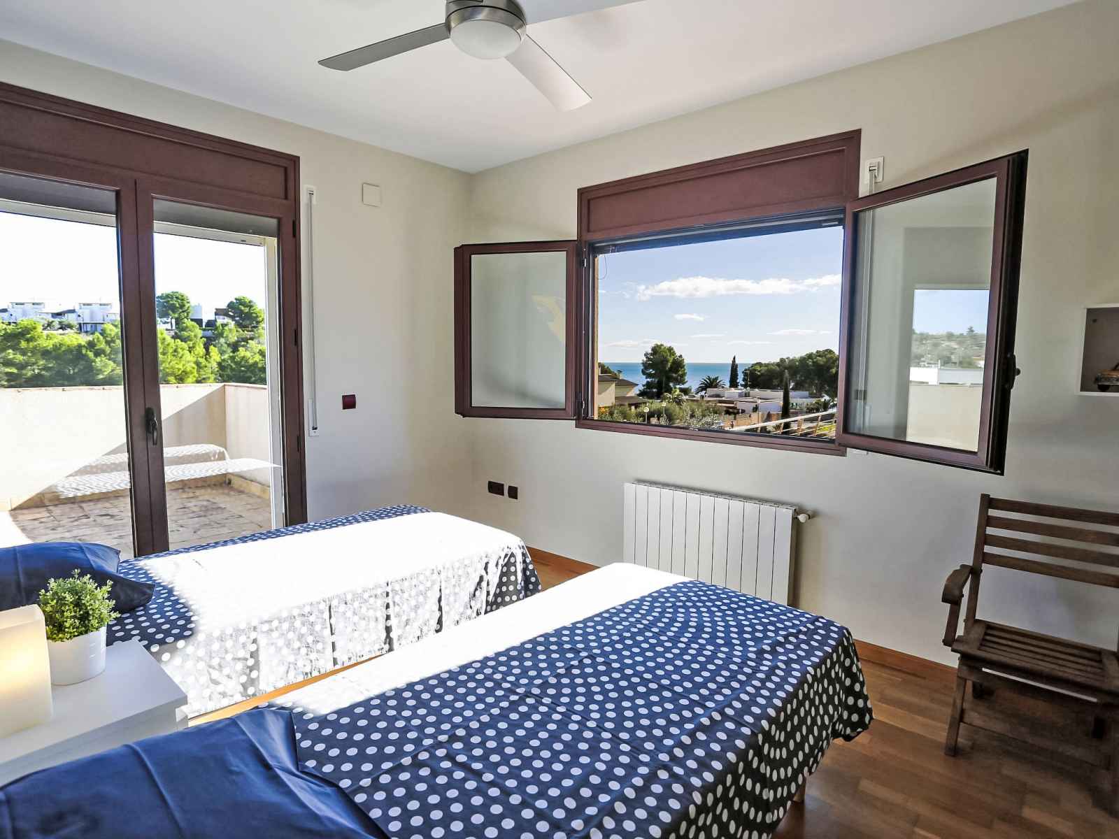 "perales", villa 5 pièces 240 m2 sur 2 niveaux. spacieux et clair, aménagement confortable et de bon goût: séjour/salle à manger avec table pour les repas, tv (satellite), chaînes de tv internationales, écran plat, chauffage a gaz et ventilateur. sortie sur le jardinet. 1 chambre double avec 1 grand-lit (1 x 160 cm, longueur 200 cm).