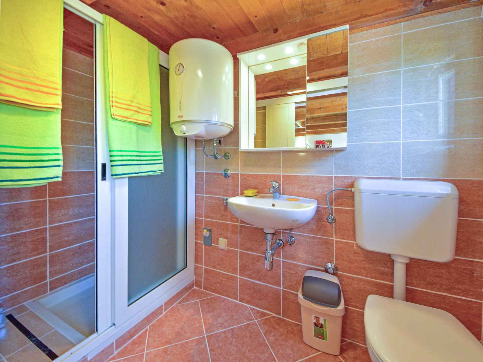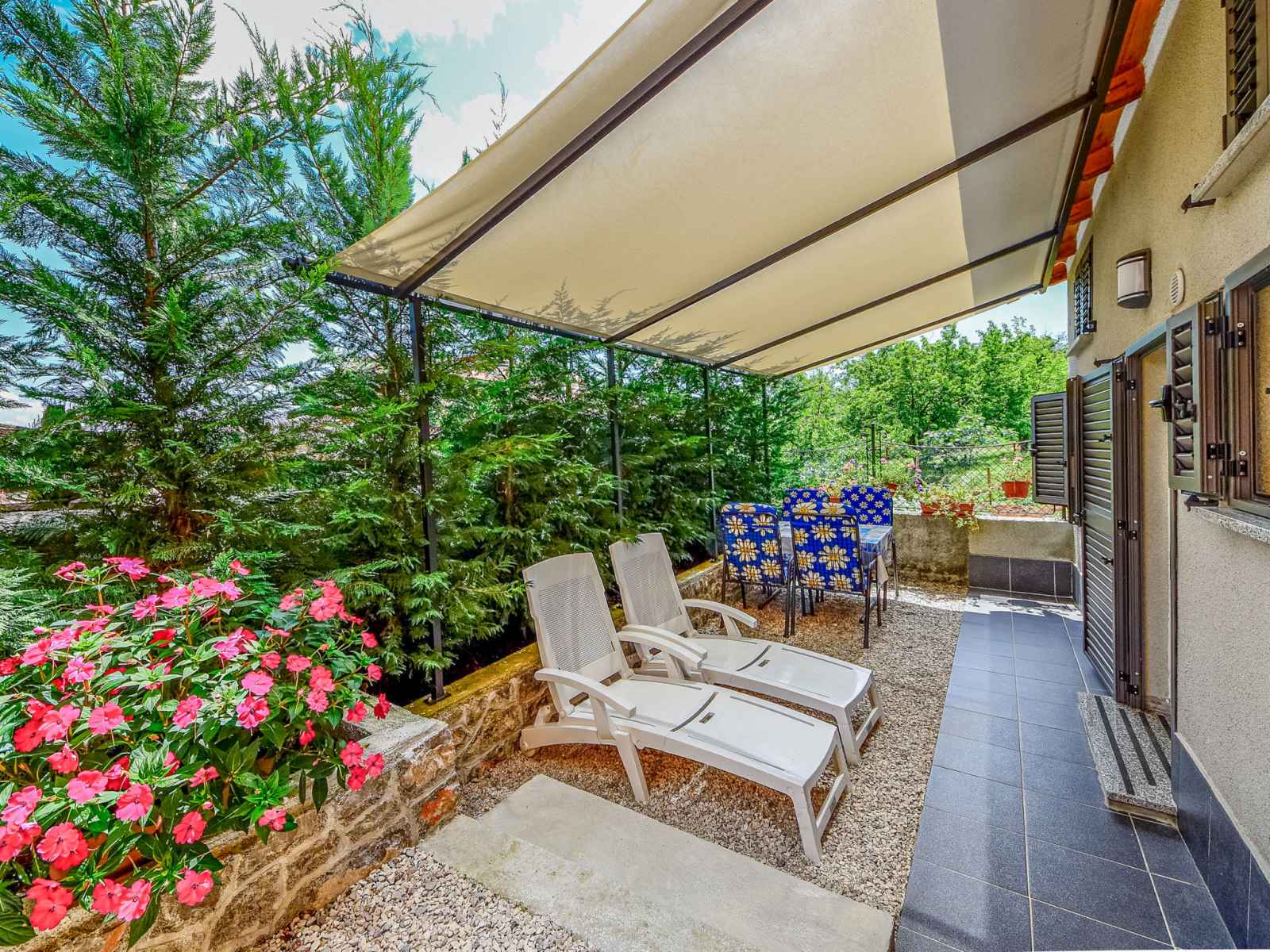 Bungalow "karolina", de 2 étages. dans le haut de la station de lovran, dans le hameau d'oprić, à 3 km du centre de lovran, situation tranquille, ensoleillée, à 3 km de la mer, à 3 km de la plage, dans une impasse. a usage privé: terrasse (16 m2), meubles de jardin. infrastructures de la maison: accès internet, lave-linge. place de parking