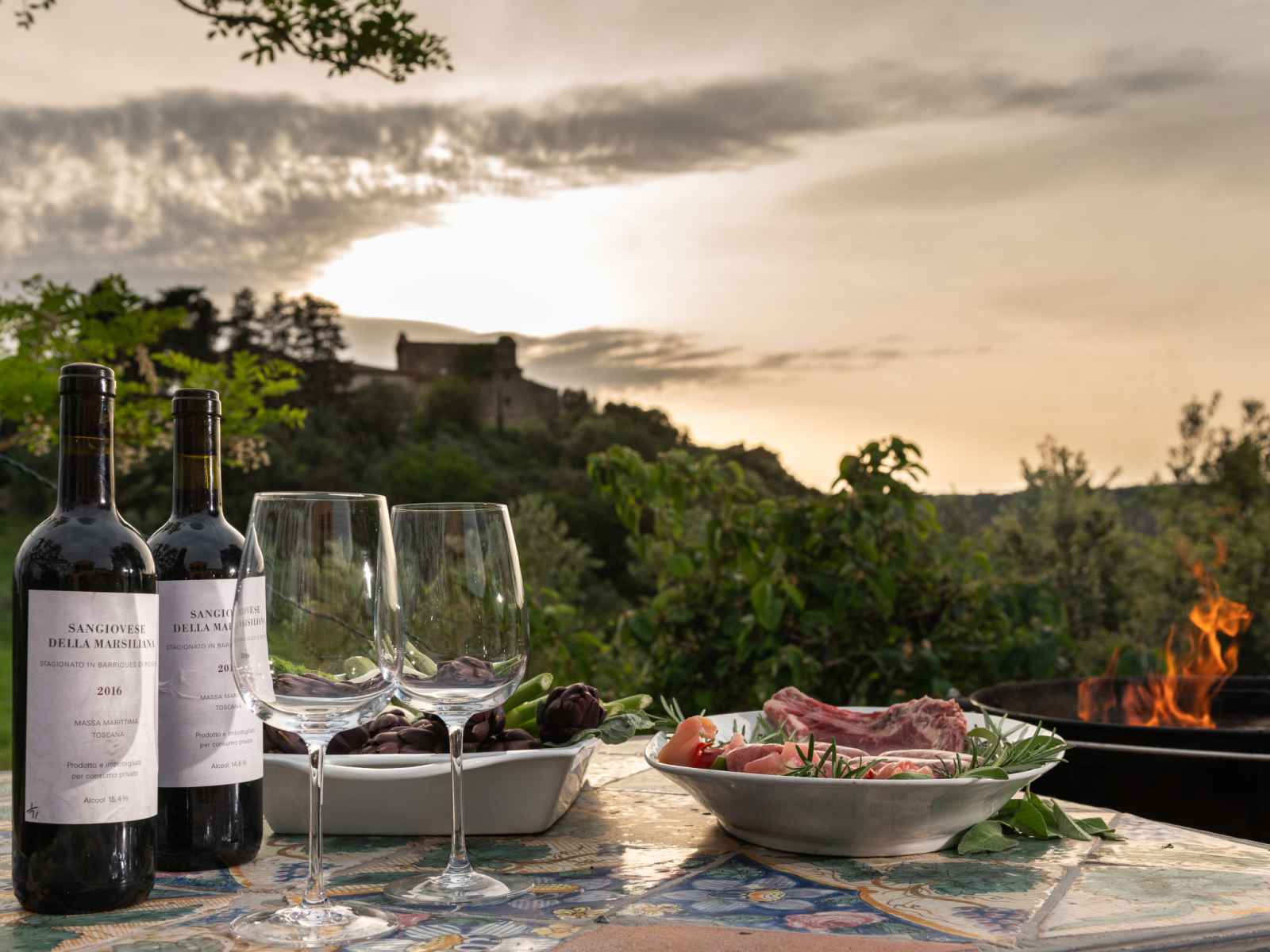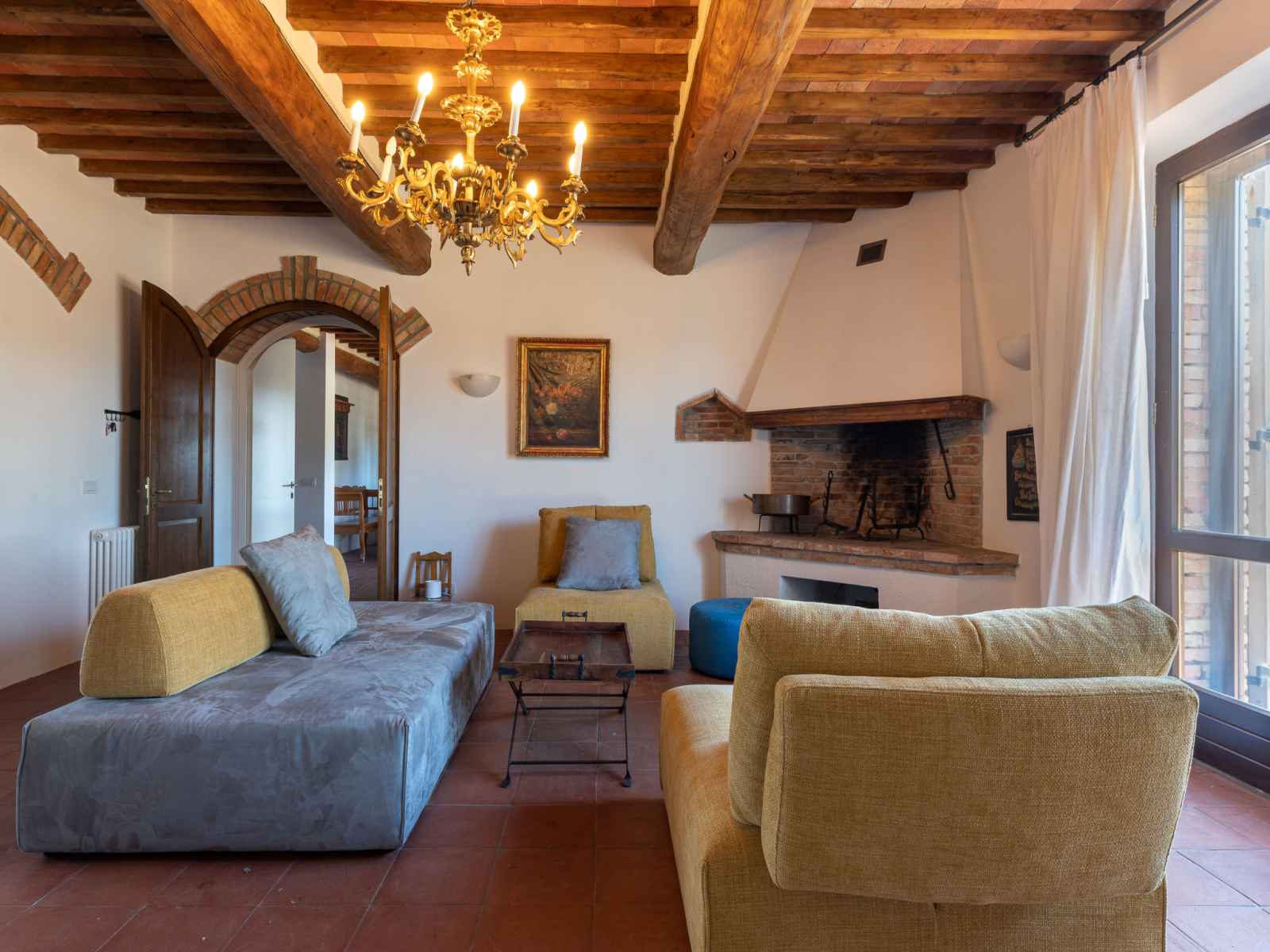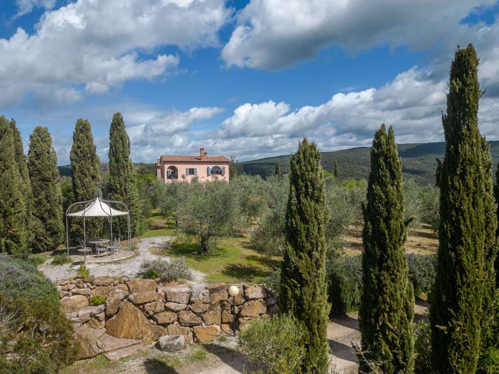 "villa marsiliana", villa 7 pièces 270 m2 sur 2 niveaux. spacieux, aménagement de bon goût et de style: séjour avec baie vitrée avec tv. sortie sur le jardin. grande salle à manger avec cheminée (uniquement à titre de décoration). sortie sur le jardin. 1 grande chambre avec 1 lit double et air-conditionné. sortie sur le jardin. grande