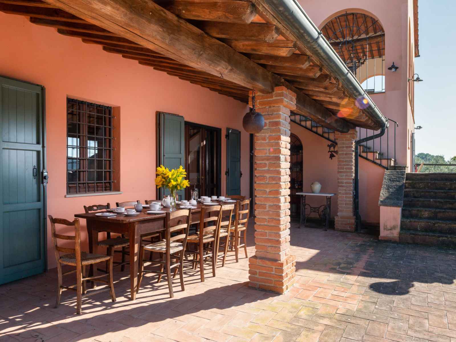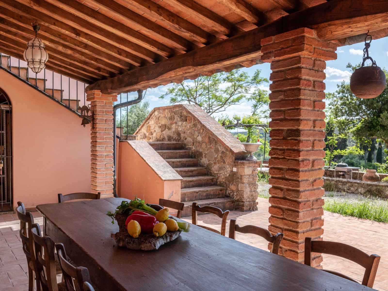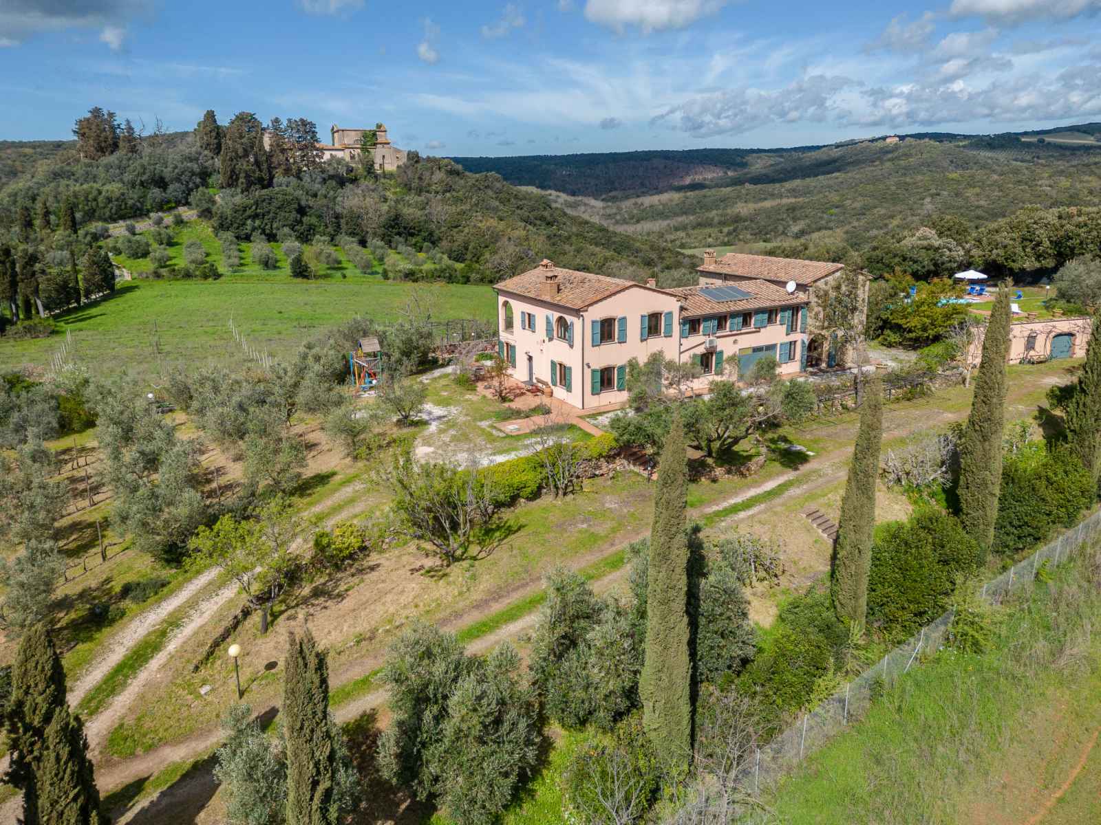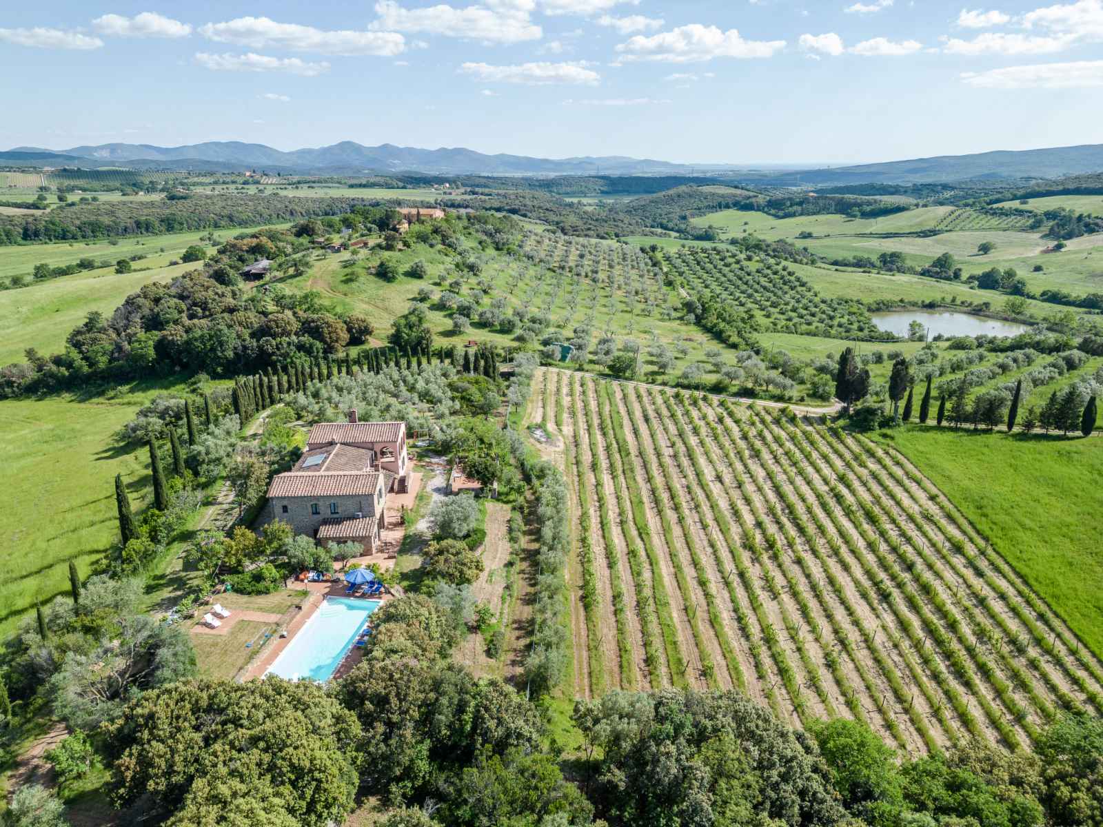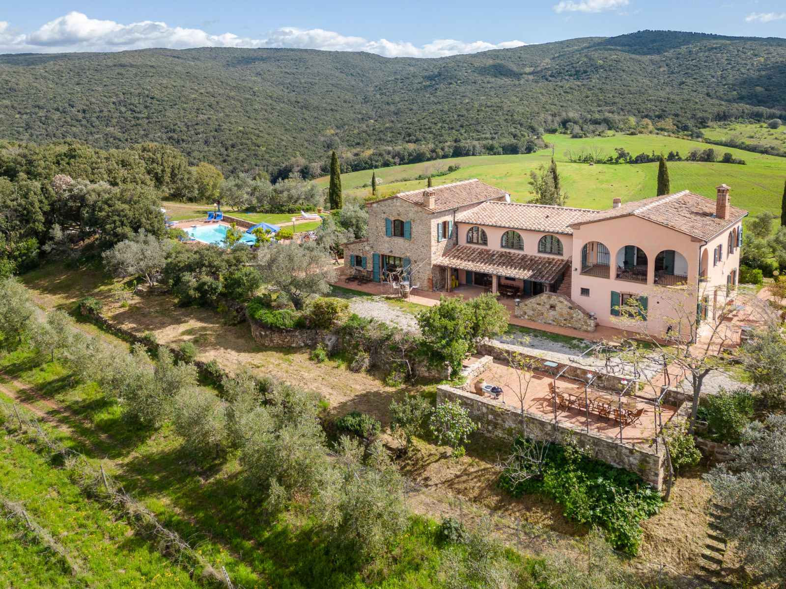 privé: jardin propice à la détente, piscine (12 x 6 m, disponibilité saisonnière: 01.mai. - 30.sep.). jardinet, pergola, terrasse, meubles de jardin, barbecue, entretien de la piscine par le propriétaire/jardinier. infrastructures de la maison: réduit pour bicyclettes. accès en voiture par un chemin difficile de 1 km de long (chemin non goudronné). place de parking (pour 5 voitures) près de la maison. magasins 6 km, magasin d'alimentation 600 km, supermarché 10 km, restaurant 6 km, location de bicyclettes 10 km, arrêt de bus "ponte elsa" 5 km, gare ferroviaire "albinia" 13 km, ferry "piombino (elba)" 40 km, plage de sable "follonica" 18 km, centre thermal "sassetta" 34 km, baignade en lac "accesa" 11 km. port plaisance 23 km, terrain de golf (18 trous) 20 km, ecole de surf 20 km, golf miniature 20 km, centre équestre 13 km, chemins de randonnées pédestres depuis la maison 10 m. attractions à proximité: scarlino 19 km, suvereto 22 km, castiglione della pescaia 40 km, baratti-populonia 43 km. région de randonnées: mountain-bike 20 m. les espaces extérieurs, avec leurs différentes terrasses et leurs coins intimes, sont idéaux pour les clients qui souhaitent socialiser et profiter d'un aperitivo. une grande table pour les repas en plein air est située sur une grande terrasse et est équipée d'un barbecue à côté. elle donne sur le domaine emblématique situé sur la colline d'en face, l'ancienne résidence d'été de l'évêque et garantit de merveilleux et pittoresques couchers de soleil. une autre longue table sous la terrasse couverte offre calme et ombre et est donc idéale pour le petit-déjeuner ou le déjeuner. la piscine rectangulaire jouit d'une intimité absolue et en même temps d'une vue magnifique sur la campagne de la maremme jusqu'au golfe de follonica. le parc naturel riserva statale marsiliana borde la propriété, garantissant ainsi la tranquillité.