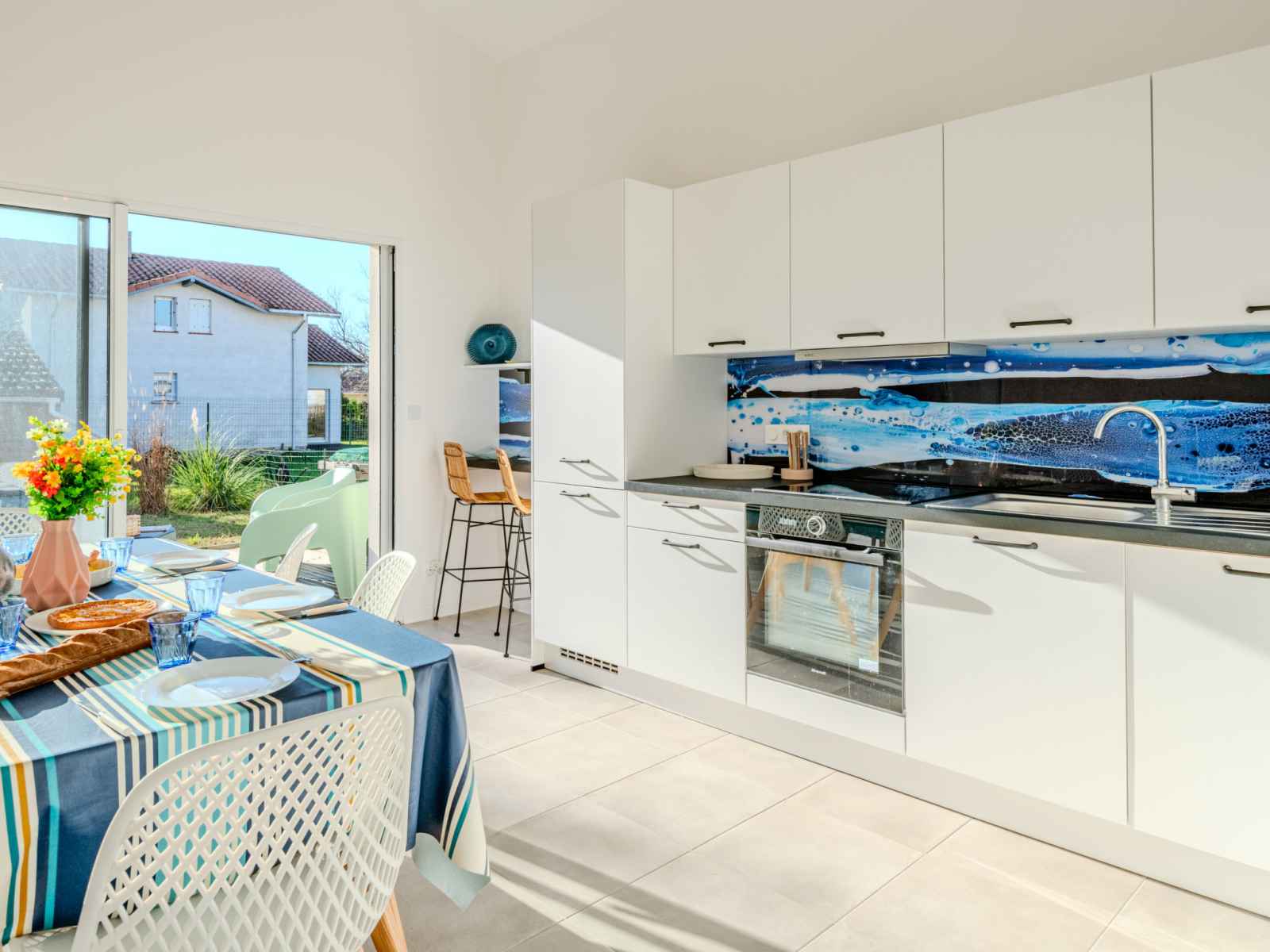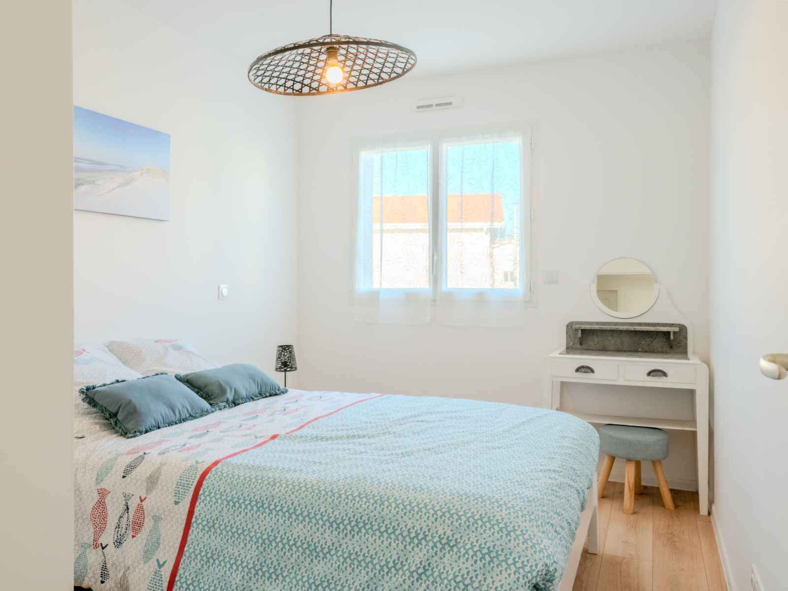Maison 4 pièces 90 m2. aménagement agréable et moderne: séjour/salle à manger avec tv (écran plat), air-conditionné. 1 chambre avec 1 x 2 lits superposés (90 cm, longueur 190 cm). 1 chambre avec 1 grand-lit (1 x 140 cm, longueur 200 cm). 1 chambre avec 1 grand-lit (1 x 160 cm, longueur 200 cm). cuisine ouverte (four, lave-vaisselle, 1
