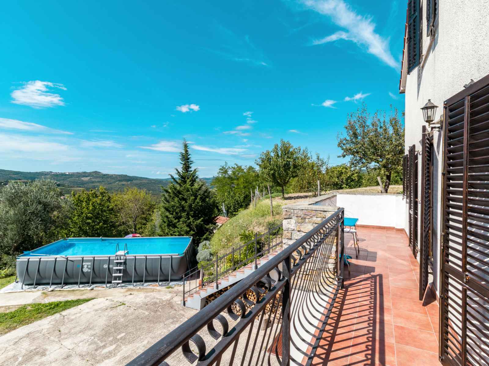 Maison individuelle "kušar", de 2 étages. À 900 m du centre de motovun, à 28 km du centre de novigrad, à 30 km du centre de poreč, à 28 km de la mer. en commun: terrain 600 m2, petit jardin avec pelouse. a usage privé: piscine (hors sol) (7 x 4 m, profondeur 130 cm, disponibilité saisonnière: 01.jun. - 30.sep.). entretien de la piscine