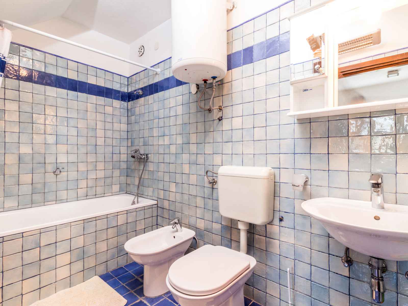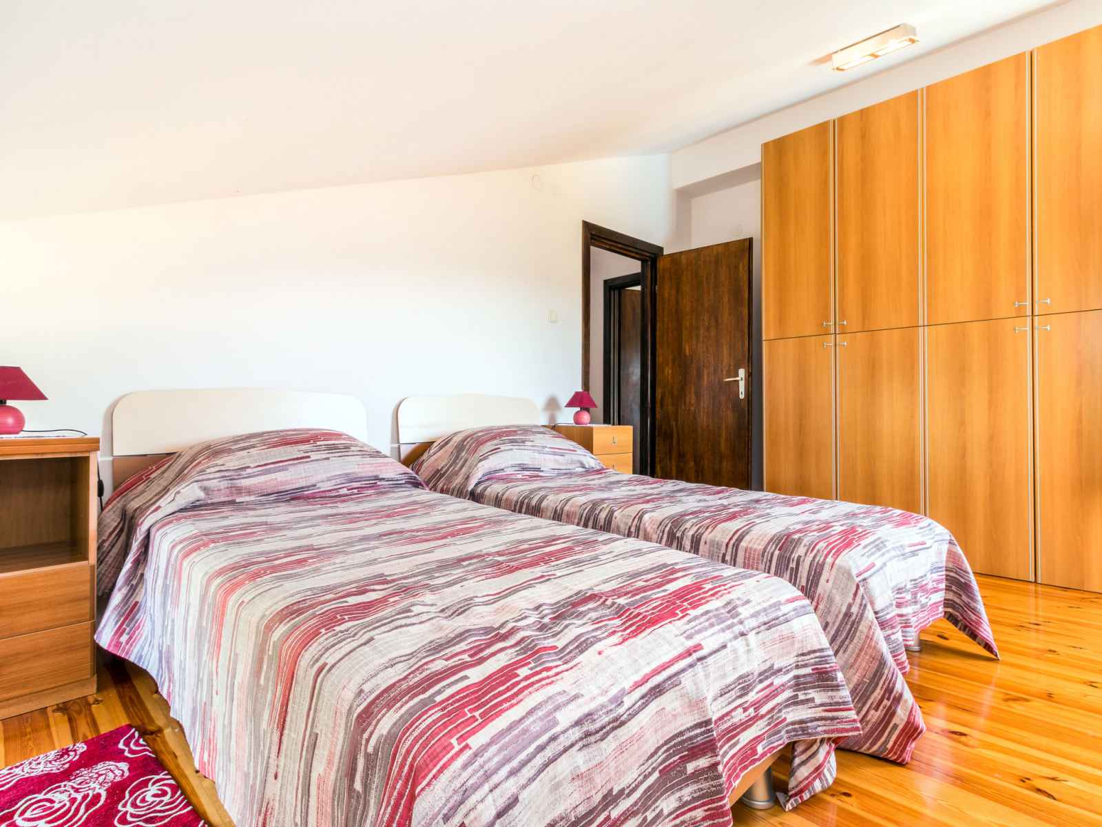 Maison 4 pièces 65 m2 sur 2 niveaux. séjour/salle à manger avec tv (satellite) et air-conditionné. sortie sur le balcon. cuisine ouverte (4 plaques de cuisson, four, lave-vaisselle, grille-pain, cafetière électrique). bain/bidet/wc. sous le toit: entrée avec air-conditionné. 1 chambre, mansardée avec 2 lits. 1 chambre, mansardée avec 1