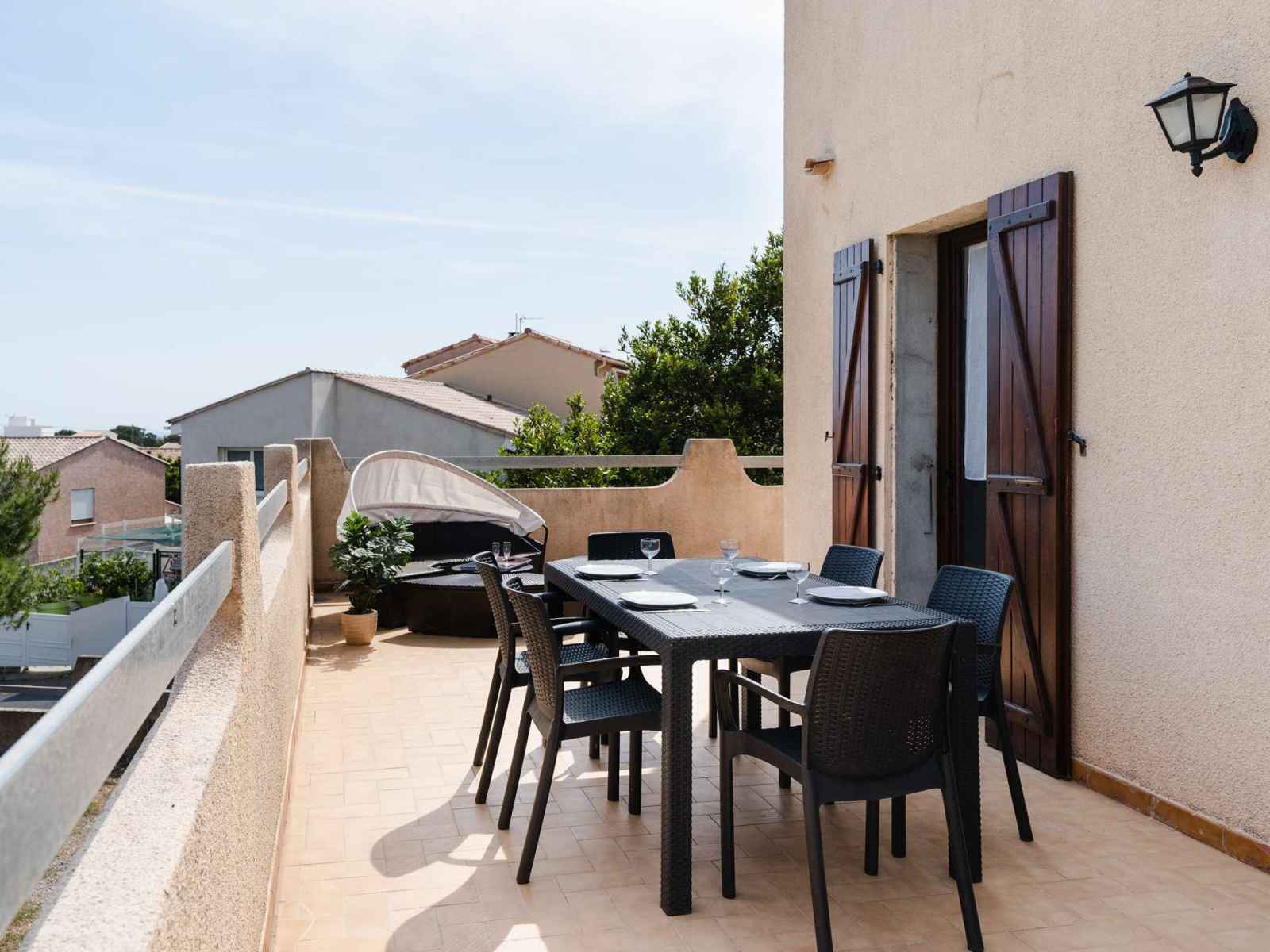 • Equipements : 3 Terrasses, 6 Chaises longues, Barbecue électrique, Détecteur de fumée, Lave linge, Lave Vaisselle, Salon de jardin, WIFI, 1 Chaise longue, Aspirateur, Bouilloire, Combiné Micro-ondes/Four, Congélateur, Fer à repasser, Grille-pain, Hachoir, Lisseur, Plaque de cuisson vitrocéramique, Réfrigérateur, Robot de coupe, Sèche-cheveux, Table à repasser , TV, Ventilateur