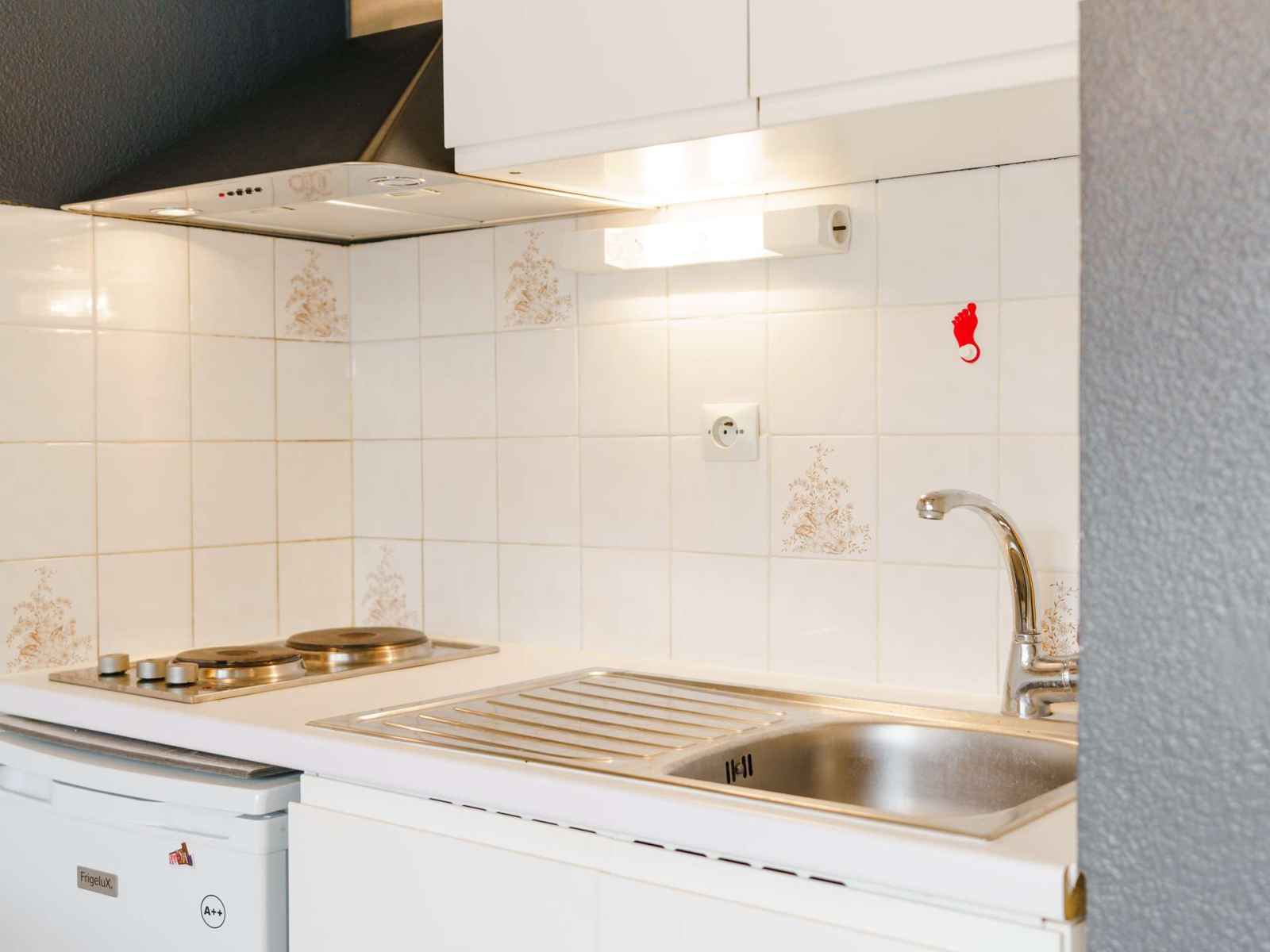 rez-de-chaussée: coin repas/cuisine (2 plaques électriques, hotte