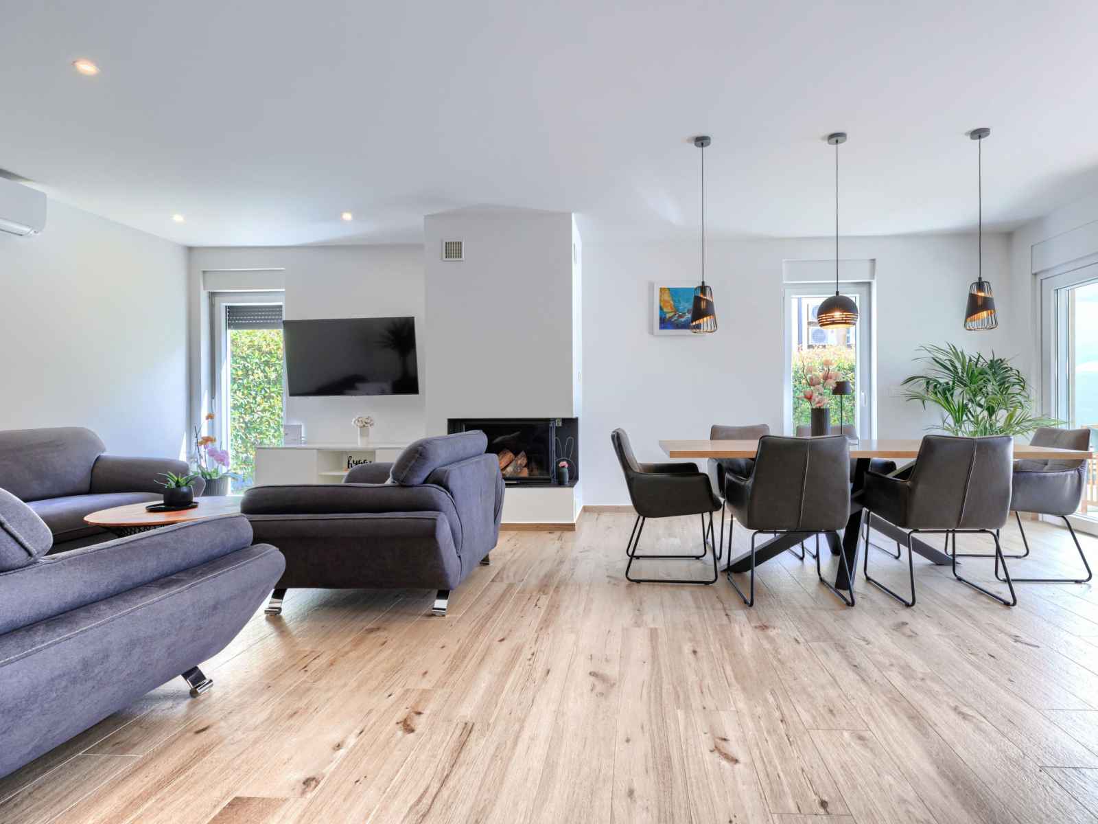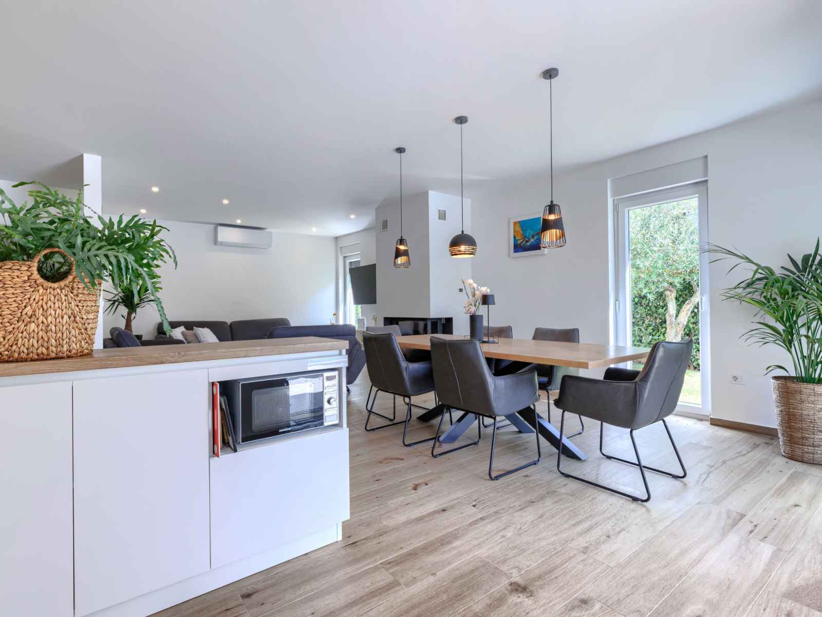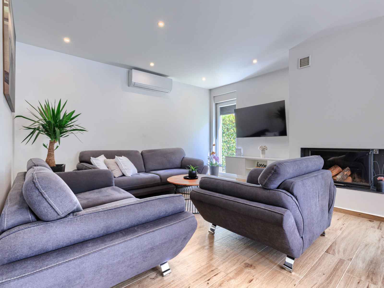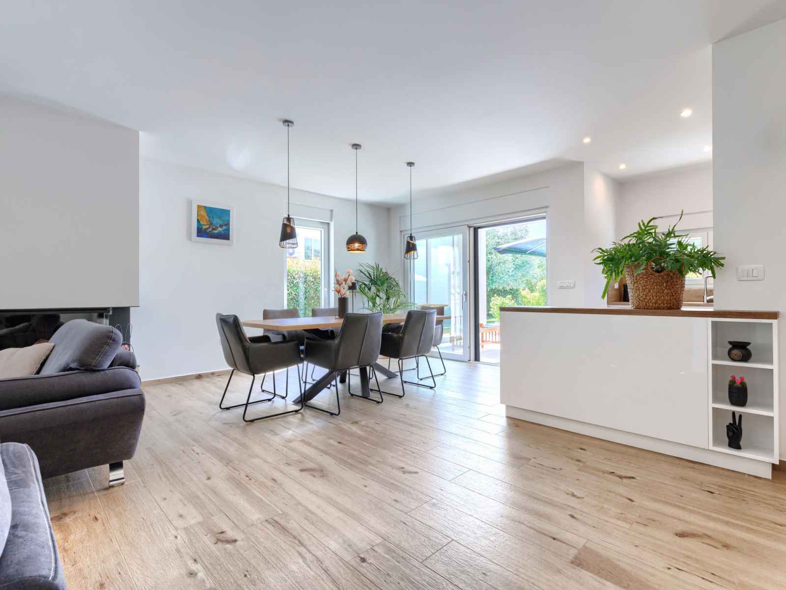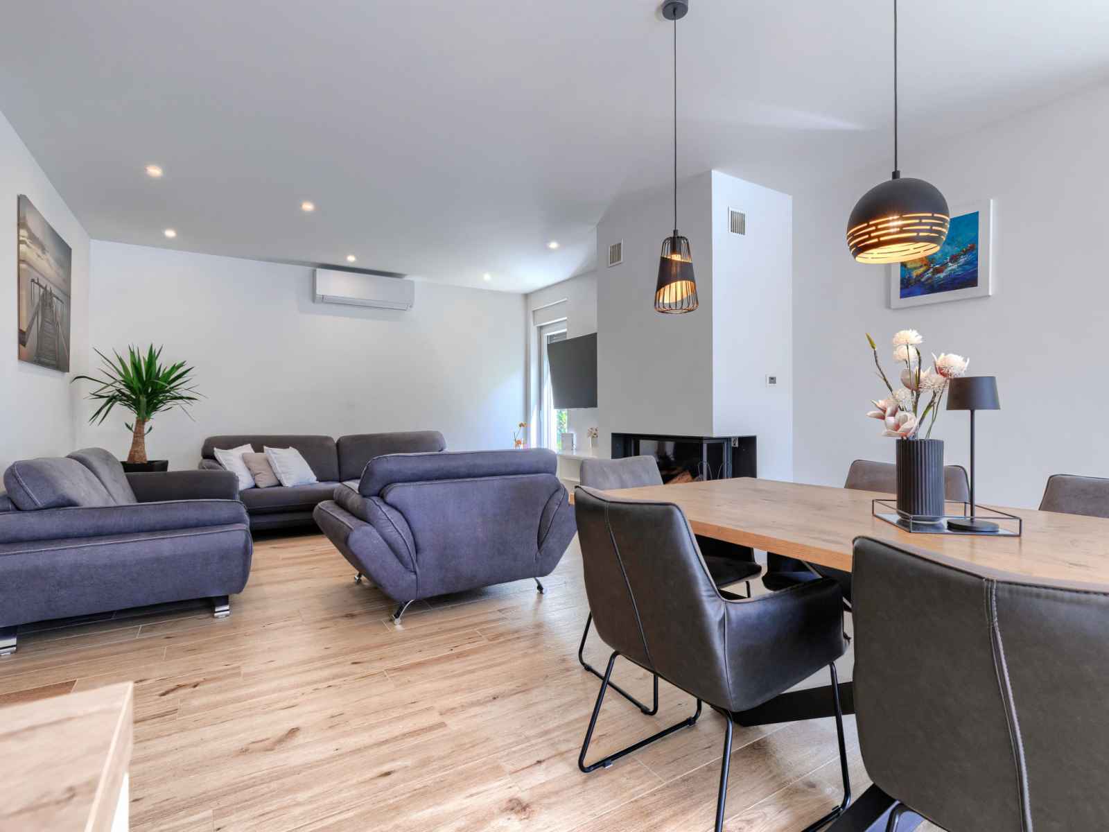 Maison jumelée 5 pièces 140 m2 sur 2 niveaux. séjour/salle à manger avec cheminée (uniquement à titre de décoration), tv (satellite) (écran plat), air-conditionné. sortie sur la terrasse, sur la piscine. 1 chambre avec 1 grand-lit (180 cm, longueur 200 cm), air-conditionné. cuisine ouverte (four, lave-vaisselle, 4 plaques à induction,