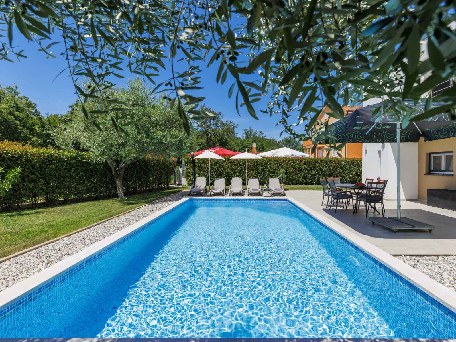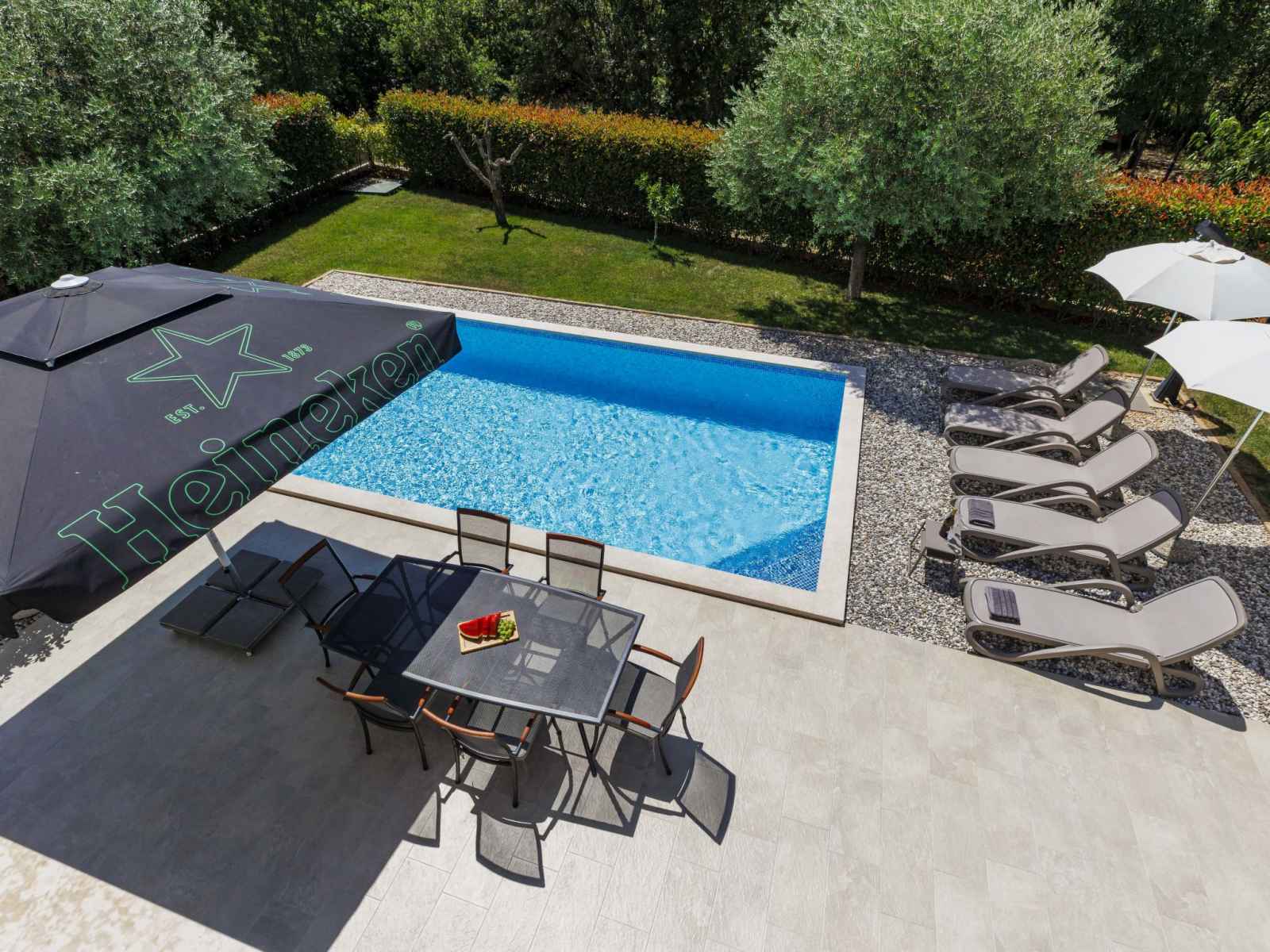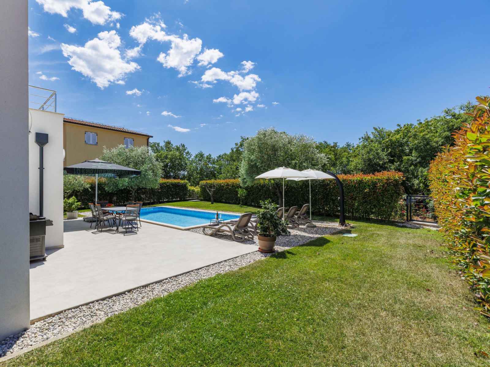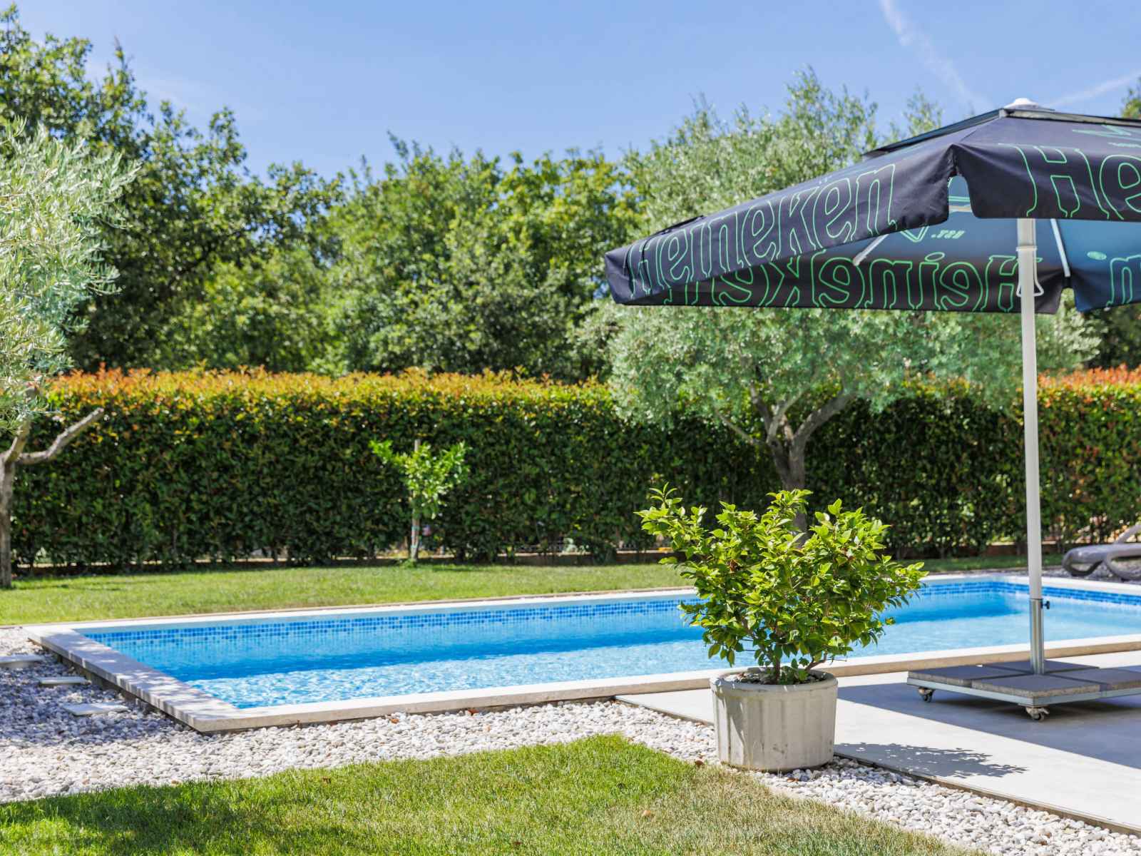 Maison jumelée "Čančar", de 2 étages. dans le hameau de fiorini, à 8 km du centre de novigrad, situation ensoleillée, à 2 km de la mer, à 2 km de la plage, dans une impasse. a usage privé: terrain 400 m2 (clôturé), jardin avec pelouse et plantes, piscine rectangulaire (8 x 4 m, profondeur 145 cm, disponibilité saisonnière: 01.jun. -