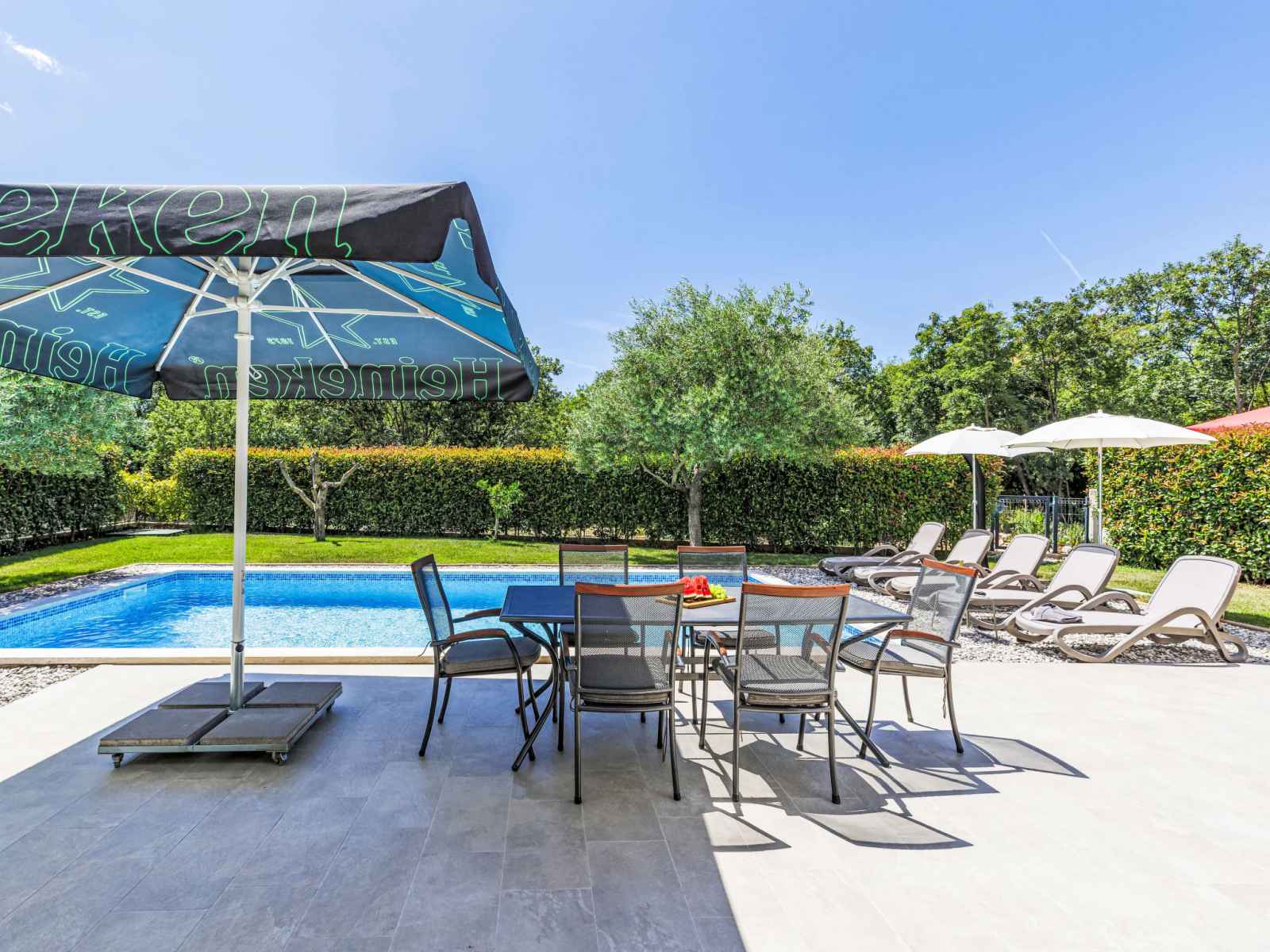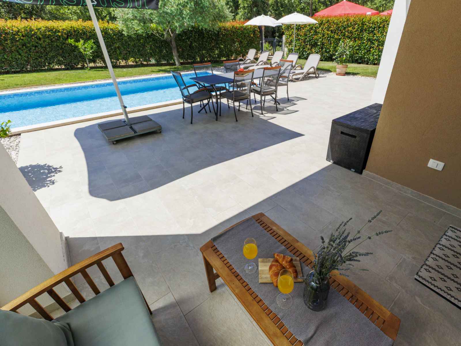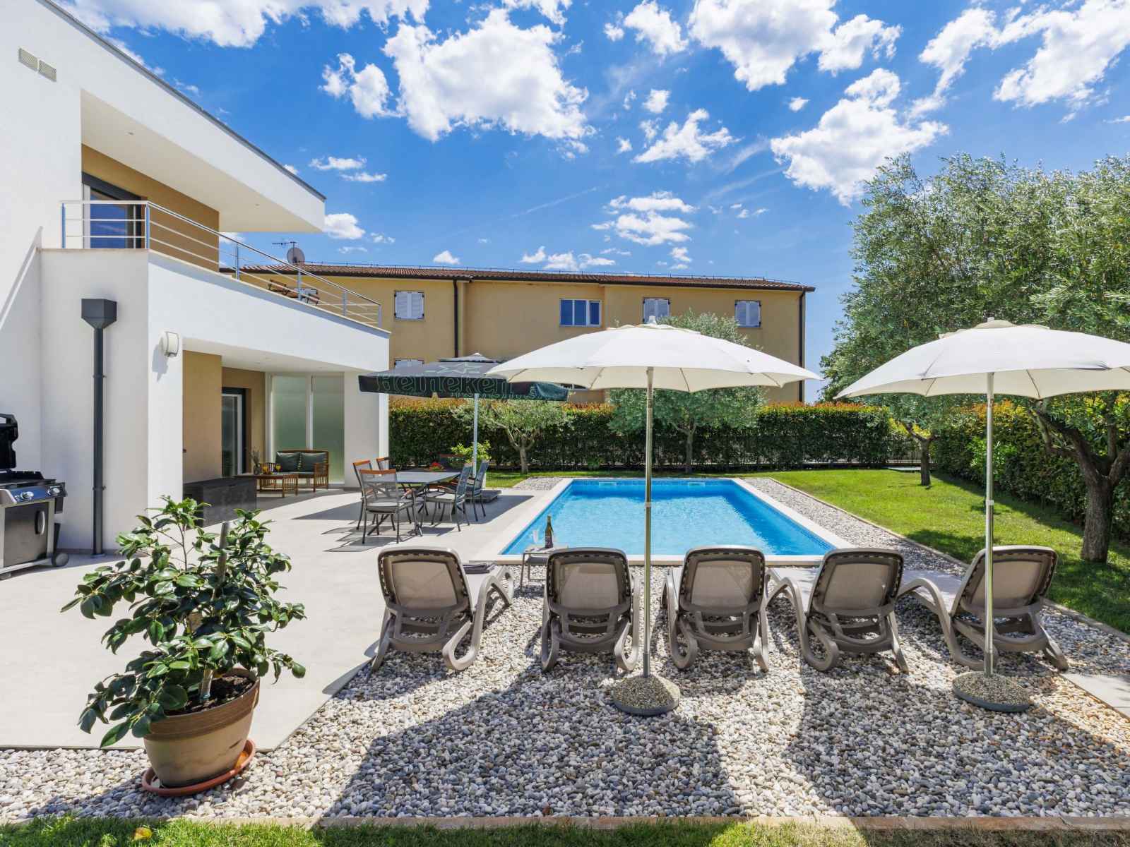 Maison jumelée "Čančar", de 2 étages. dans le hameau de fiorini, à 8 km du centre de novigrad, situation ensoleillée, à 2 km de la mer, à 2 km de la plage, dans une impasse. a usage privé: terrain 400 m2 (clôturé), jardin avec pelouse et plantes, piscine rectangulaire (8 x 4 m, profondeur 145 cm, disponibilité saisonnière: 01.jun. -