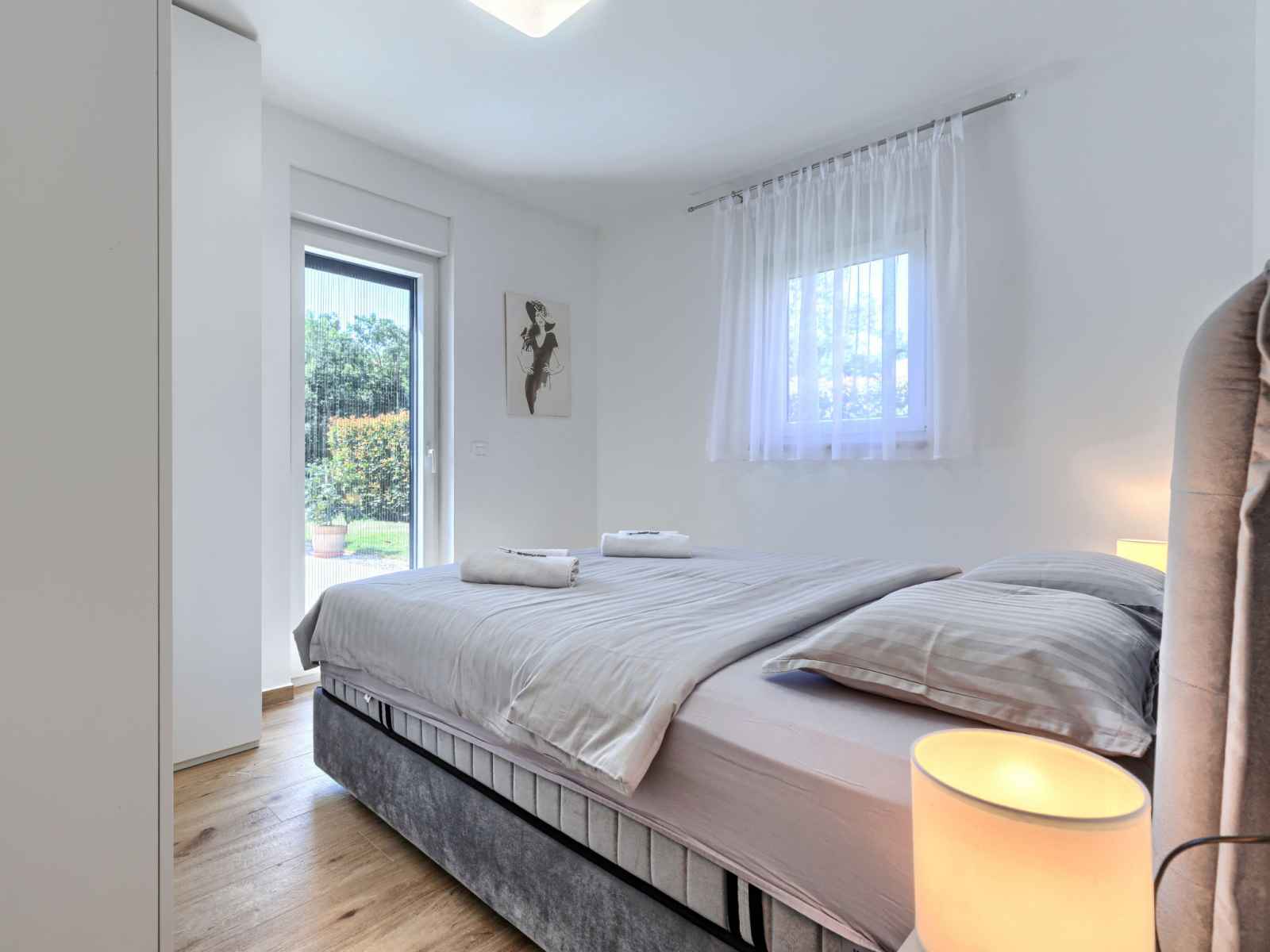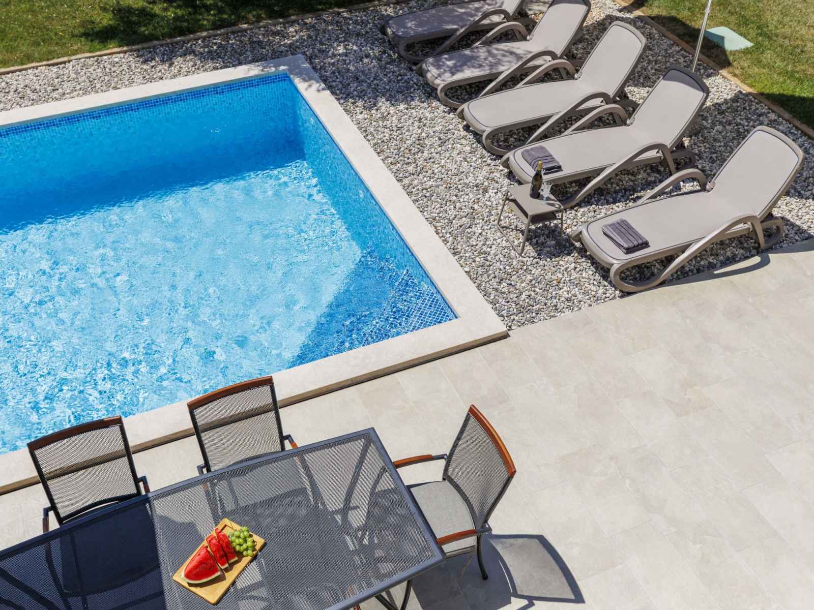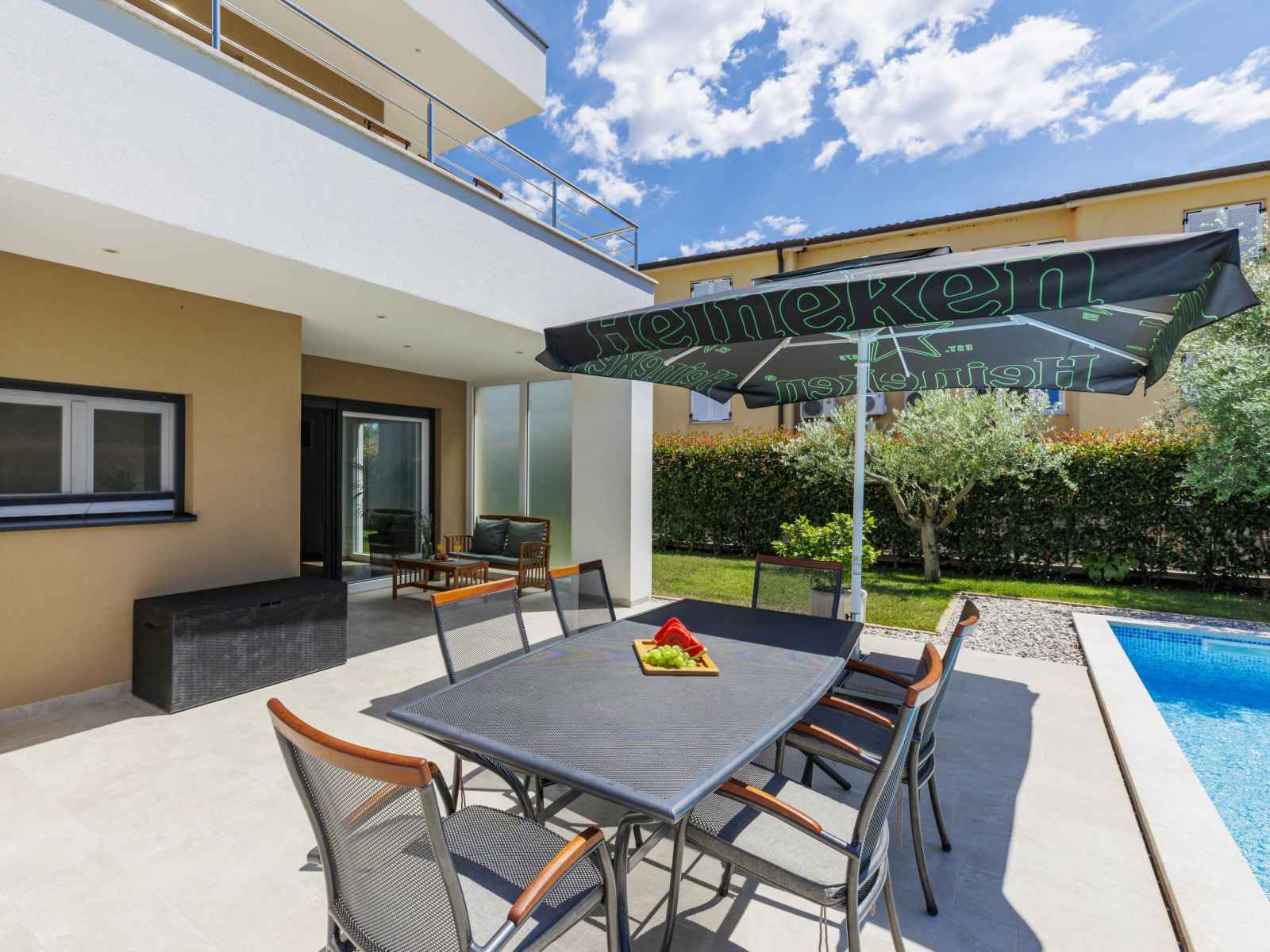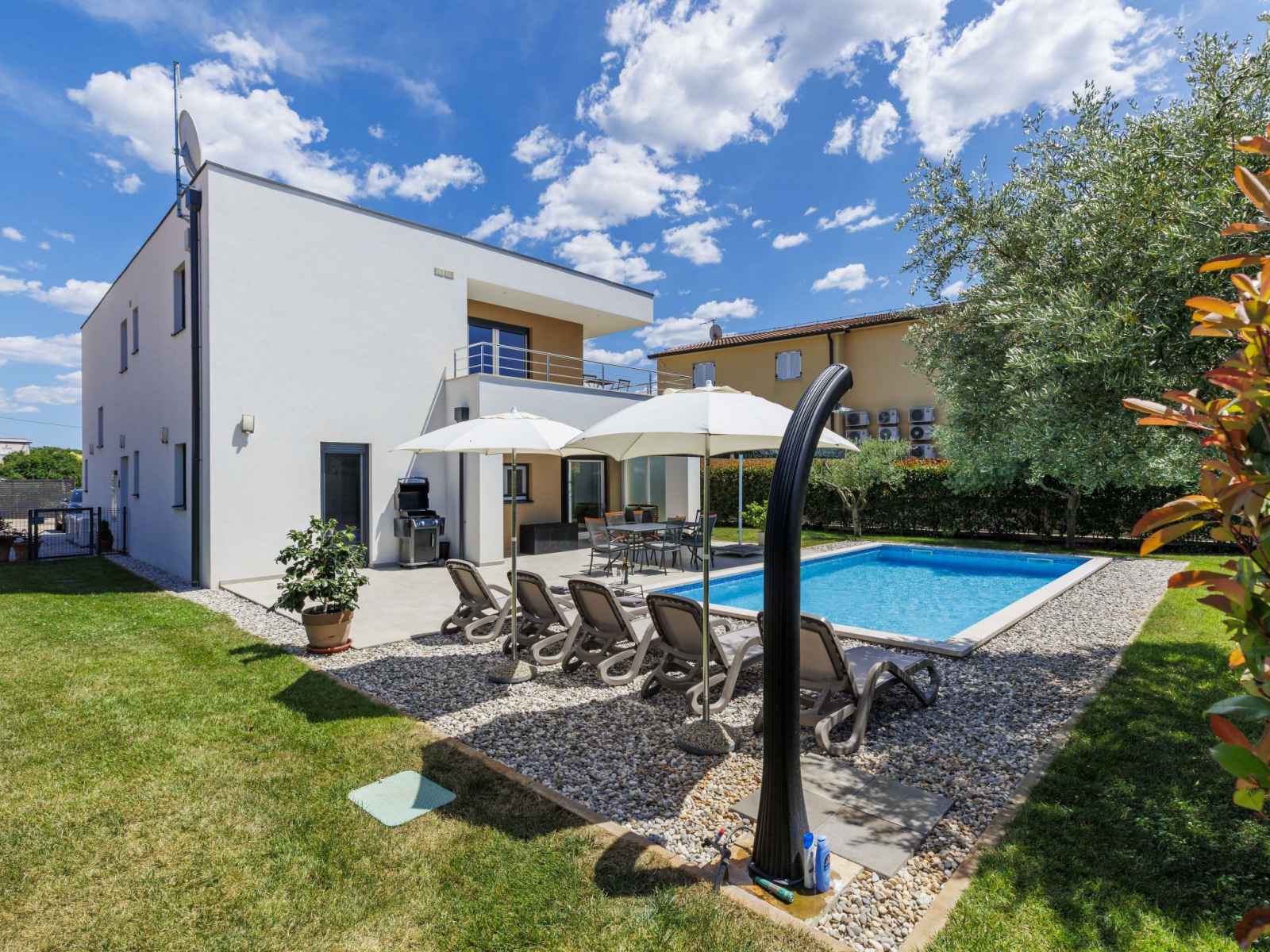 Maison jumelée "Čančar", de 2 étages. dans le hameau de fiorini, à 8 km du centre de novigrad, situation ensoleillée, à 2 km de la mer, à 2 km de la plage, dans une impasse. a usage privé: terrain 400 m2 (clôturé), jardin avec pelouse et plantes, piscine rectangulaire (8 x 4 m, profondeur 145 cm, disponibilité saisonnière: 01.jun. -