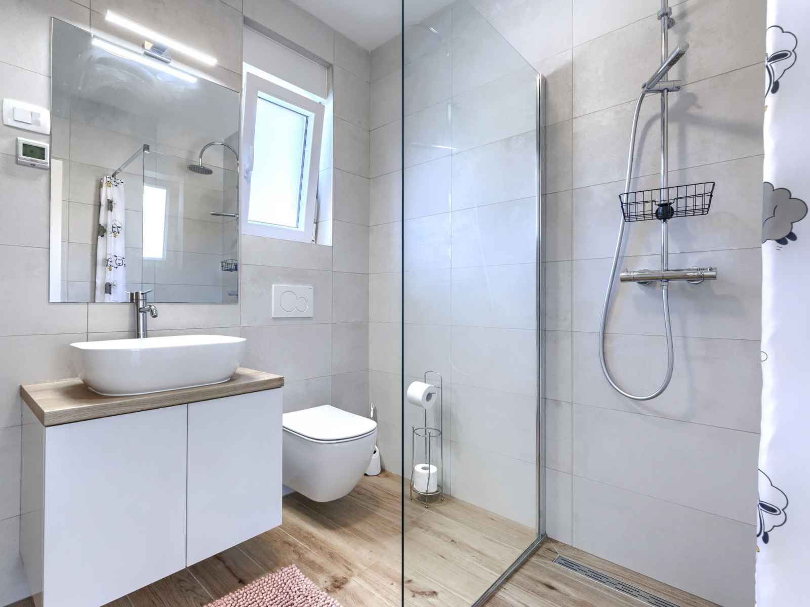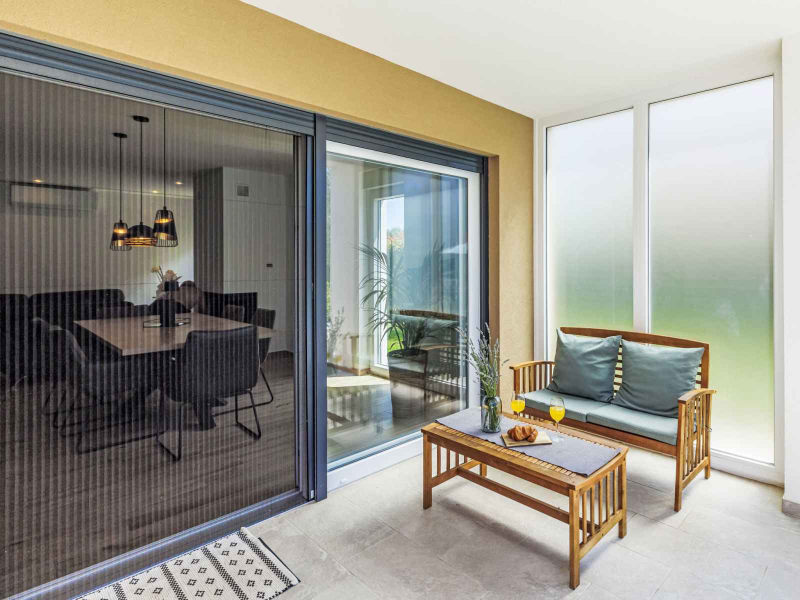 grille-pain, bouilloire électrique, micro-ondes, congélateur, cafetière électrique). Douche/bidet/WC. À l'étage supérieur: séjour/salle à manger avec TV (satellite) (écran plat), air-conditionné. Sortie sur la terrasse. 1 chambre avec 1 grand-lit (180 cm, longueur 200 cm), air-conditionné. 1 chambre avec 1 lit (160 cm, longueur 200 cm), air-conditionné. Cuisine ouverte (four, lave-vaisselle, 4 plaques à induction, grille-pain, micro-ondes, congélateur, cafetière électrique). Douche/WC. Pas de chauffage. Terrasse 15 m2 partiellement couverte, terrasse 15 m2. Meubles de terrasse, barbecue (portable), chaises longues. Vue sur la piscine. A disposition: chaise haute pour enfant, lit bébé. Internet (Connexion WIFI, gratuit).
