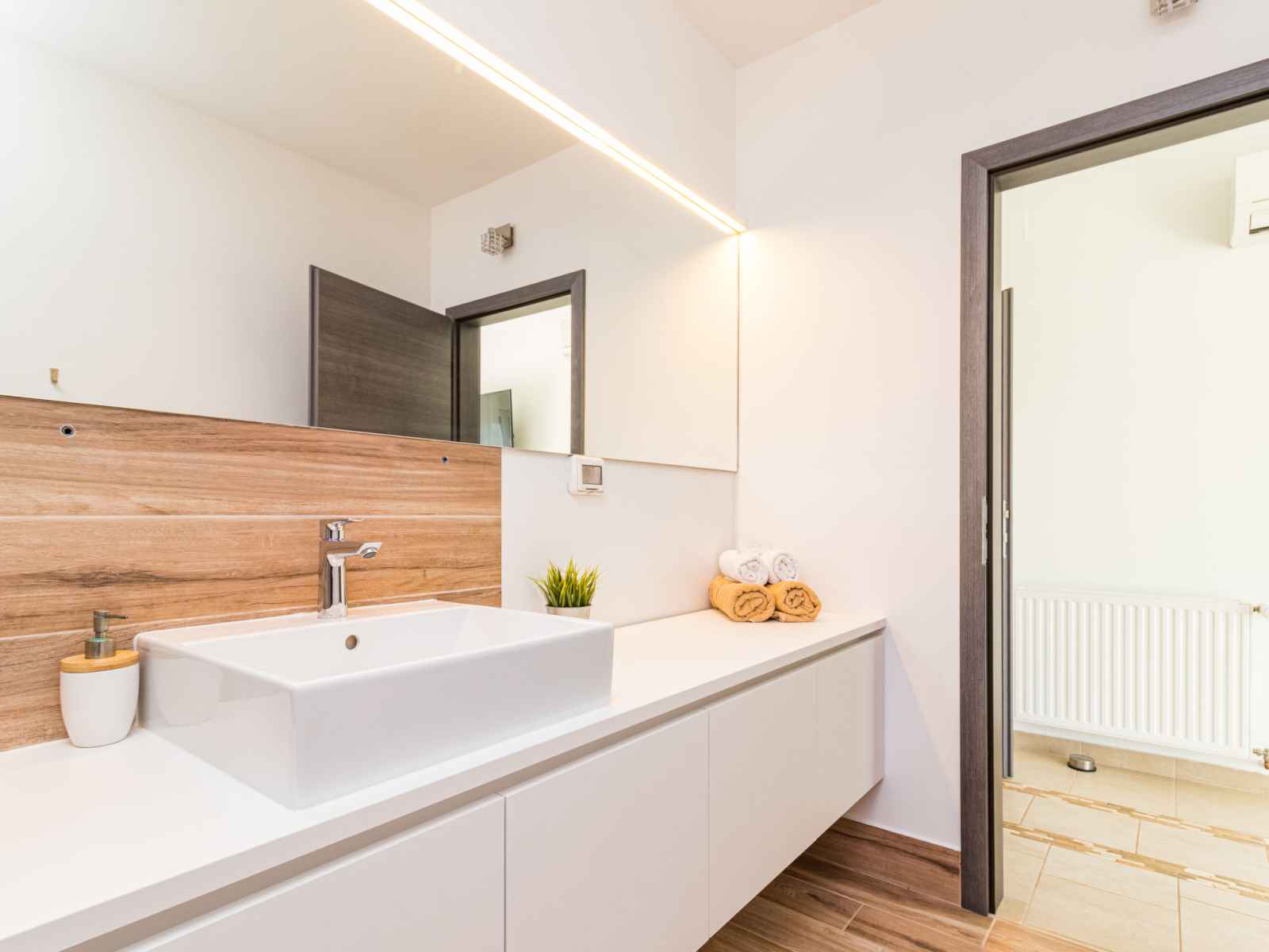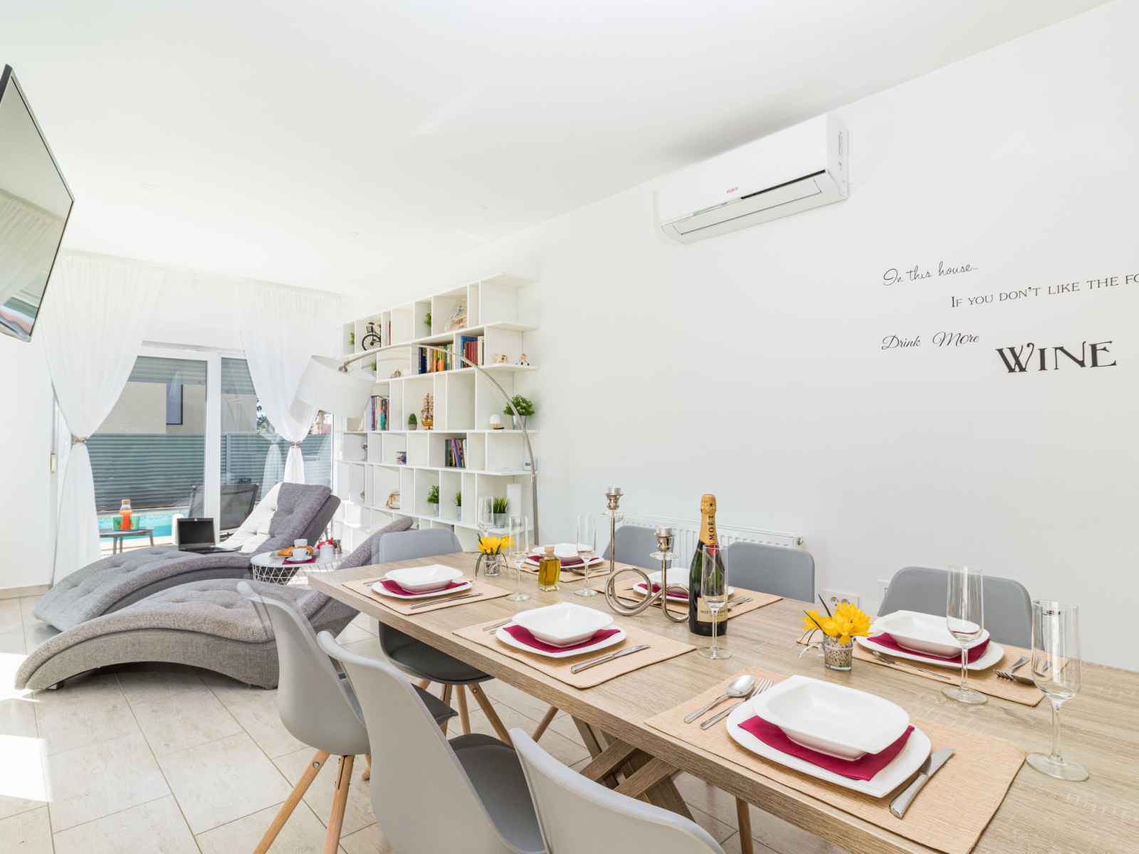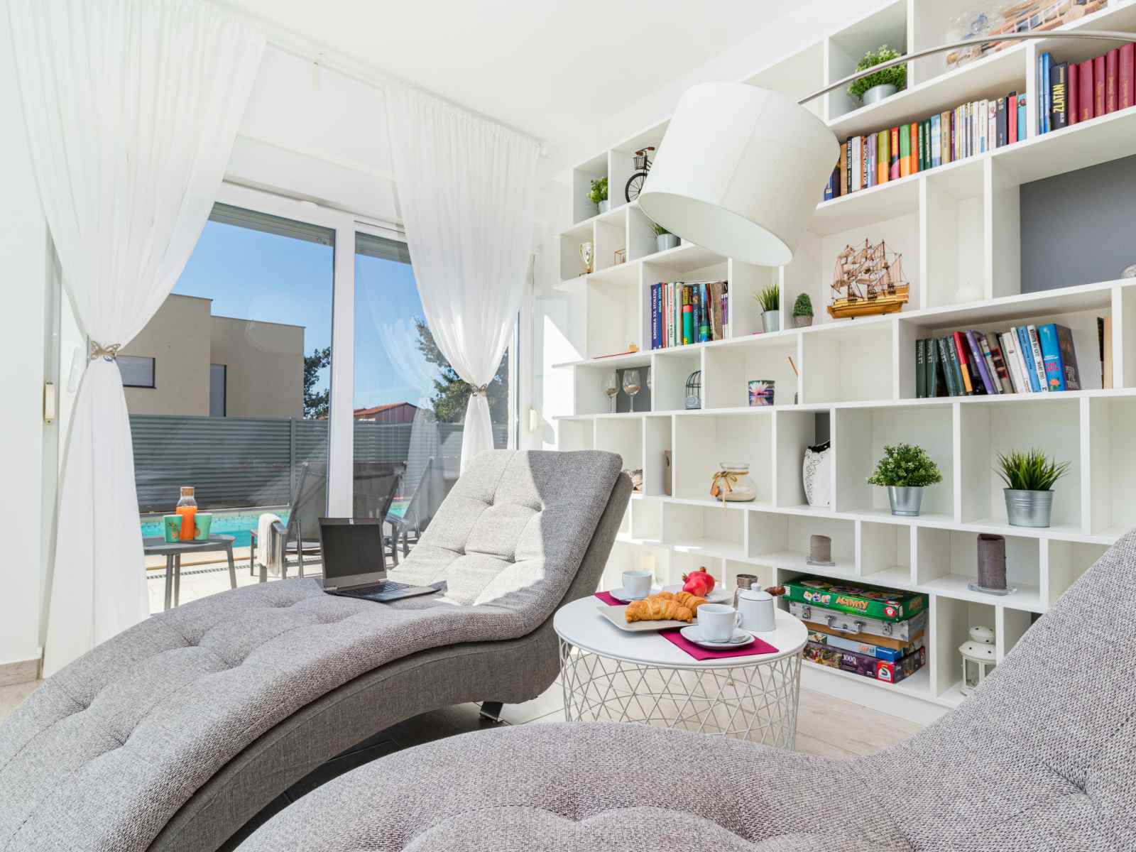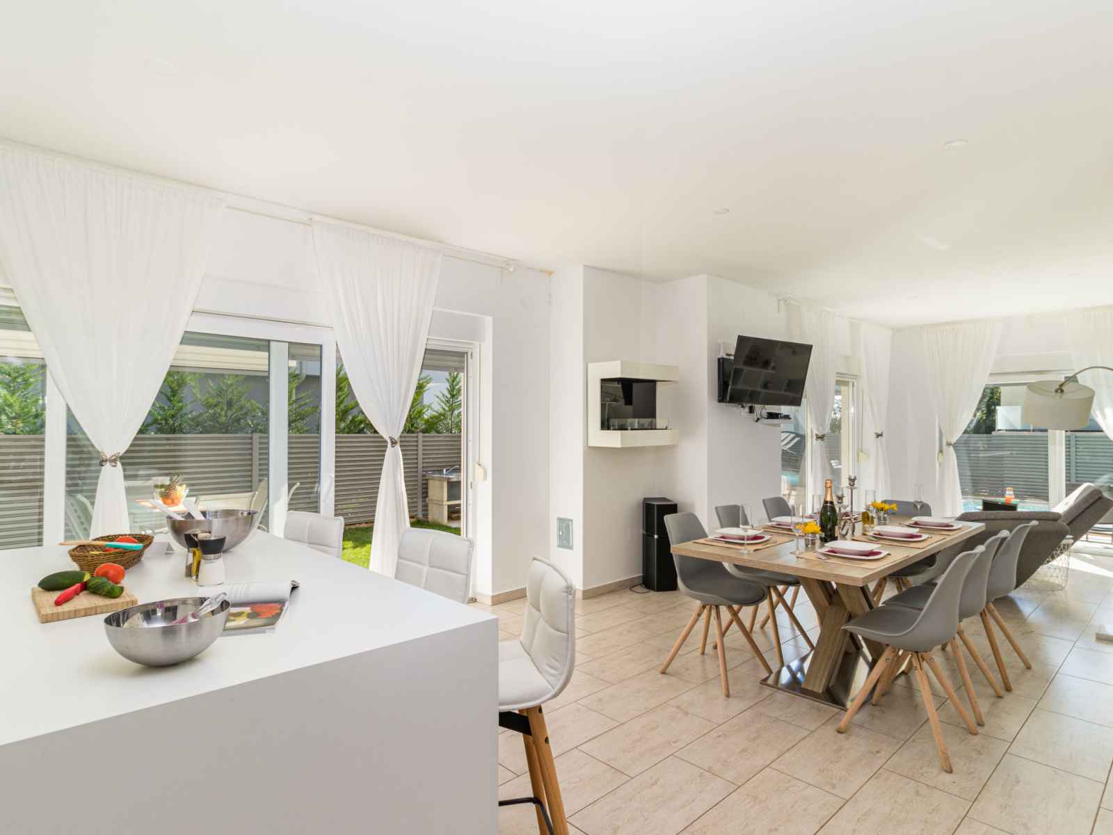 Maison individuelle moderne "villa virtus", de 2 étages, année de construction 2016. À 4 km du centre de novigrad, à 8 km du centre d'umag, à 24 km du centre de poreč, dans un quartier résidentiel, à, de la mer, à 200 m de la plage. a usage privé: terrain 500 m2 (clôturé), piscine rectangulaire, chauffée (8 x 4 m, profondeur 145 cm,
