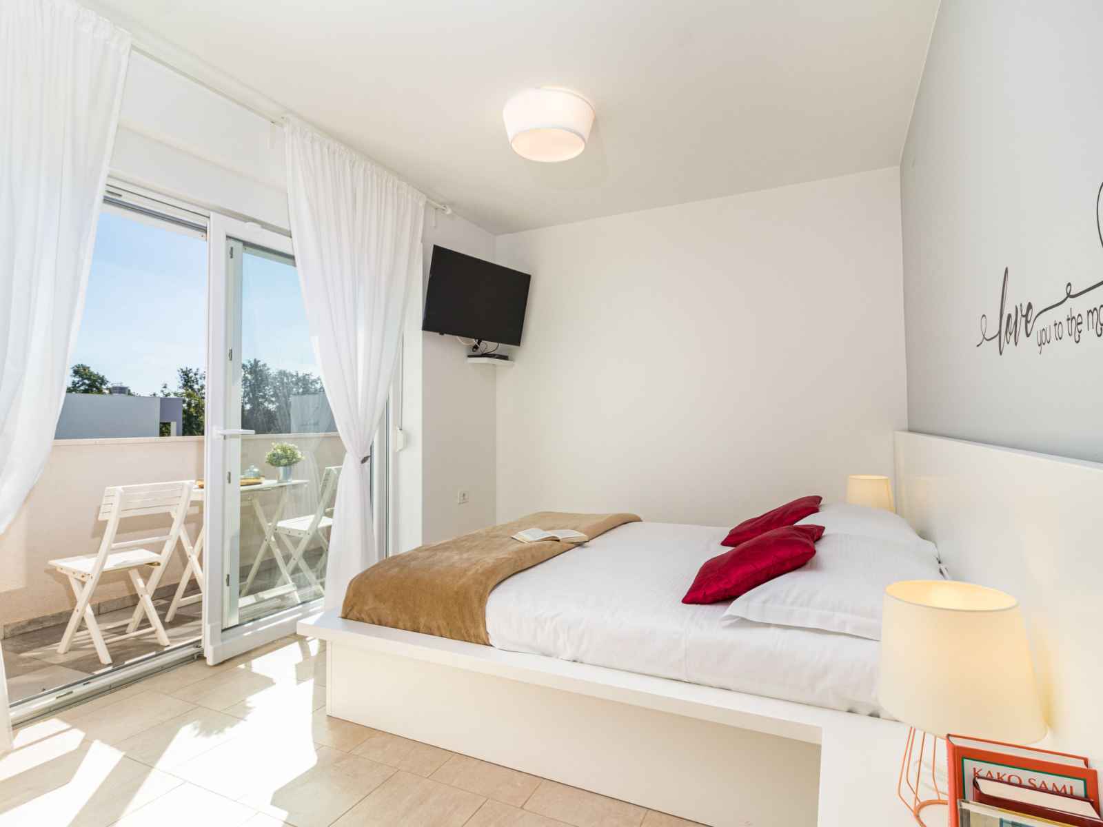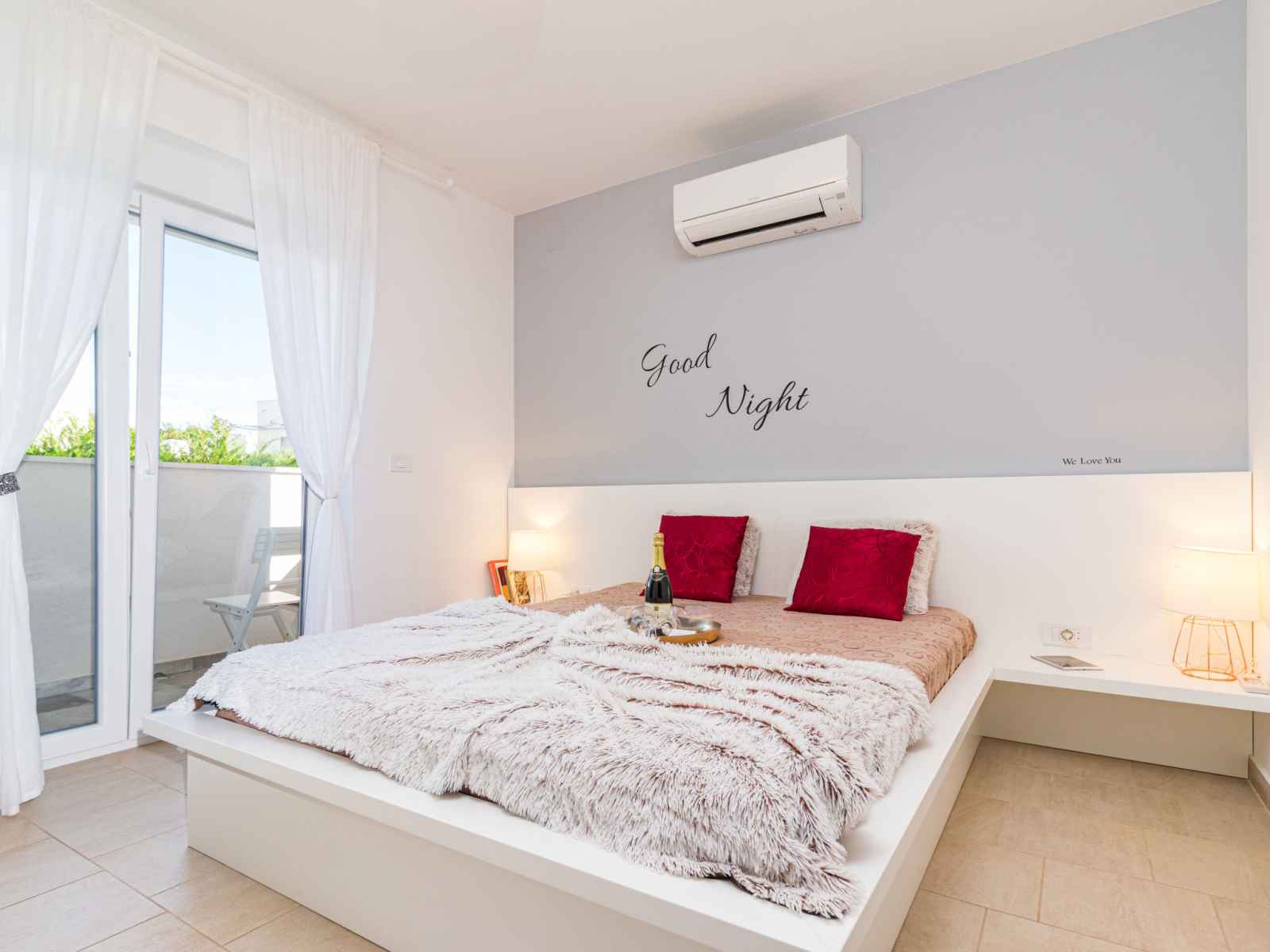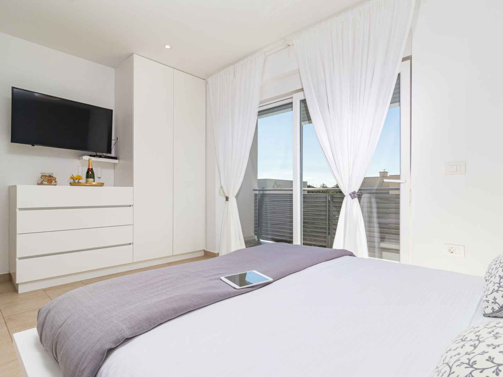 avec: 1 grand-lit (160 cm, longueur 200 cm), douche/WC et TV (satellite) (écran plat), air-conditionné. Sortie sur le balcon. 1 chambre avec 1 grand-lit (160 cm, longueur 200 cm), douche/WC et air-conditionné. Sortie sur le balcon. Chauffage. Terrasse 16 m2 partiellement couverte. Meubles de terrasse, chaises longues (6). Vue sur la mer. A disposition: fer à repasser. Internet (Connexion WIFI, gratuit). Veuillez noter: maison non-fumeur. Maximum 1 animal/ chien autorisé.