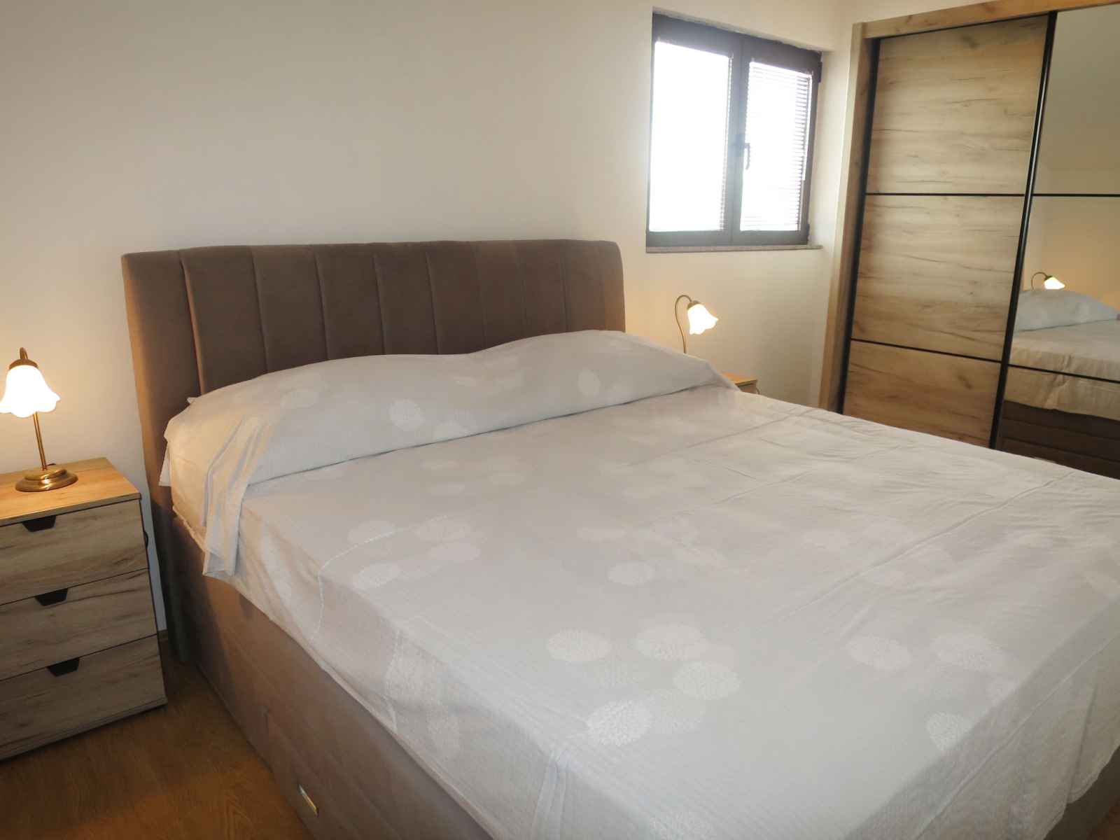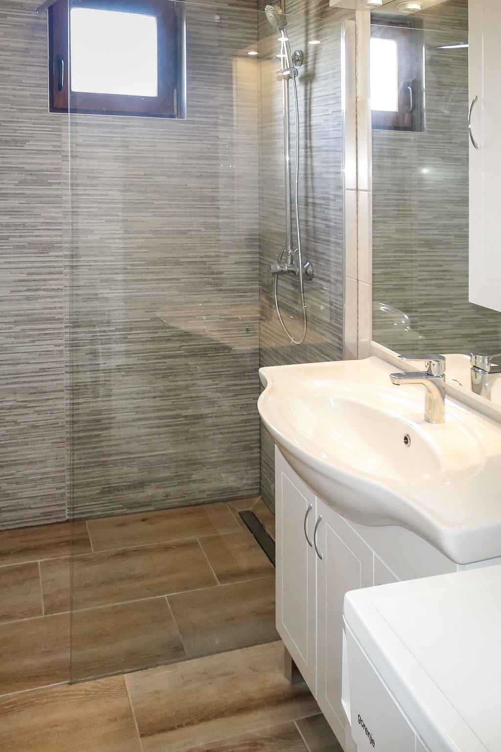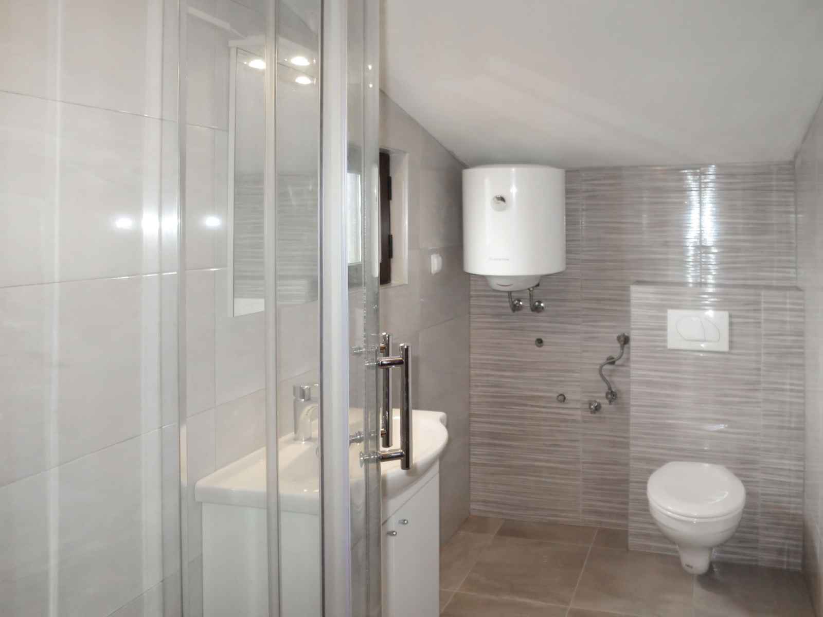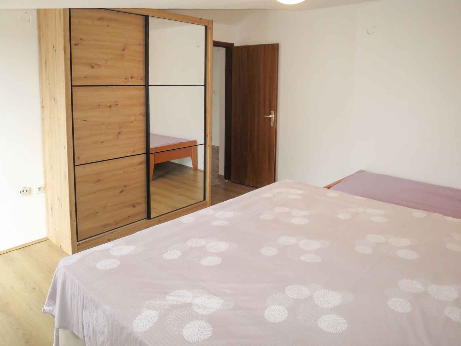 entrée avec air-conditionné. 1 chambre, mansardée hauteur plafond 175 - 280 cm avec 1 grand-lit (180 cm, longueur 200 cm). 1 chambre, mansardée hauteur plafond 175 - 260 cm avec 1 lit (90 cm, longueur 200 cm), 1 lit double (2 x 90 cm, longueur 200 cm). Douche/WC. Pas de chauffage. Balcon 15 m2, terrasse 15 m2, couverte. Meubles de terrasse, barbecue, chaises longues (6). A disposition: Internet (Connexion WIFI, gratuit). Maximum 1 animal/ chien autorisé.