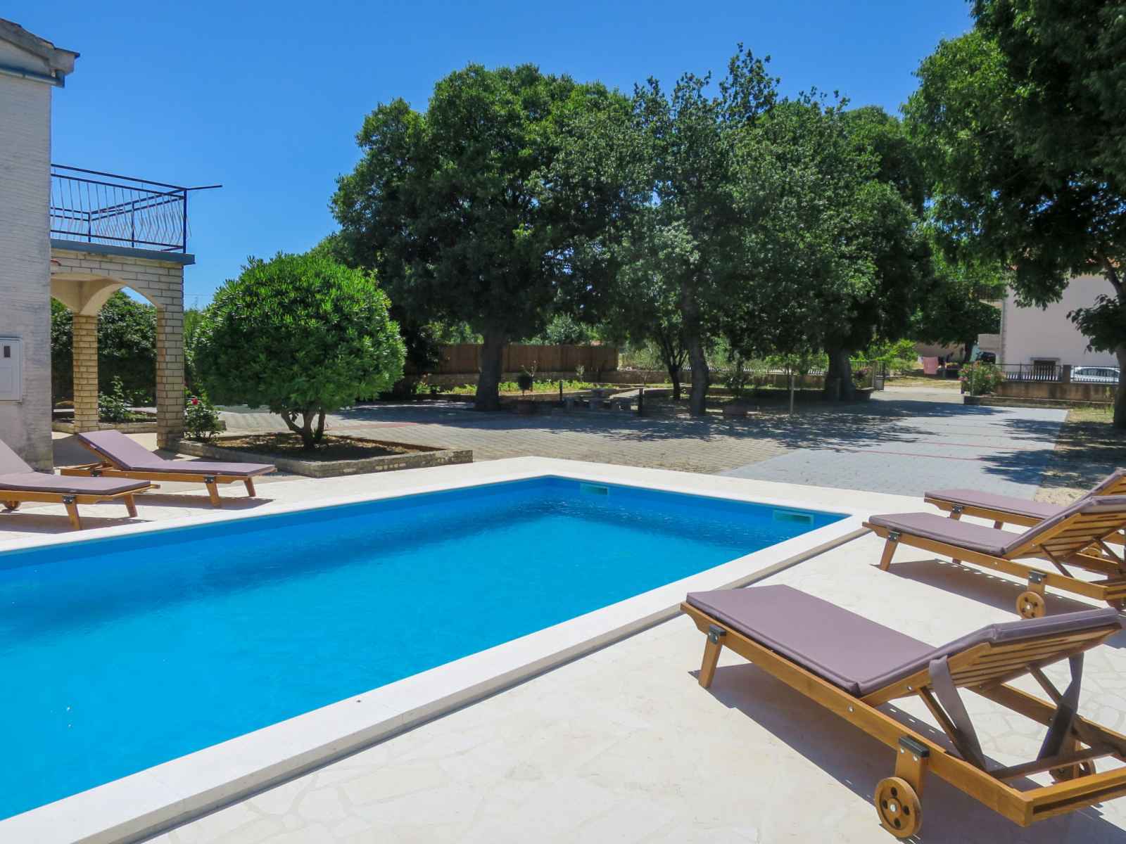 Pridraga à 5 km de novigrad: maison individuelle "Čulina", de 2 étages. À 1.1 km du centre de pridraga, situation ensoleillée, à 1.9 km de la mer, à 1.9 km de la plage. a usage privé: terrain 3'000 m2 (clôturé), plantes et arbres, piscine rectangulaire, chauffée (8 x 4 m, profondeur 150 cm, disponibilité saisonnière: 01.avr. -