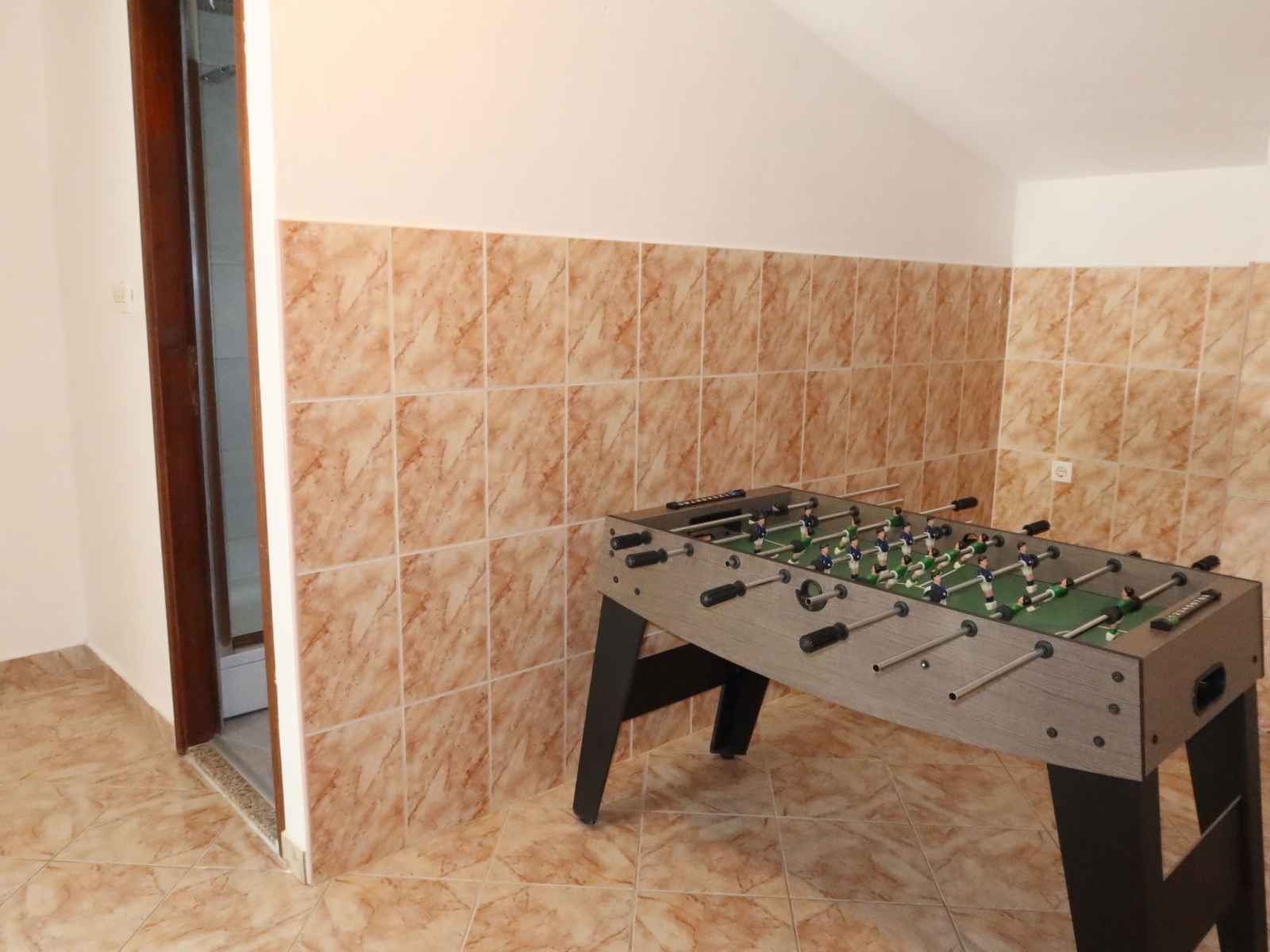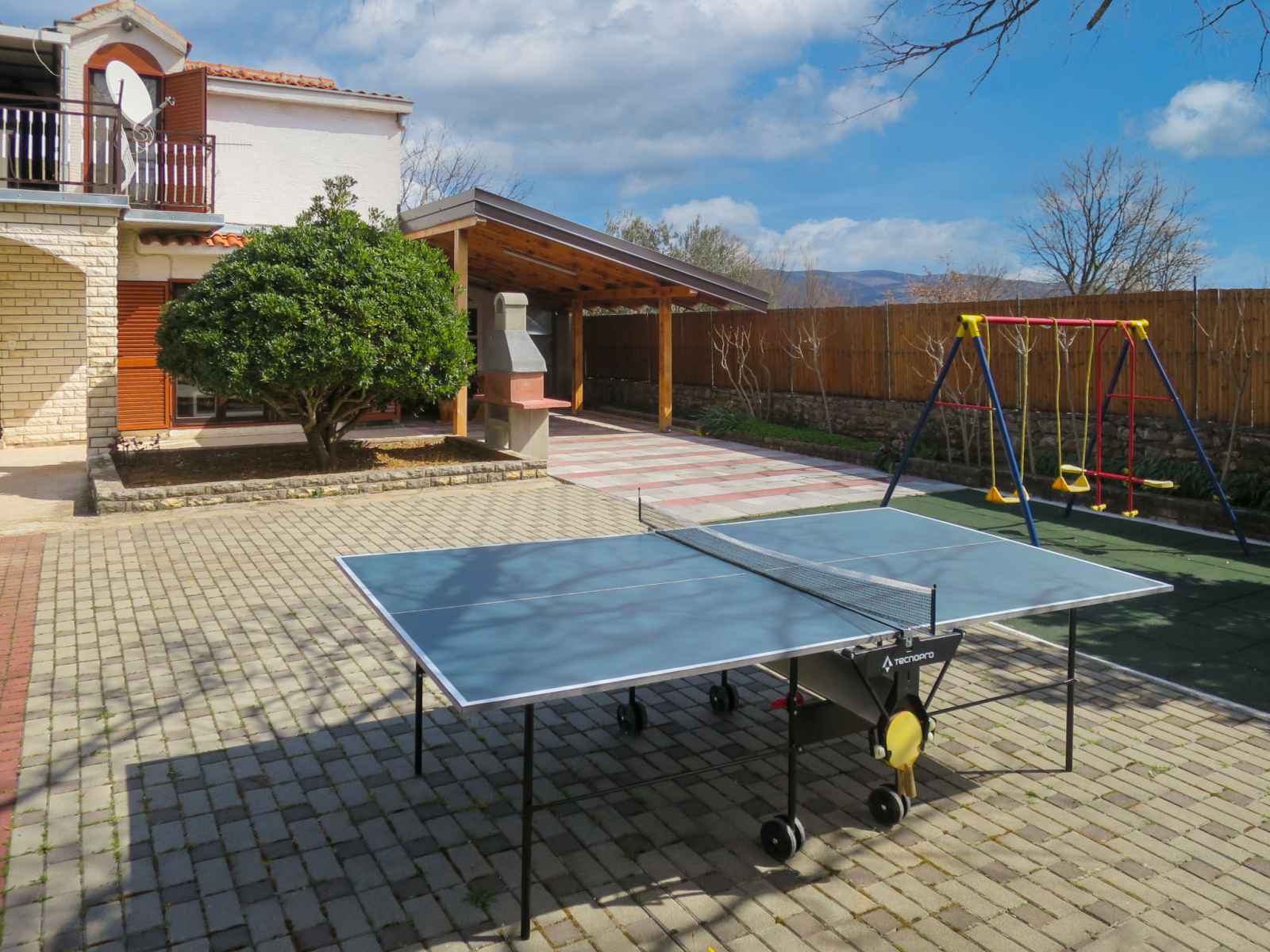 01.nov.) avec marches intérieures. douche extérieure, ping-pong, barbecue (balançoire), entretien de la piscine par le propriétaire/jardinier. infrastructures de la maison: accès internet, billard, baby foot, lave-linge. place de parking (pour 5 voitures) près de la maison sur le terrain. magasins 500 m, arrêt de bus 15.4 km, plage de graviers 1.9 km. veuillez noter: aéroport 38 km de la maison.