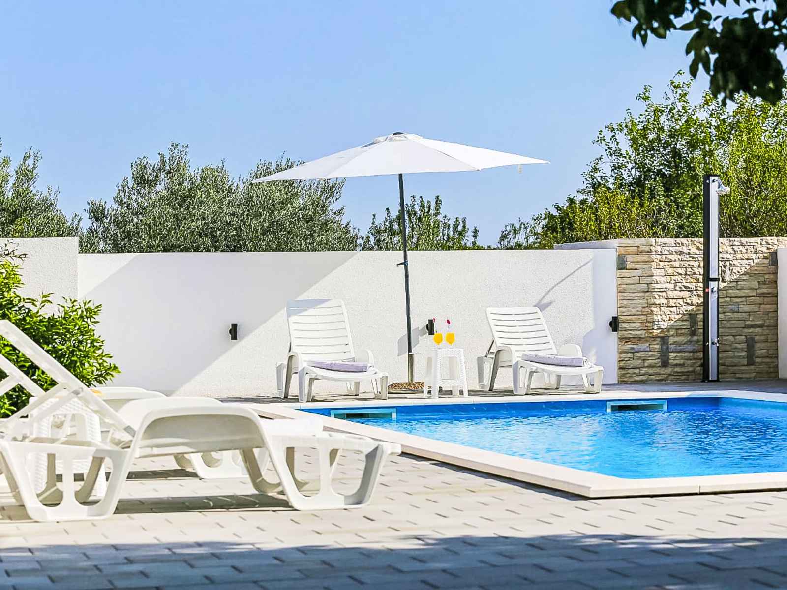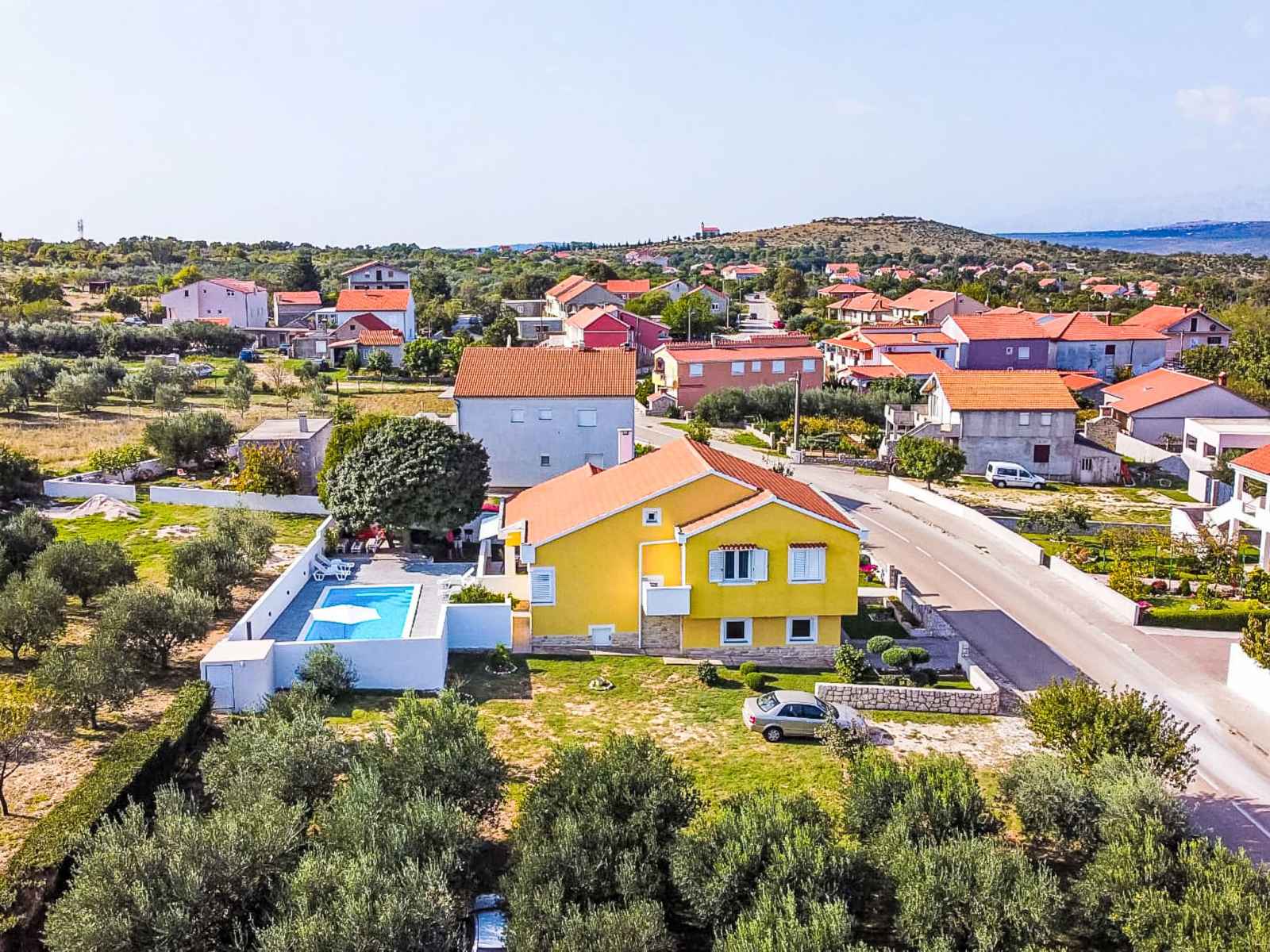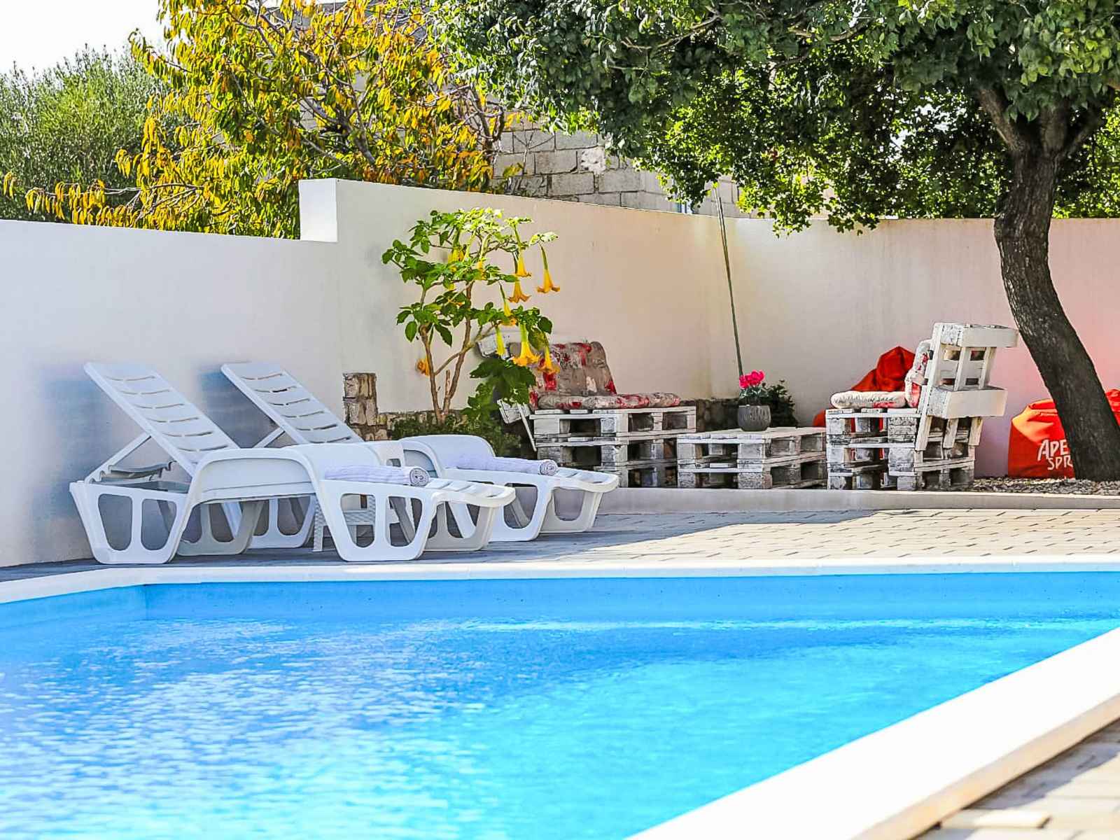 Maison individuelle "karlo". À 7 km du centre de posedarje, situation tranquille, ensoleillée, à 2 km de la mer, à 2.2 km de la plage. a usage privé: terrain 1'200 m2, piscine (8 x 4 m, profondeur 150 cm, disponibilité saisonnière: 01.mai. - 01.oct.). douche extérieure, ping-pong, meubles de jardin, barbecue. infrastructures de la maison: