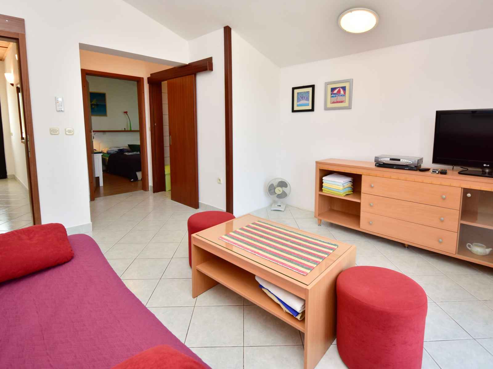 séjour avec 1 divan-lit, TV (satellite) et air-conditionné. Sortie sur le balcon. 1 chambre avec 1 lit (90 cm, longueur 200 cm), 1 grand-lit (160 cm, longueur 200 cm). 1 chambre avec 1 grand-lit (160 cm, longueur 200 cm). Cuisine ouverte (2 plaques de cuisson) avec table pour les repas, air-conditionné. Sortie sur le balcon. 2 douches/WC. Air-conditionné (en sus). Pas de chauffage. Balcon 8 m2, grande terrasse 35 m2, terrasse 16 m2. Meubles de terrasse. Très belle vue panoramique sur la mer et les alentours. A disposition: lave-linge. Internet (Connexion WIFI, gratuit). Maximum 2 animaux/ chiens autorisés. 2198-18-01/4-23-4
