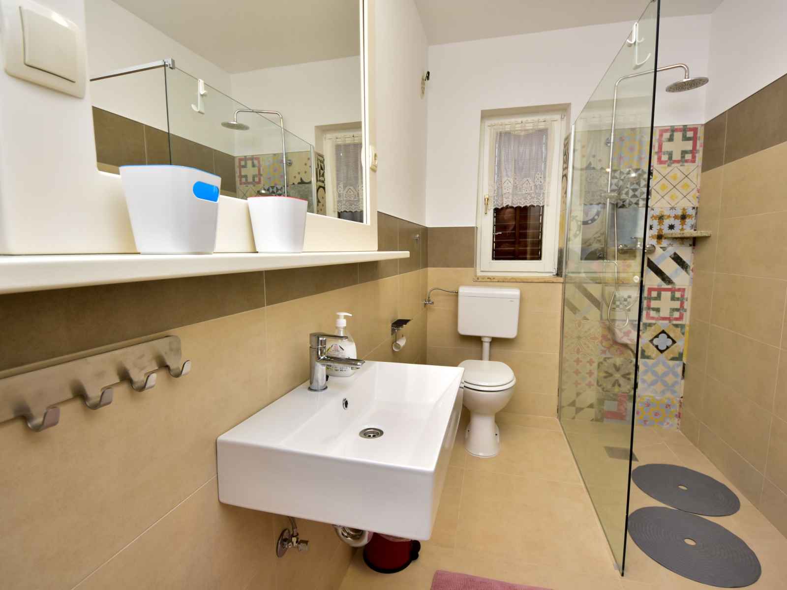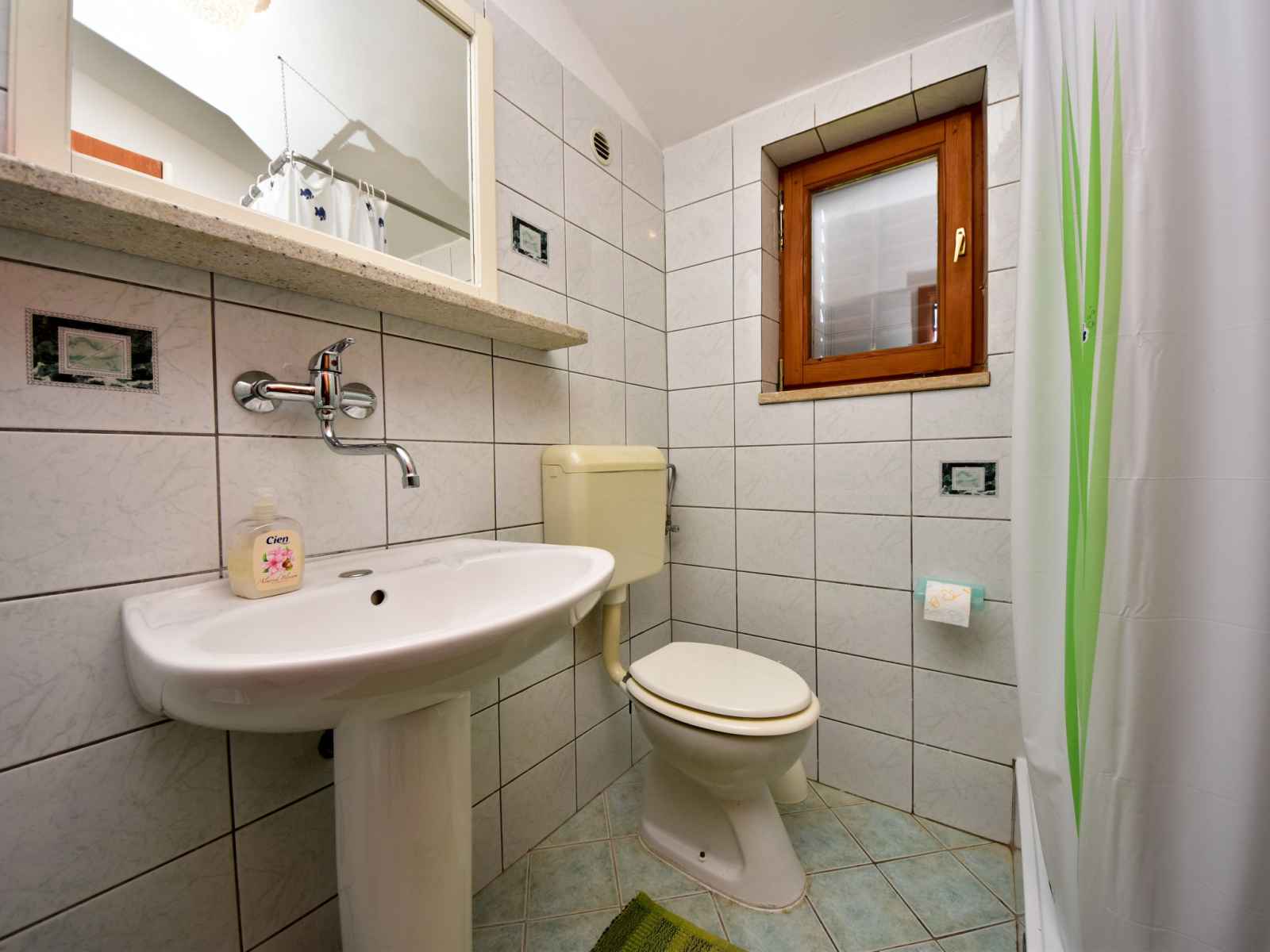 Ribnica à 15 km de novigrad: maison à 2 apts "kate", de 2 étages. À 8 km du centre d'obrovac, situation tranquille, ensoleillée, surélevée, à 250 m de la mer, à 250 m de la plage, dans la verdure. a usage privé: terrain 600 m2 (clôturé) avec pelouse 150 m2, verger. douche extérieure, meubles de jardin, barbecue, espace de jeux pour