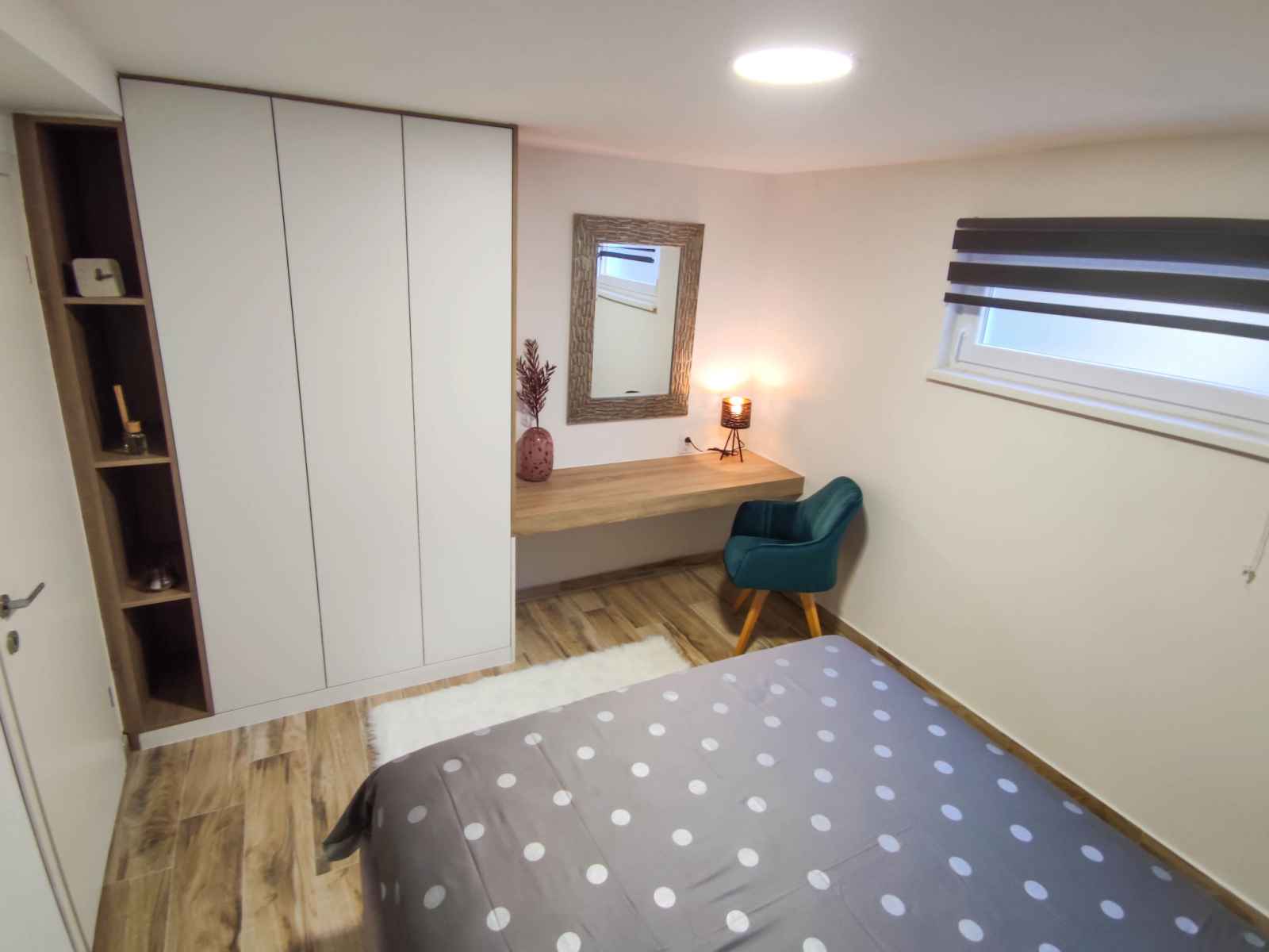 Maison 5 pièces 75 m2 sur 2 niveaux. séjour avec 1 divan-lit (140 cm, longueur 200 cm), tv (écran plat). 1 chambre avec 1 grand-lit (160 cm, longueur 200 cm). douche/wc. À l'étage supérieur: (escalier extérieur) séjour/salle à manger 24 m2 avec 1 divan-lit (140 cm, longueur 200 cm), tv (satellite), dvd et air-conditionné. 1 chambre avec