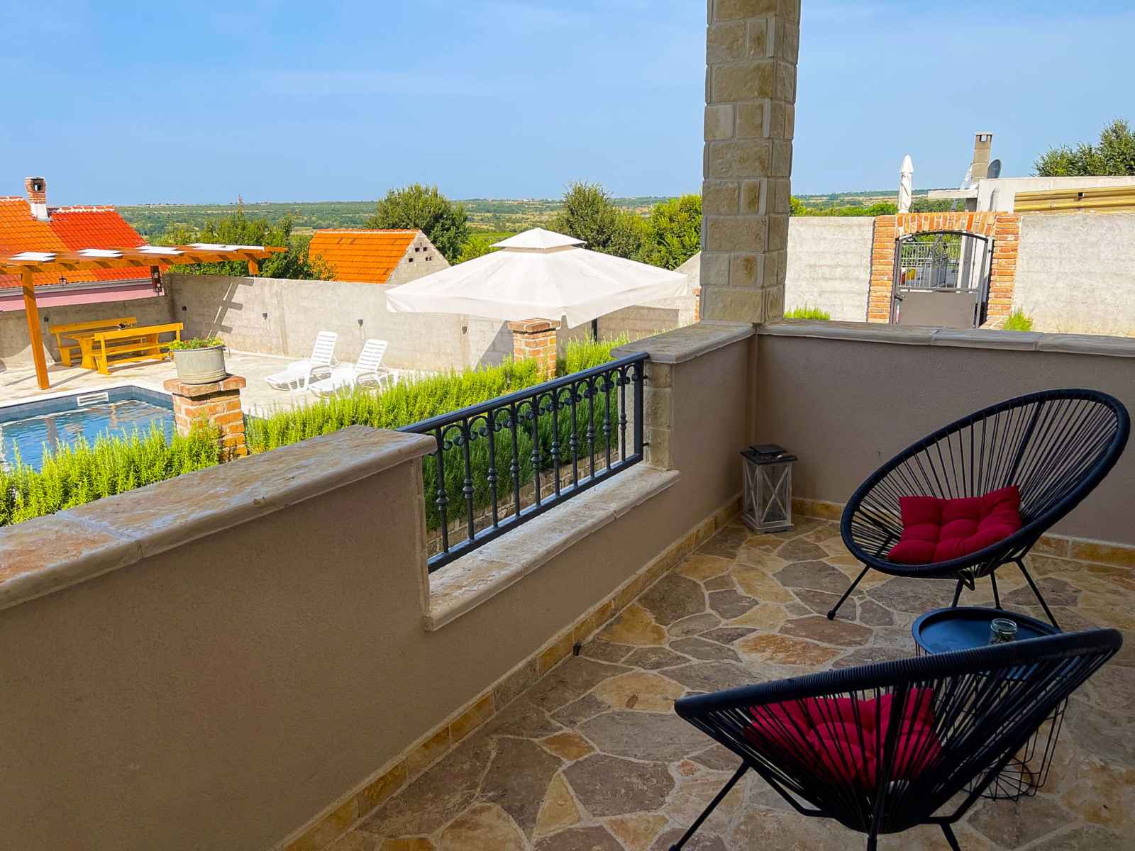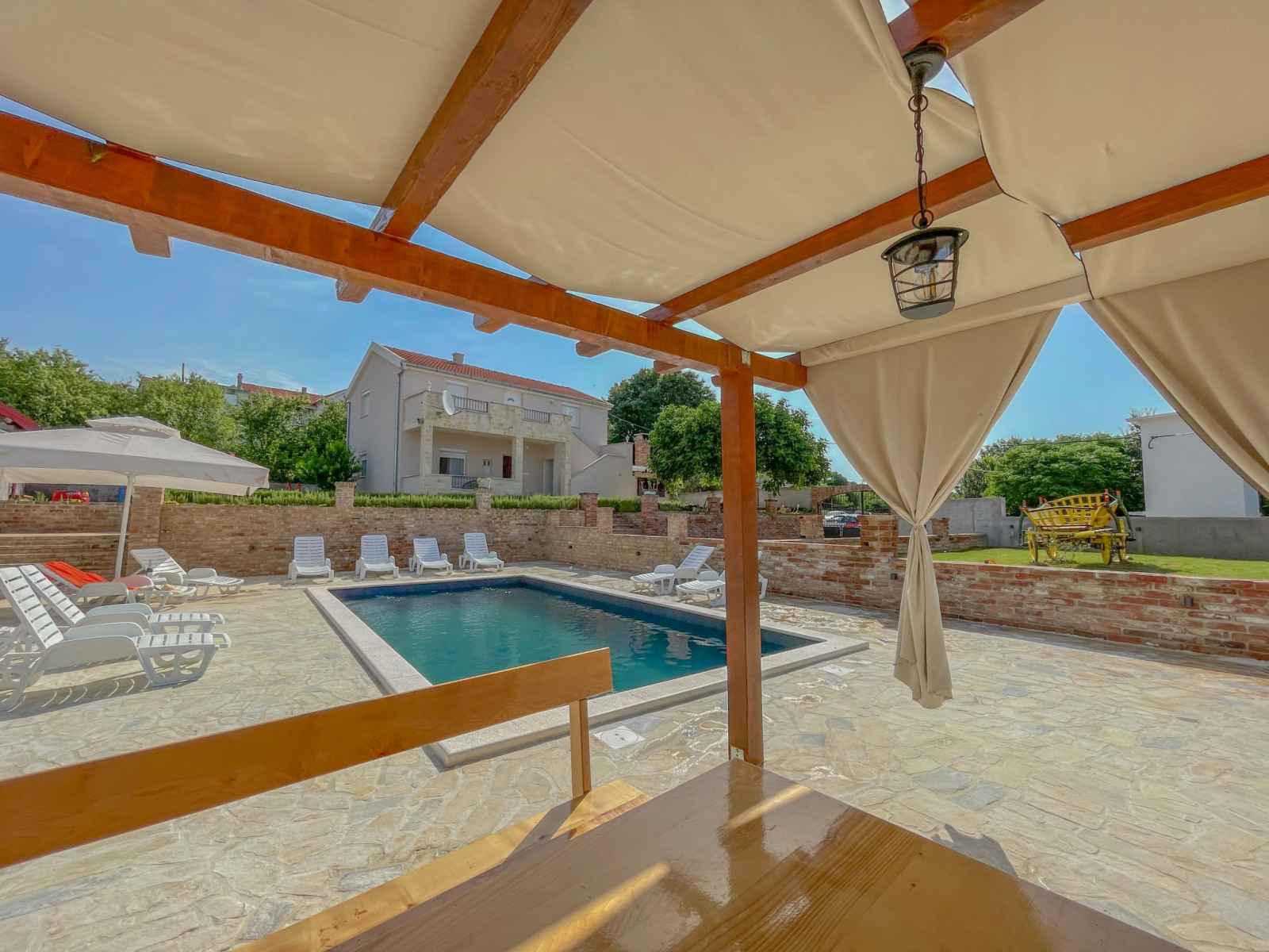 Korlat à 13 km de novigrad: maison individuelle "villa meri", de 2 étages. À 11 km du centre de benkovac, à 16 km de la mer. a usage privé: terrain 400 m2 (clôturé), piscine rectangulaire (8 x 4 m, profondeur 145 cm, disponibilité saisonnière: 01.mai. - 01.oct.). douche extérieure, terrasse (20 m2), meubles de jardin, barbecue.