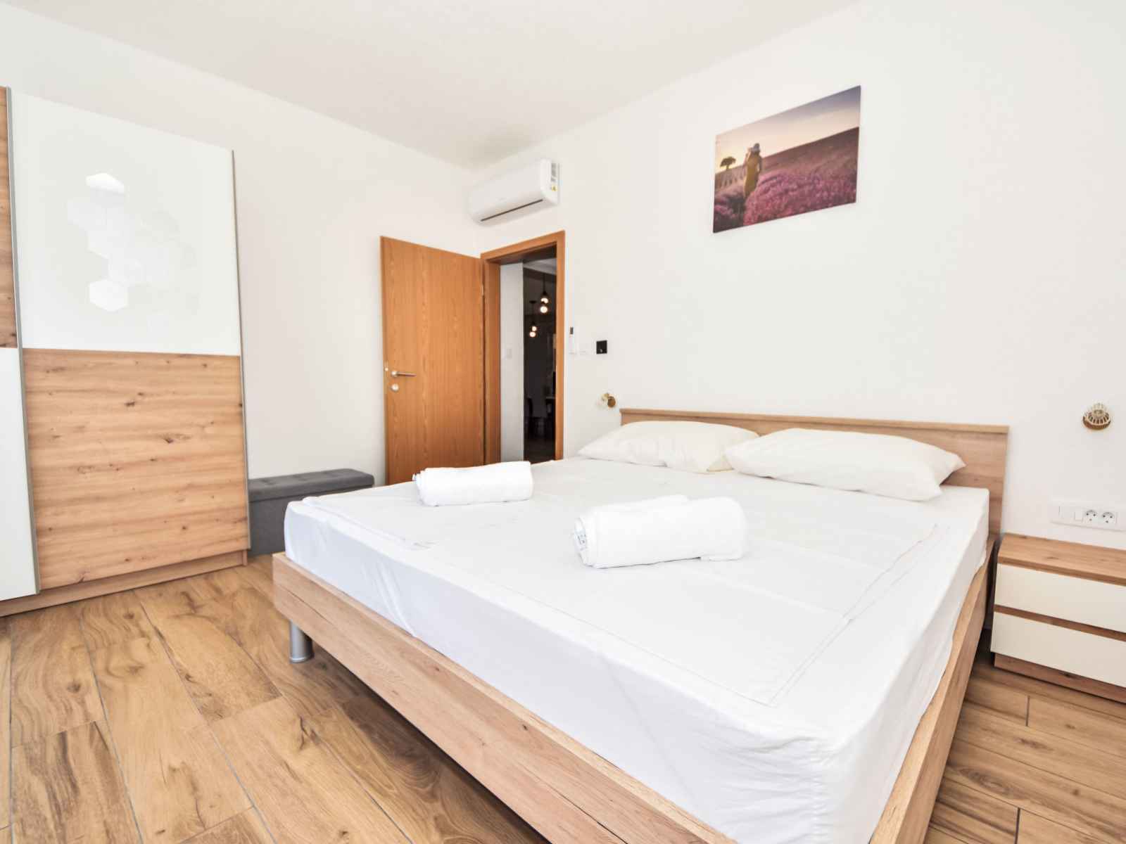 Villa 4 pièces 120 m2, situation sud-ouest. séjour/salle à manger 45 m2 avec 1 divan-lit (140 cm, longueur 200 cm), tv (satellite) (écran plat), air-conditionné. sortie sur la terrasse. 2 chambres, chaque chambre avec: 1 grand-lit (160 cm, longueur 200 cm), tv (satellite) (écran plat). 1 chambre avec 2 lits (90 cm, longueur 200 cm). cuisine