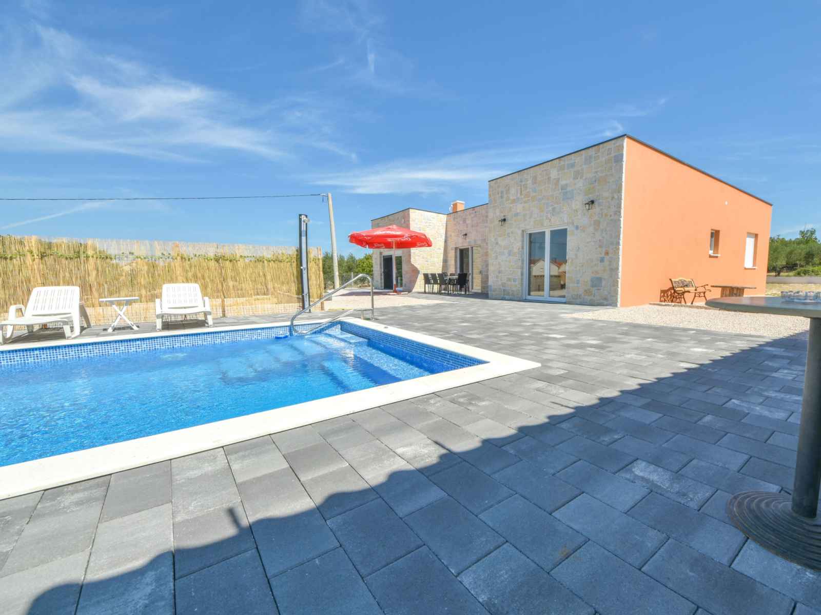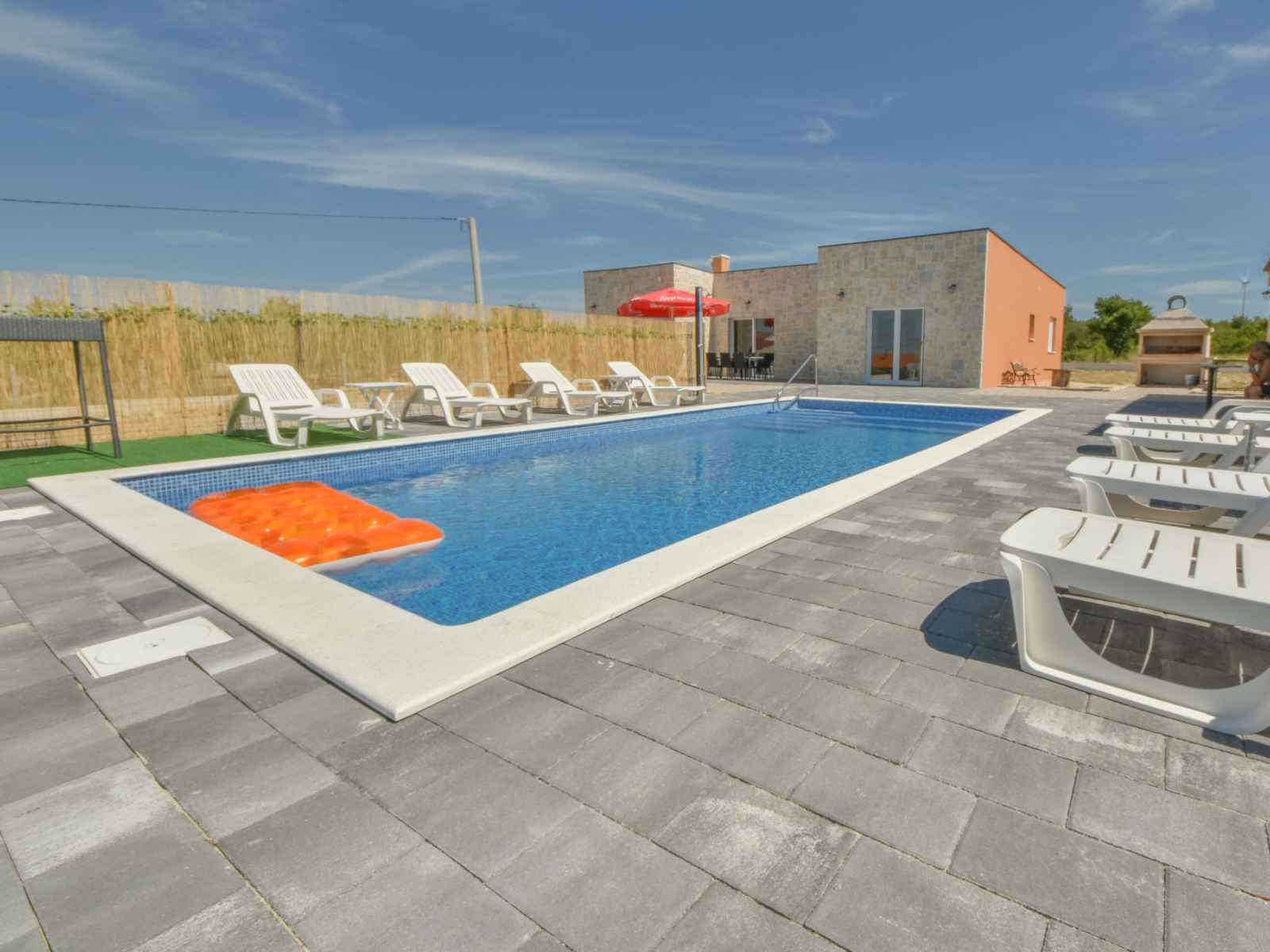 Korlat à 13 km de novigrad: maison individuelle moderne "vulelija holiday home", année de construction 2024. À 11 km du centre de benkovac, à 100 m de la forêt, à 16 km de la mer. a usage privé: terrain à l'état naturel 5'000 m2, piscine rectangulaire, chauffée (8 x 4 m, profondeur 145 cm, disponibilité saisonnière: 01.mai. - 01.oct.).