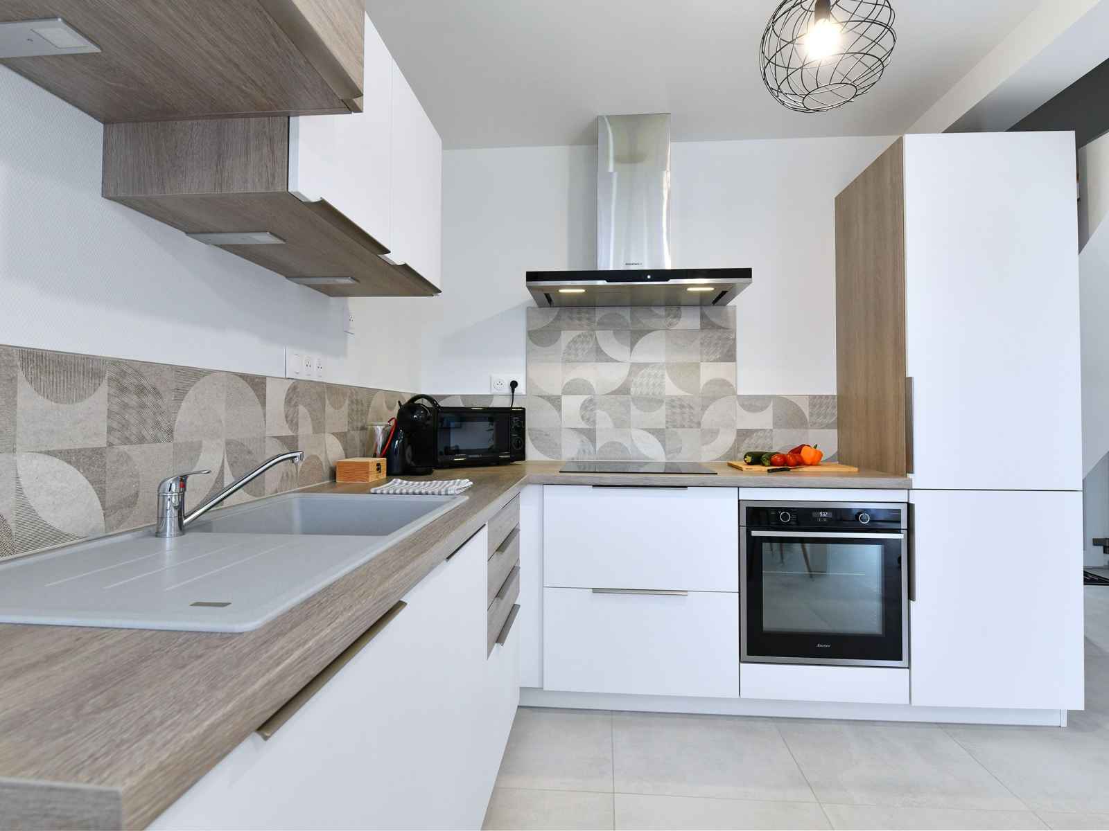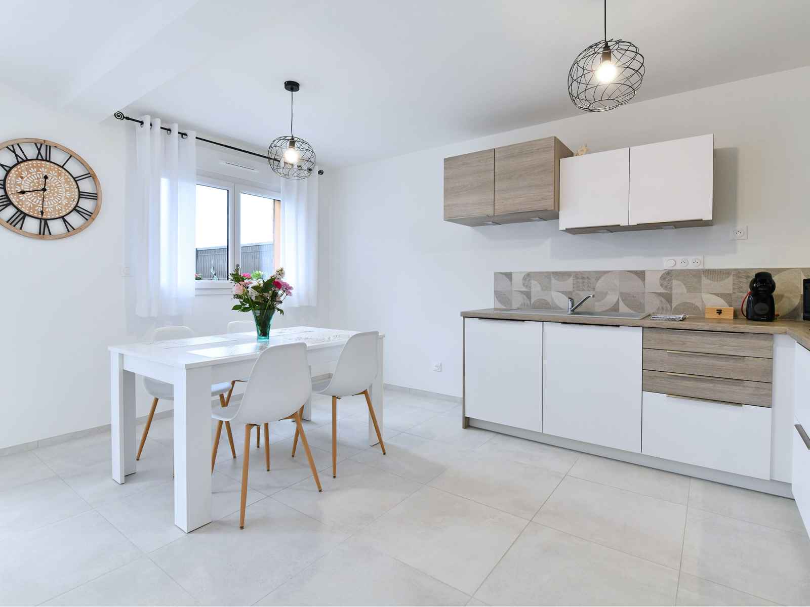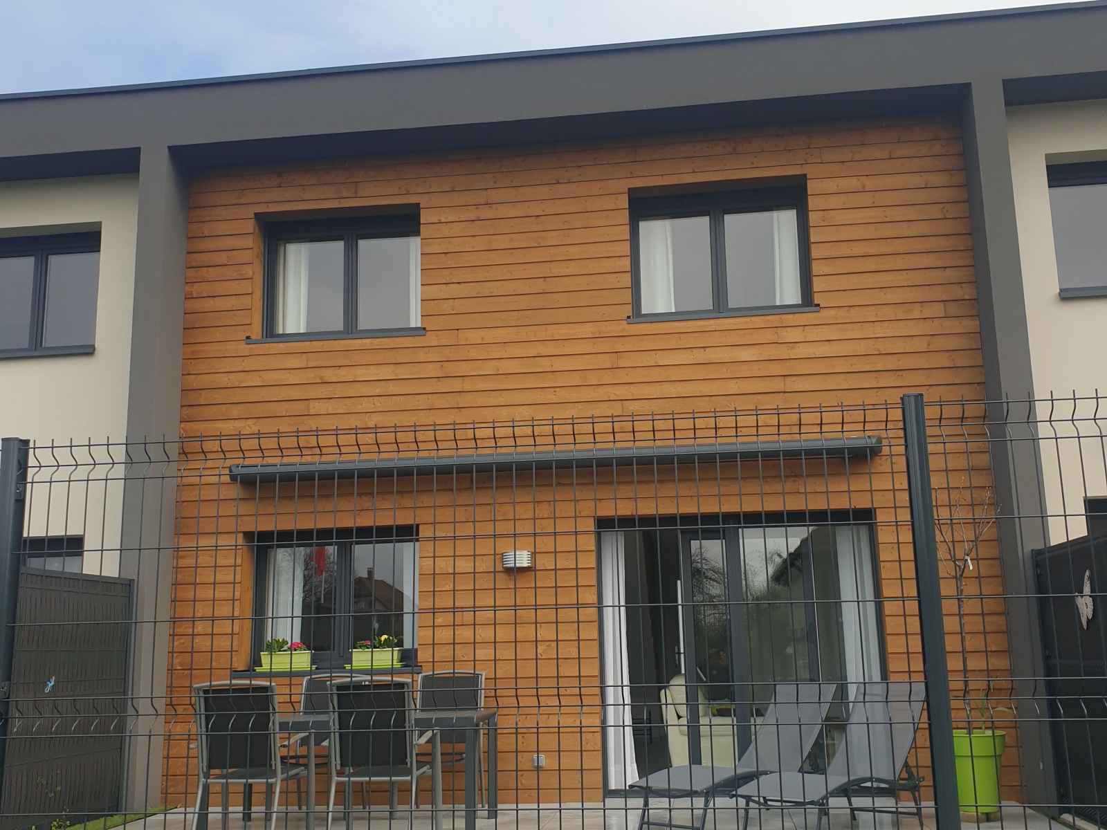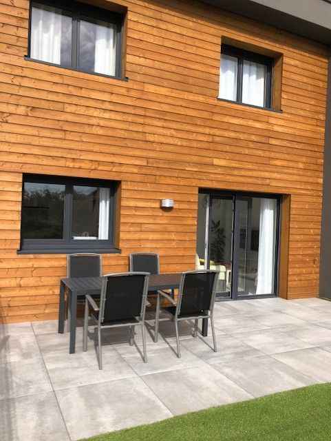 Maison neuve construite en 2022 dans un quartier résidentiel au calme. au rez-de-chaussé elle est composée d'une grande pièce à vivre de 30m² avec espace salon, espace repas et cuisine ouverte équipée, accès direct à la terrasse et au jardin privatif. 2 places de parking sont privatives devant le logement. au 1er étage, grande chambre 2
