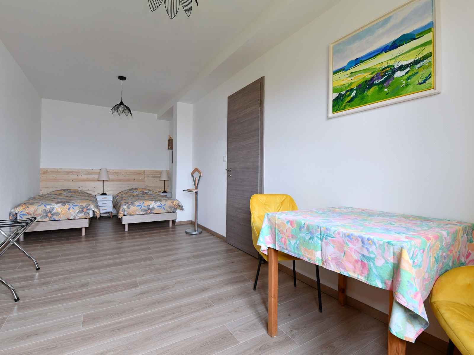 lits simples (90x190) modulable en lit double sur demande. Une deuxième chambre lit double (160x200) ainsi qu'une salle d'eau avec douche à l'italienne, double vasque et WC. Idéalement situé à proximité de l'axe autoroutier Strasbourg - Mulhouse, notre gîte offre un accès immédiat à Colmar et aux charmants villages de la Route des Vins. Ainsi, Kaysersberg, Riquewihr, Ribeauvillé, Bergheim sont à moins de 10 mn de Colmar et Eguisheim à 15 mn de route... Carrefour de nombreuses pistes cyclables, les vélos sont bienvenus! L'Allemagne se trouve à 45 mn, offrant la possibilité d'une journée découverte à Fribourg ou de détente à Europa Park et Rulantica.