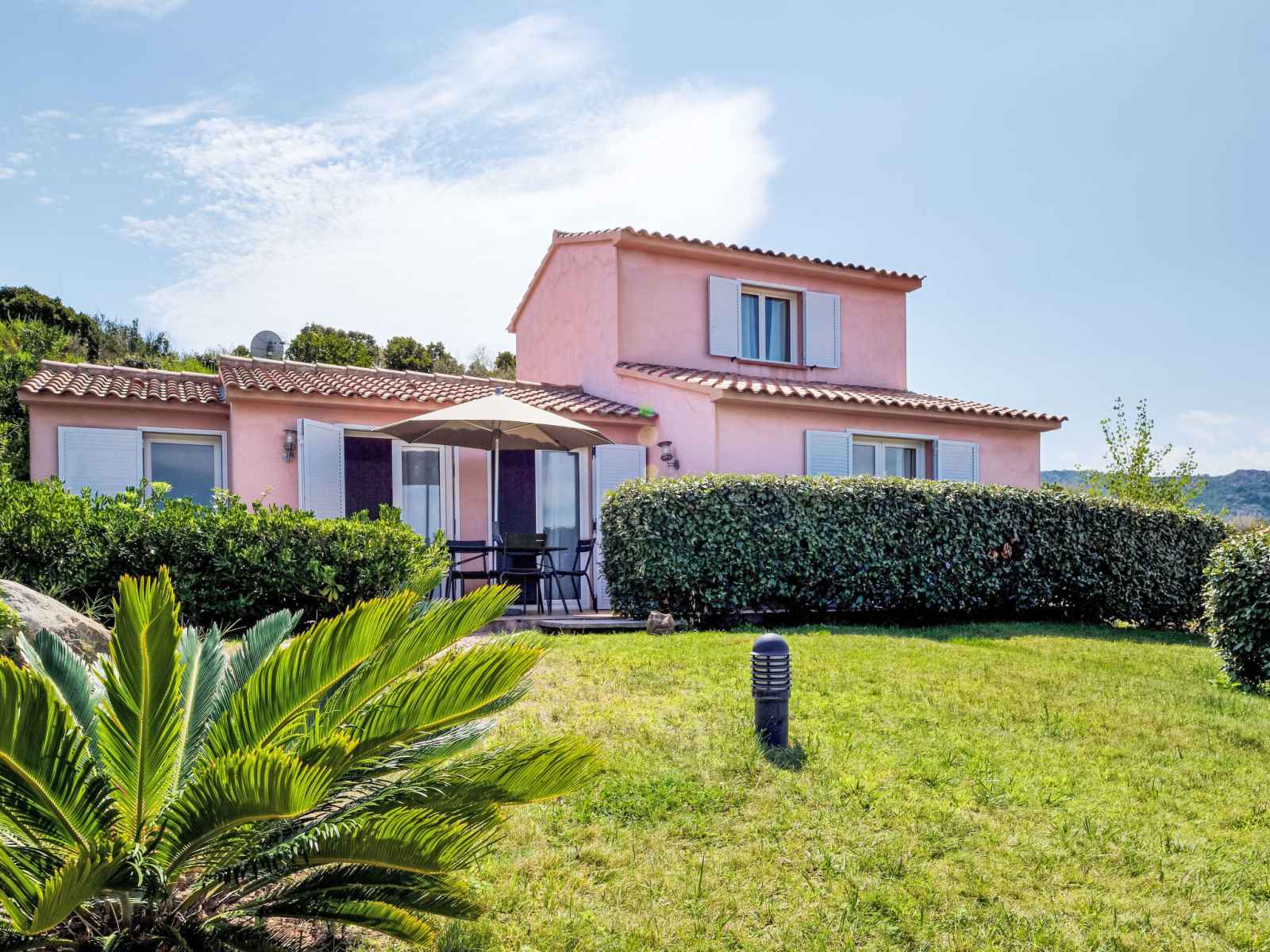 Petite résidence "marina serena". 5 maisons dans la résidence. dans le quartier de pavellone, en bordure de la localité, à 10 km du centre de porto-vecchio, situation tranquille, surélevée, à 700 m de la mer, à 700 m de la plage, route à traverser. en commun: piscine rectangulaire (15 x 6 m, profondeur 150 cm, disponibilité saisonnière:
