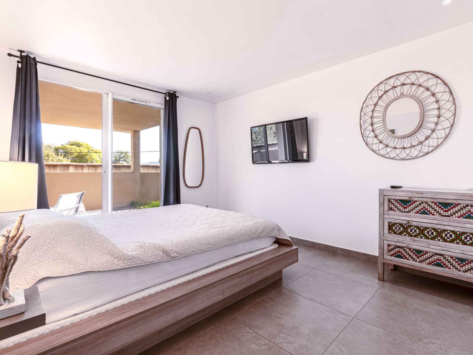 congélateur, cafetière électrique, Capsules pour machine à café (Tassimo) (NON INCLUSES)). À l'étage inférieur: 1 chambre avec baie vitrée avec 1 grand-lit (140 cm, longueur 190 cm), volet roulant électrique. Sortie sur la terrasse. 1 chambre avec baie vitrée avec 1 grand-lit (140 cm, longueur 190 cm), TV (écran plat). Sortie sur la terrasse. 1 chambre avec baie vitrée avec 1 grand-lit (160 cm, longueur 200 cm), TV (écran plat). Sortie sur la terrasse. 2 douches, WC séparé, double vasque. Chauffage électrique, air-conditionné. Terrasse 25 m2, grande terrasse 40 m2 partiellement couverte. Meubles de terrasse, barbecue électrique, chaises longues (2). Vue sur les alentours. A disposition: lave-linge, fer à repasser, lit bébé, sèche-cheveux. Internet (Connexion WIFI, gratuit). Annonce d'un particulier (art 155, IV du CGI). 2A2470001022E