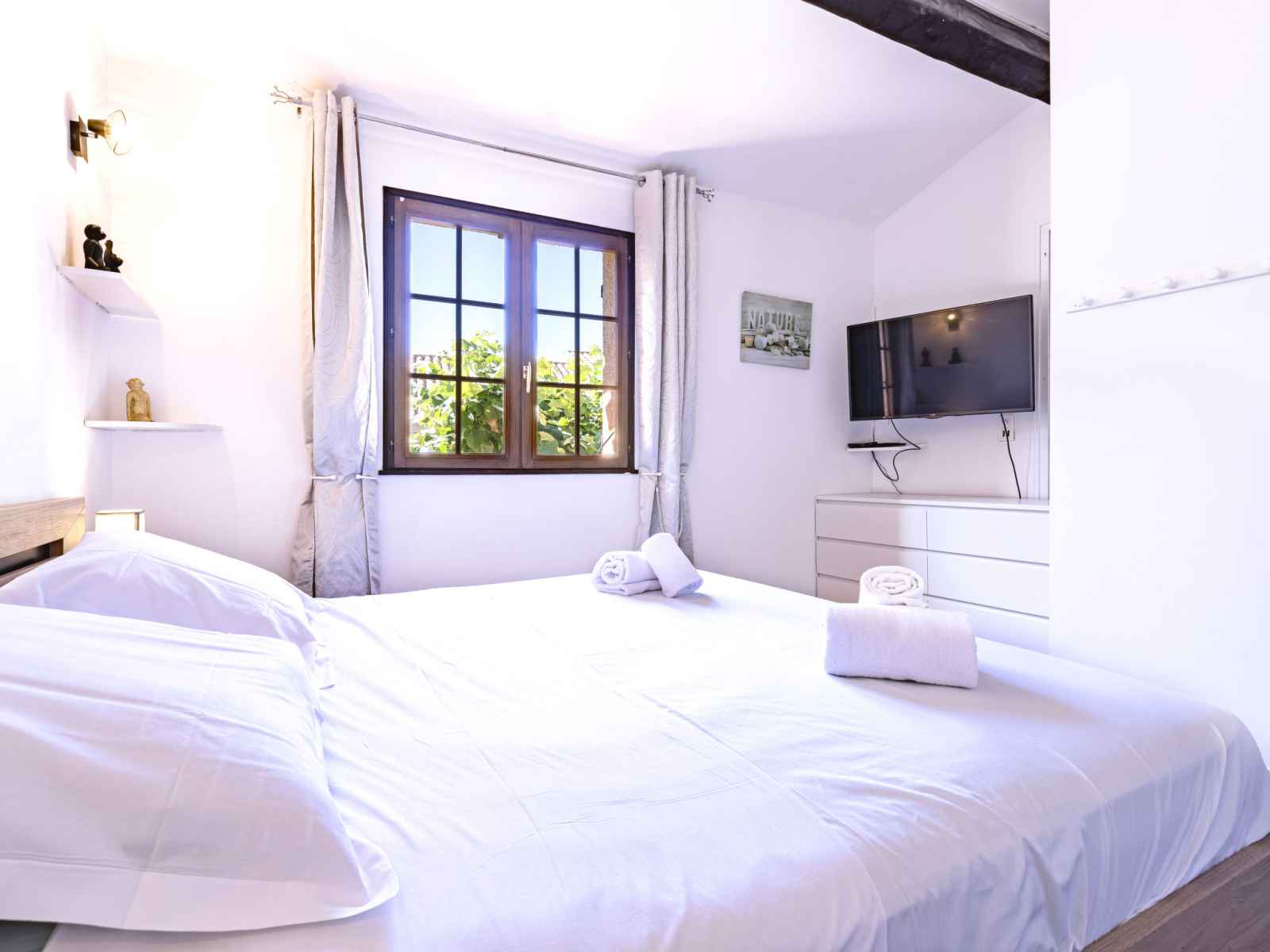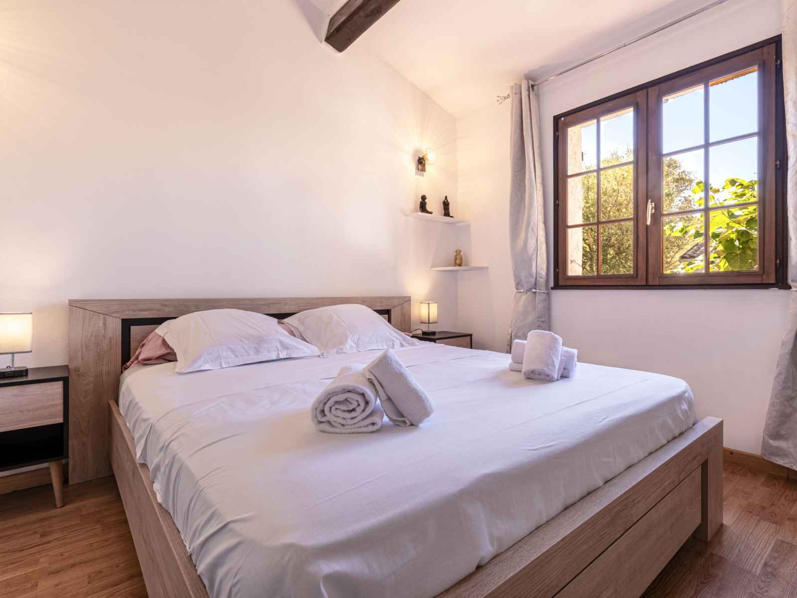 TV (écran plat). 1 grande chambre avec 1 grand-lit (1 x 180 cm, longueur 200 cm), TV (écran plat). Coin cuisine (four, lave-vaisselle, 4 plaques à induction, grille-pain, bouilloire électrique, micro-ondes, congélateur, cafetière électrique). Douche, WC séparé. Chauffage électrique. Terrasse 30 m2. Meubles de terrasse, barbecue, chaises longues. A disposition: lave-linge, sèche-linge, sèche-cheveux. Internet (Connexion WIFI, gratuit). Place de parking (cloturée, 1 Voiture) près de la maison. Veuillez noter: maison non-fumeur. Détecteur de fumée. Annonce d'un particulier (art 155, IV du CGI). 2A2470019734F