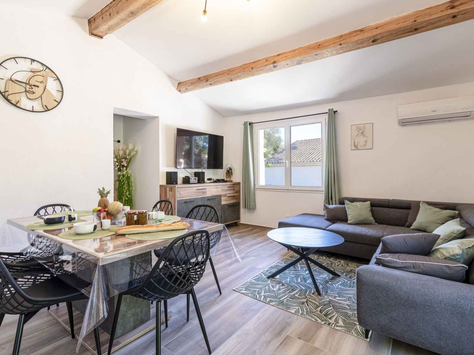 "casa germaine 2", maison 3 pièces 70 m2, au rez-de-chaussée. logement idéal pour 4 adultes. complètement rénovée en 2024, aménagement moderne et plaisant: séjour/salle à manger avec 1 divan-lit (160 cm, longueur 190 cm), tv (écran plat), air-conditionné. sortie sur la terrasse. 1 chambre avec 1 grand-lit (1 x 160 cm, longueur 200 cm),