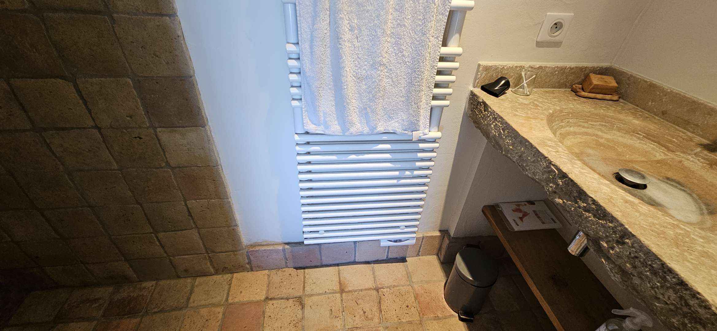 Chambre 2 : 2 lits en 90 pouvant se rapprocher, avec rangements, salle d'eau attenante avec douche, vasque , sèche-serviettes.